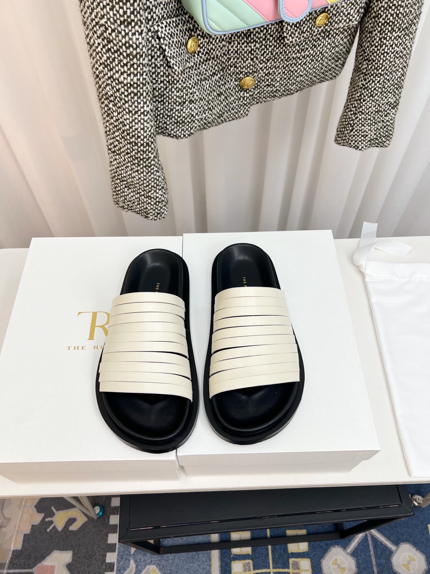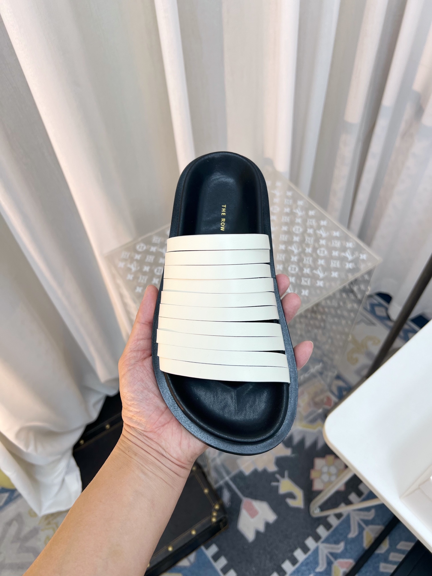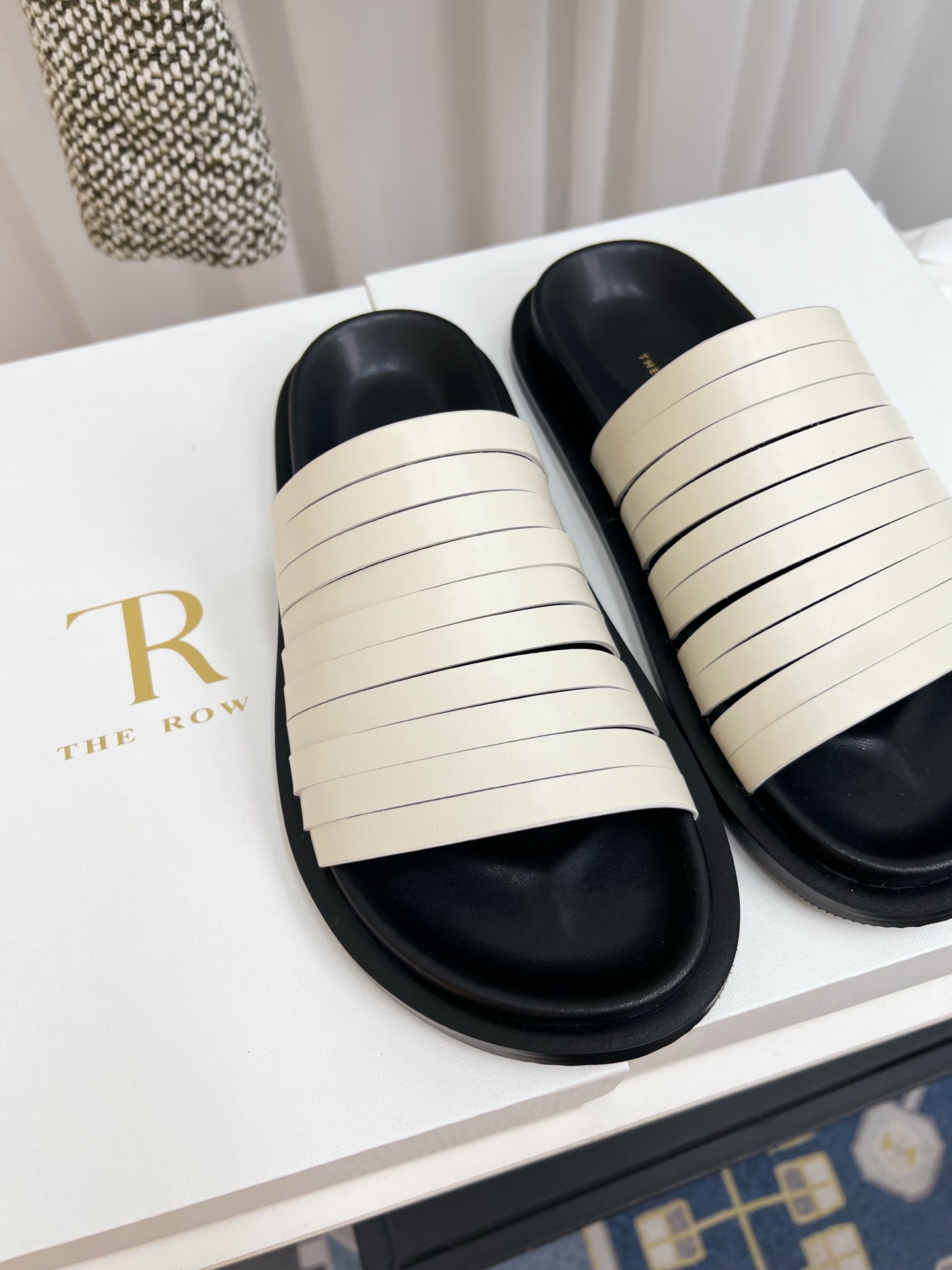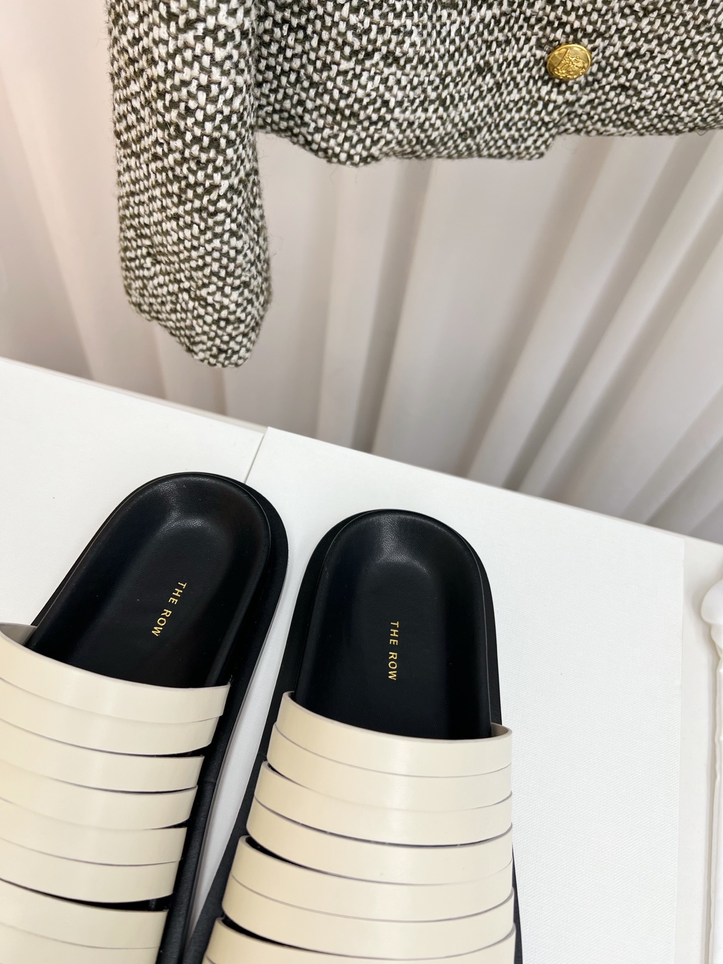 這款鞋子是AAAAA 1:1 質量(非常棒). 使用了和原版一模一樣的材料. 商標部分也保持了和The Row一樣. 圖片拍攝是實物鞋子拍攝, 您所收到的實物保證和我們圖片一模一樣.