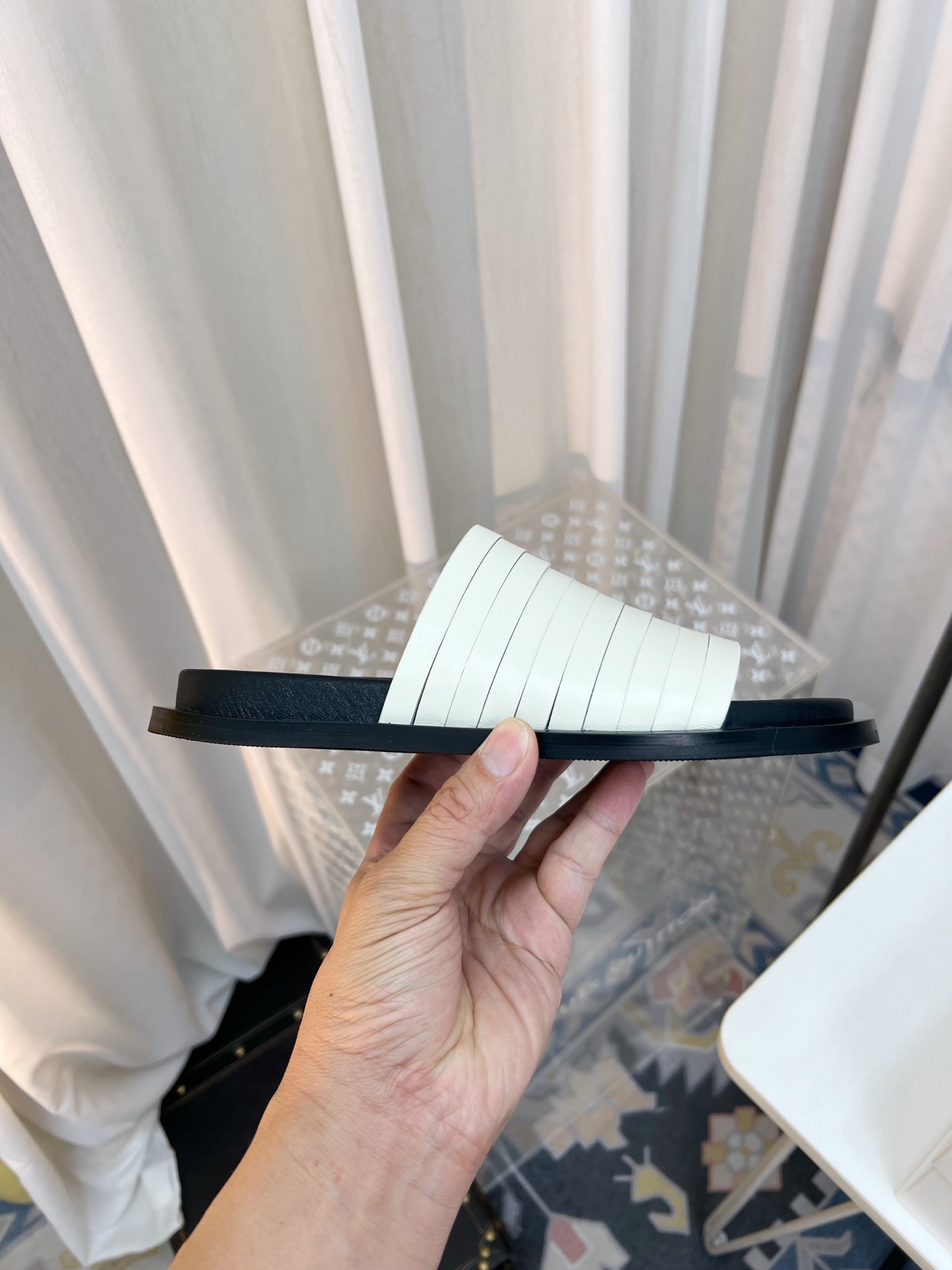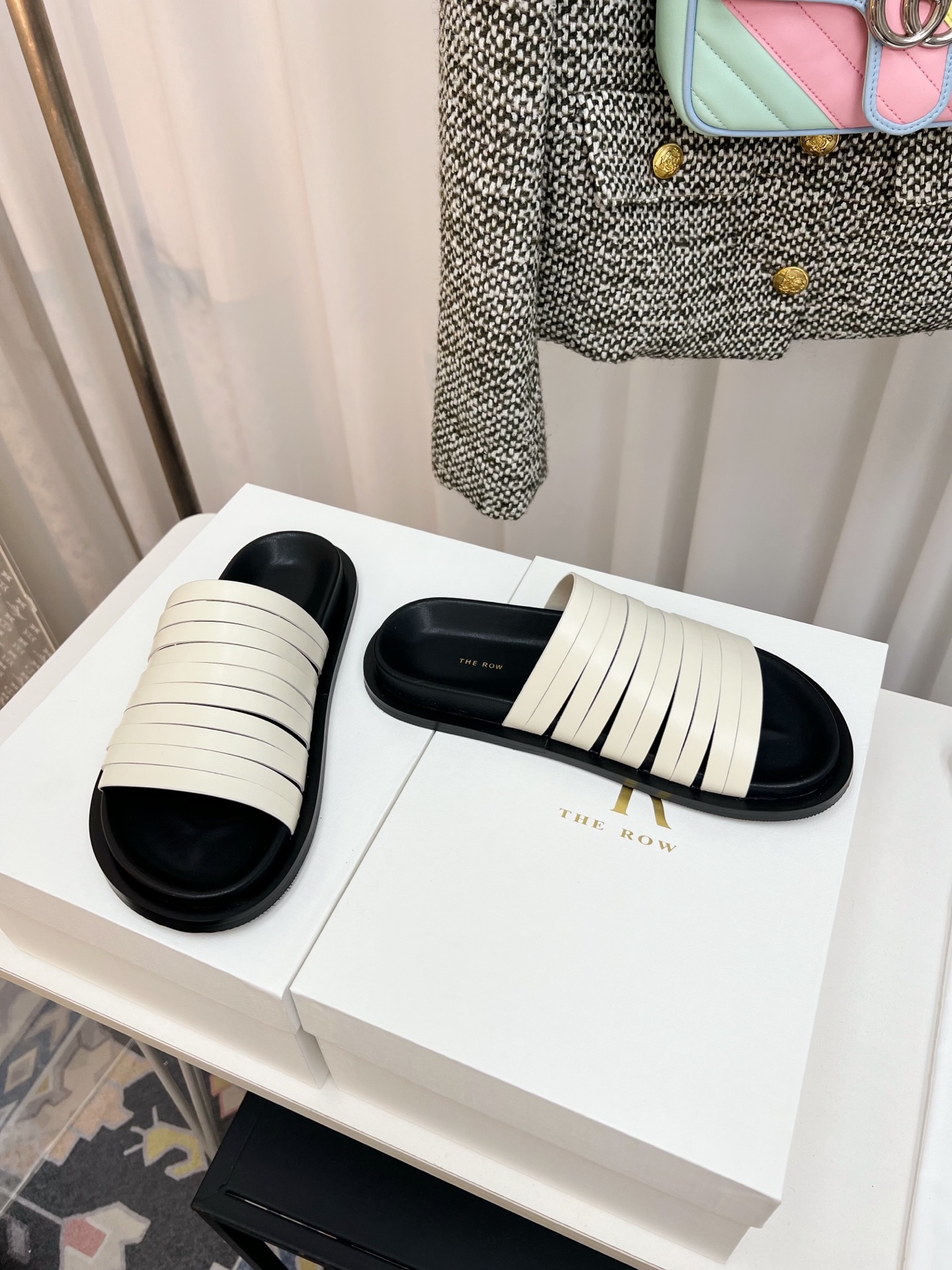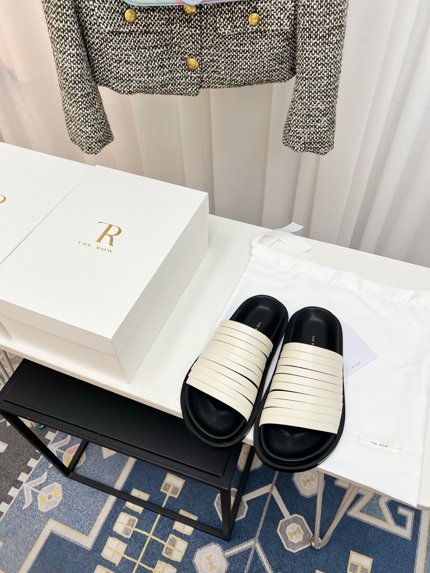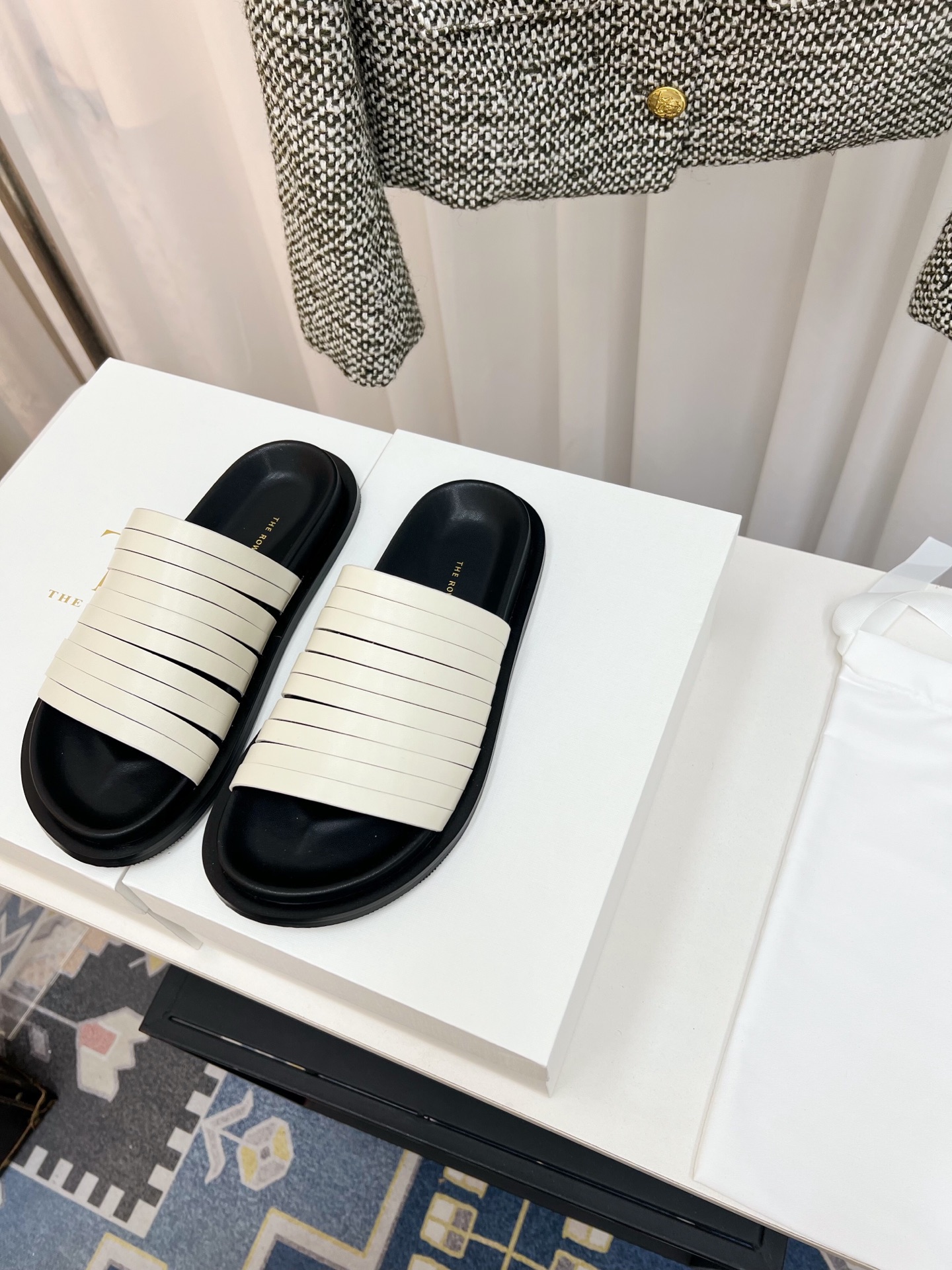 這款鞋子是AAAAA 1:1 質量(非常棒). 使用了和原版一模一樣的材料. 商標部分也保持了和The Row一樣. 圖片拍攝是實物鞋子拍攝, 您所收到的實物保證和我們圖片一模一樣.