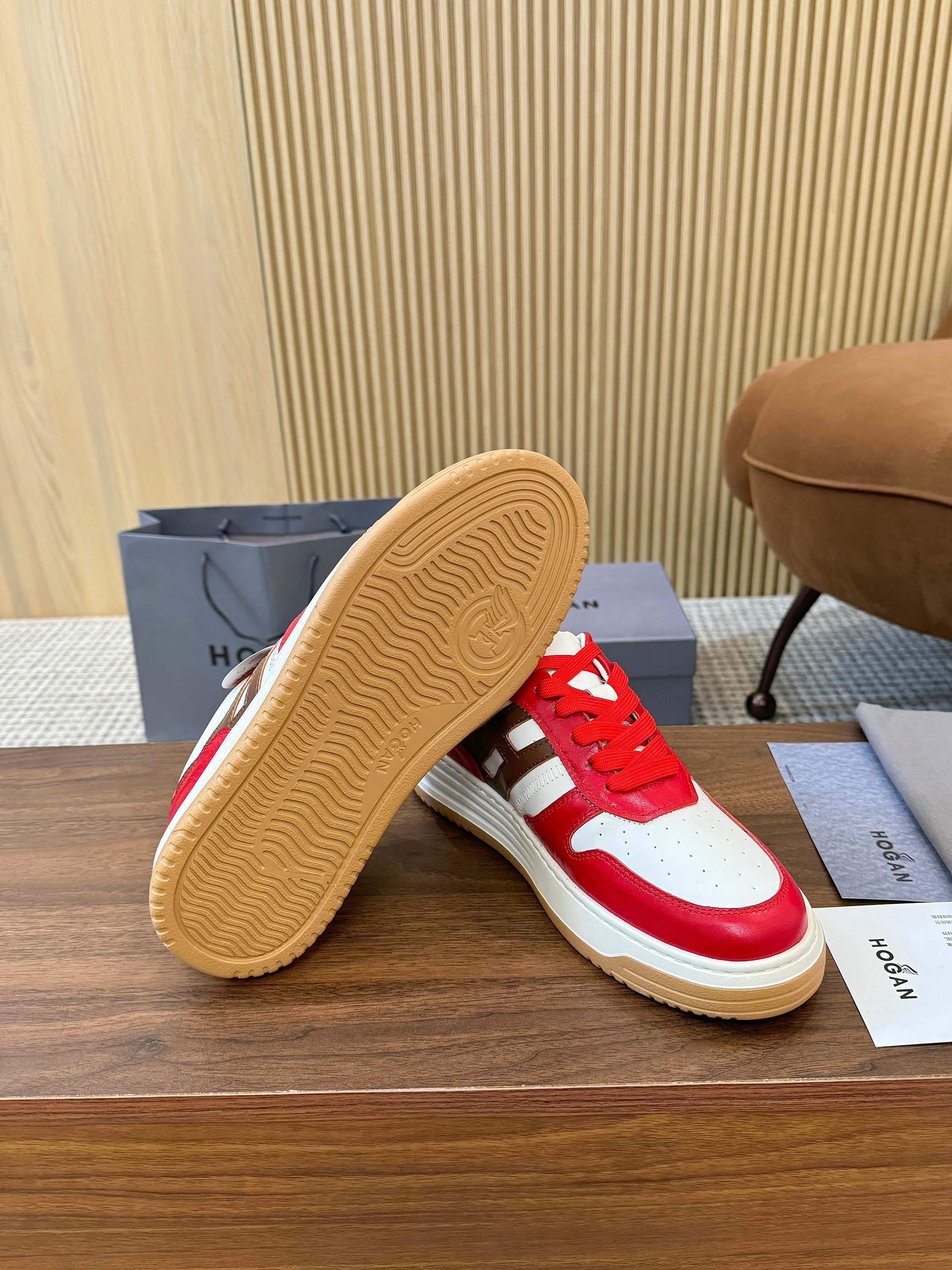 這款鞋子是AAAAA 1:1 質量(非常棒). 使用了和原版一模一樣的材料. 商標部分也保持了和Hogan一樣. 圖片拍攝是實物鞋子拍攝, 您所收到的實物保證和我們圖片一模一樣.