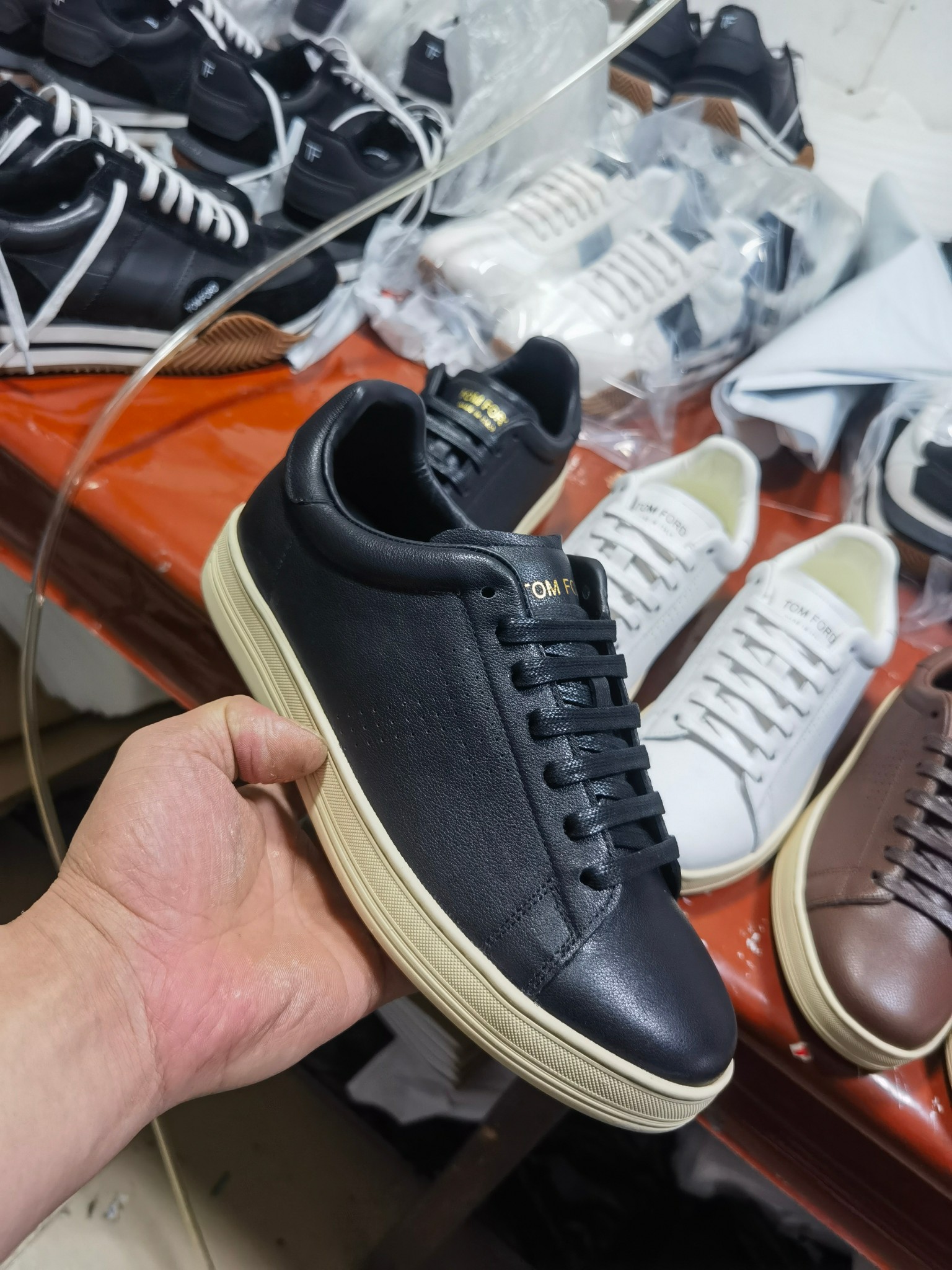 這款鞋子是AAAAA 1:1 質量(非常棒). 使用了和原版一模一樣的材料. 商標部分也保持了和湯姆福特/Tom Ford一樣. 圖片拍攝是實物鞋子拍攝, 您所收到的實物保證和我們圖片一模一樣.