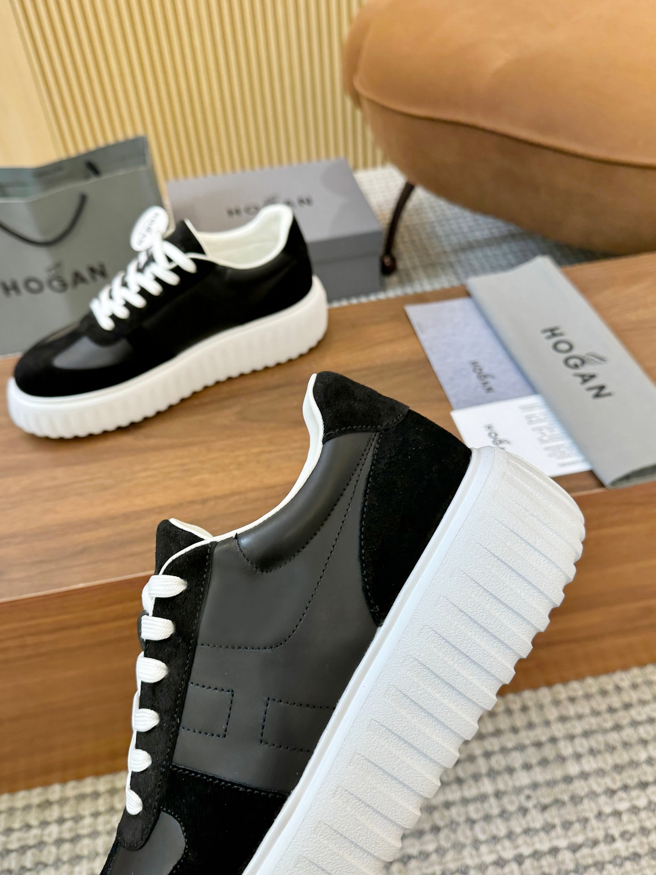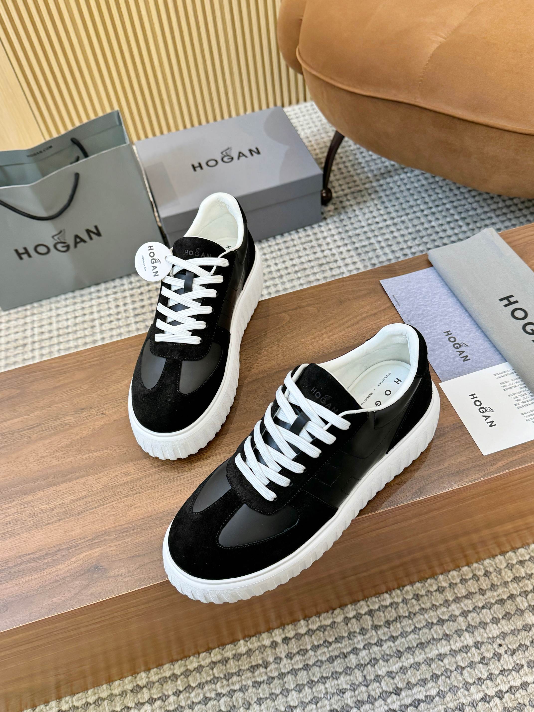 這款鞋子是AAAAA 1:1 質量(非常棒). 使用了和原版一模一樣的材料. 商標部分也保持了和Hogan一樣. 圖片拍攝是實物鞋子拍攝, 您所收到的實物保證和我們圖片一模一樣.