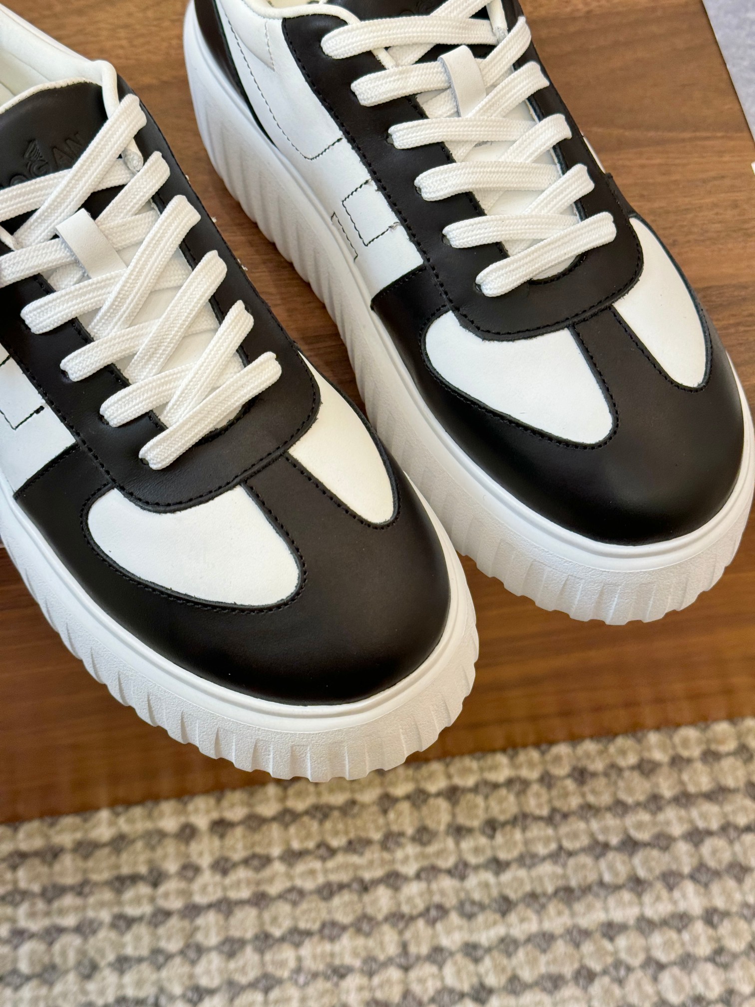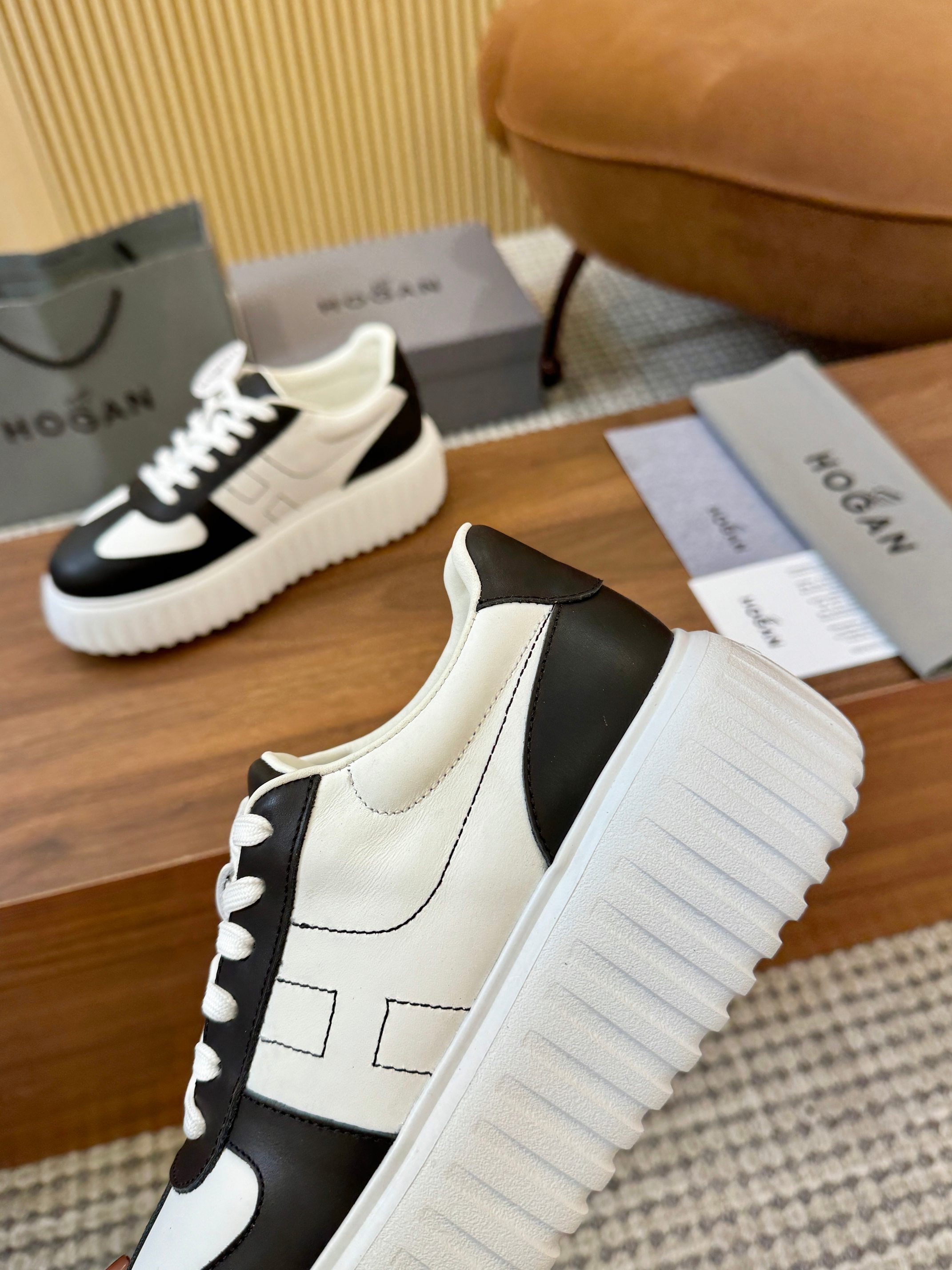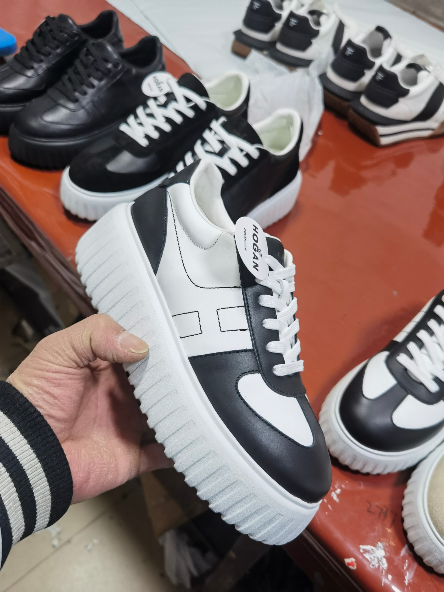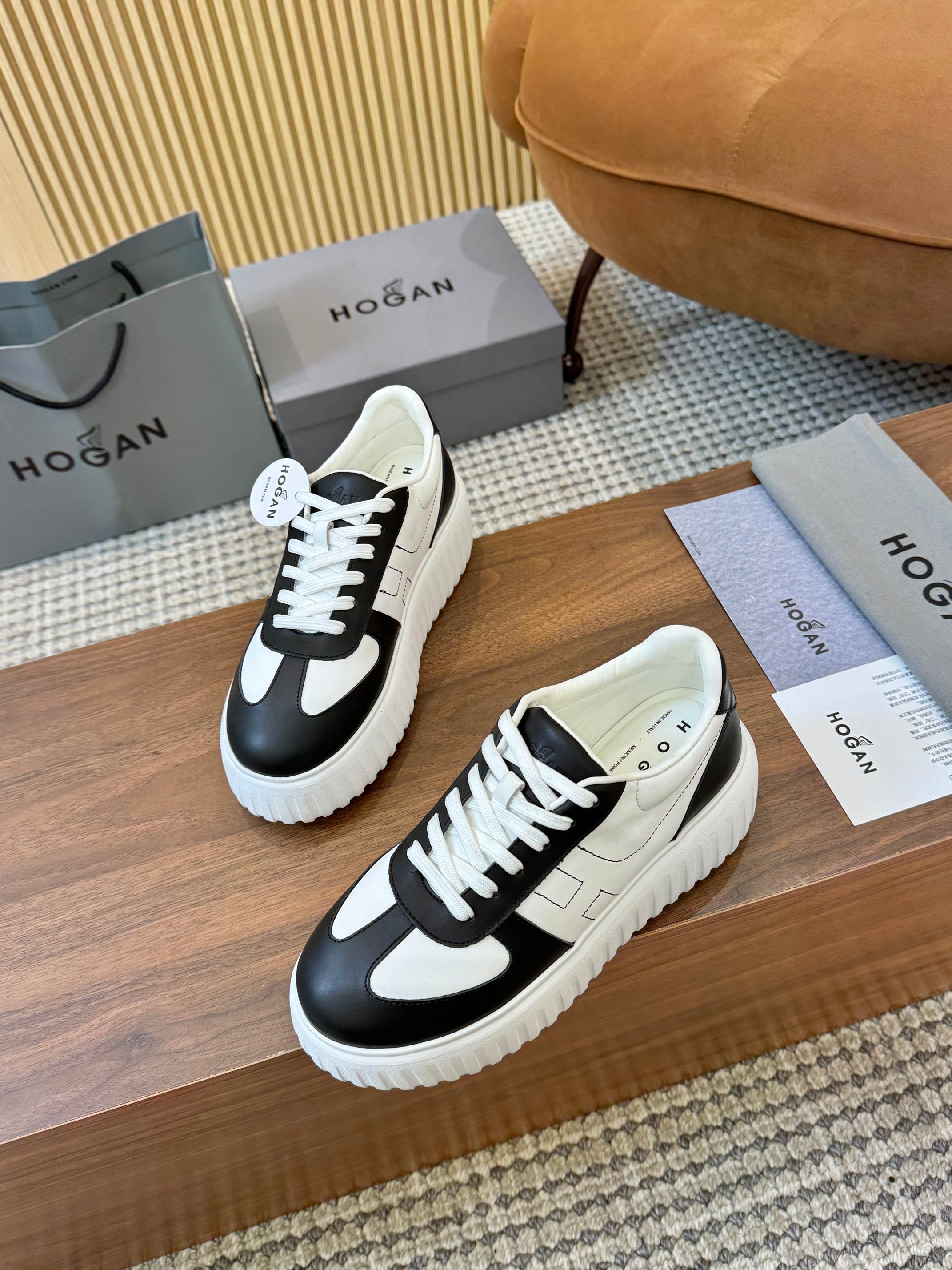這款鞋子是AAAAA 1:1 質量(非常棒). 使用了和原版一模一樣的材料. 商標部分也保持了和Hogan一樣. 圖片拍攝是實物鞋子拍攝, 您所收到的實物保證和我們圖片一模一樣.