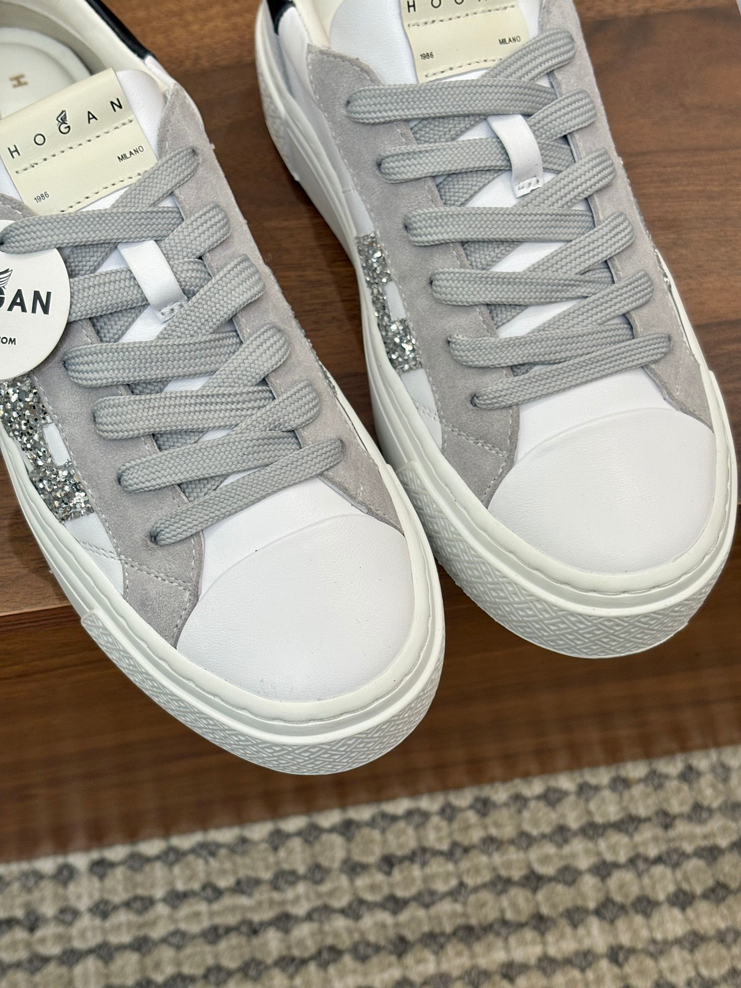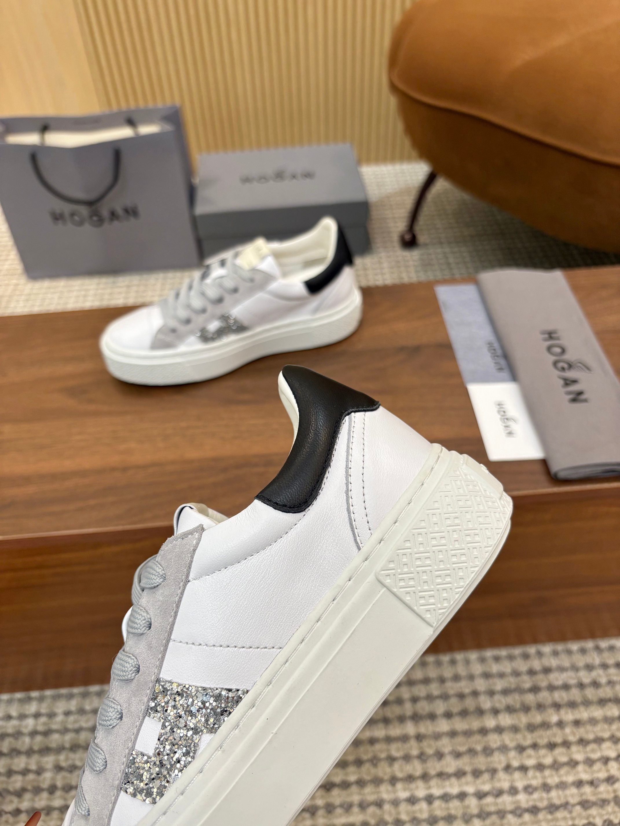 這款鞋子是AAAAA 1:1 質量(非常棒). 使用了和原版一模一樣的材料. 商標部分也保持了和Hogan一樣. 圖片拍攝是實物鞋子拍攝, 您所收到的實物保證和我們圖片一模一樣.