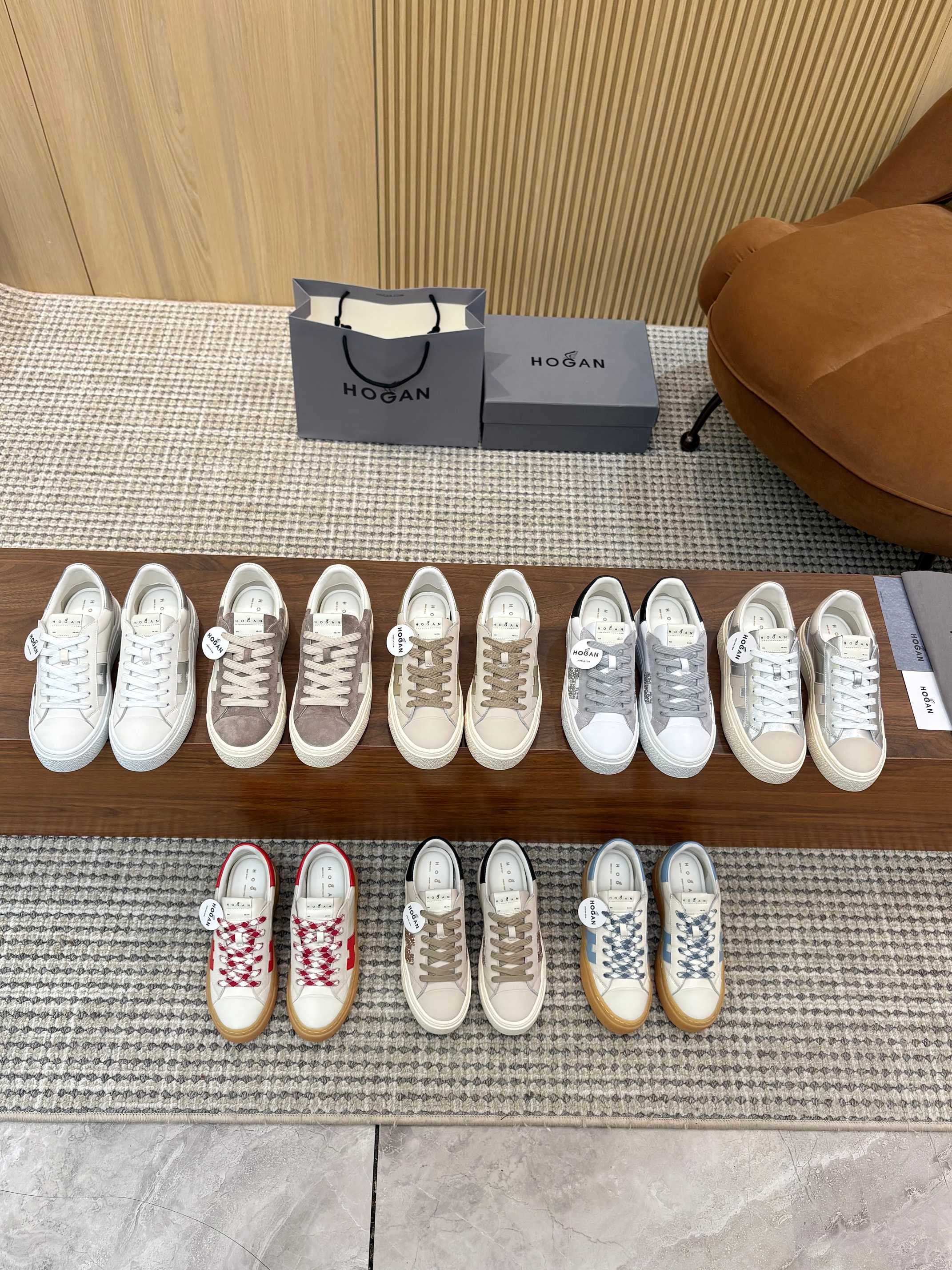 這款鞋子是AAAAA 1:1 質量(非常棒). 使用了和原版一模一樣的材料. 商標部分也保持了和Hogan一樣. 圖片拍攝是實物鞋子拍攝, 您所收到的實物保證和我們圖片一模一樣.