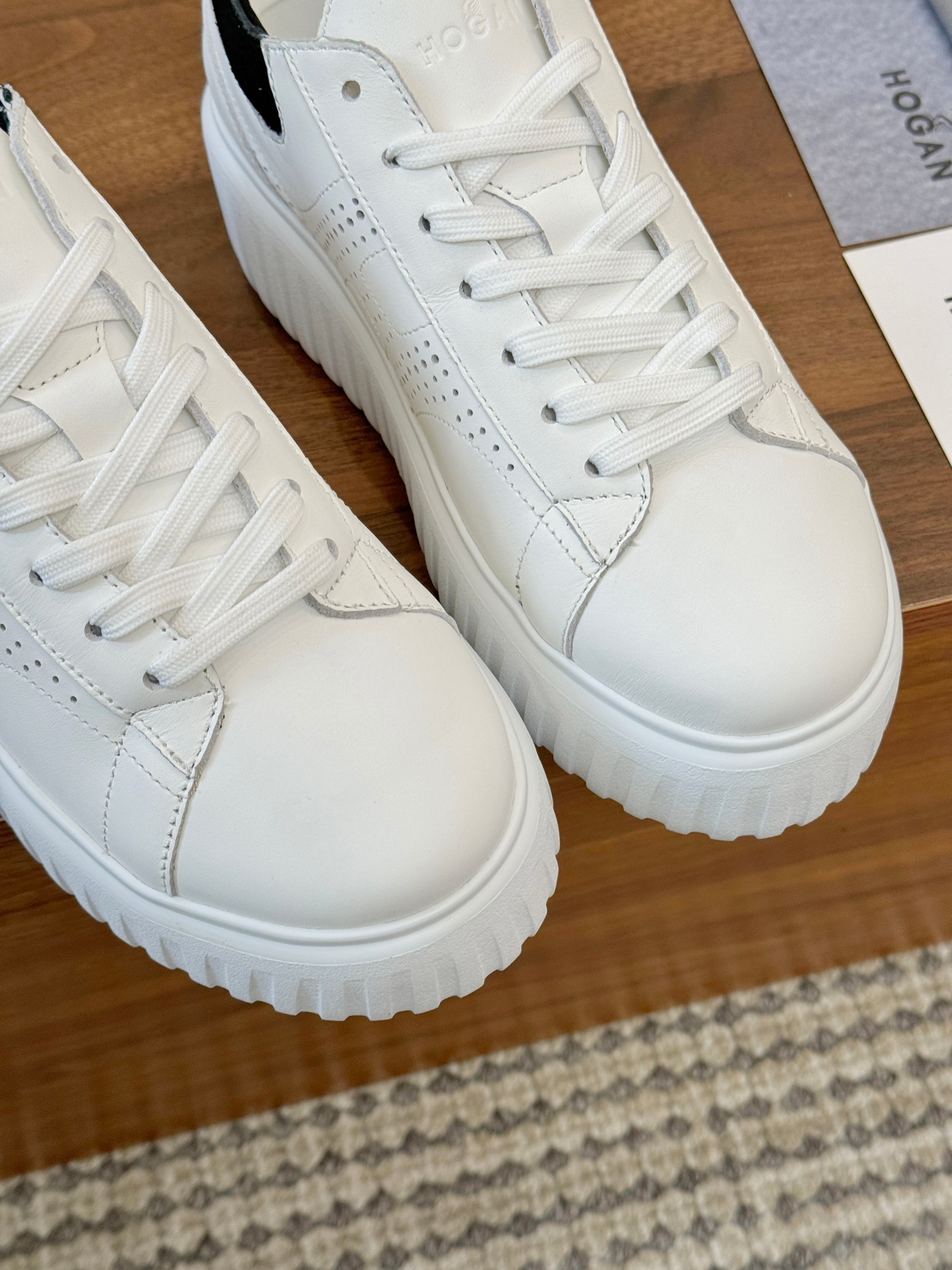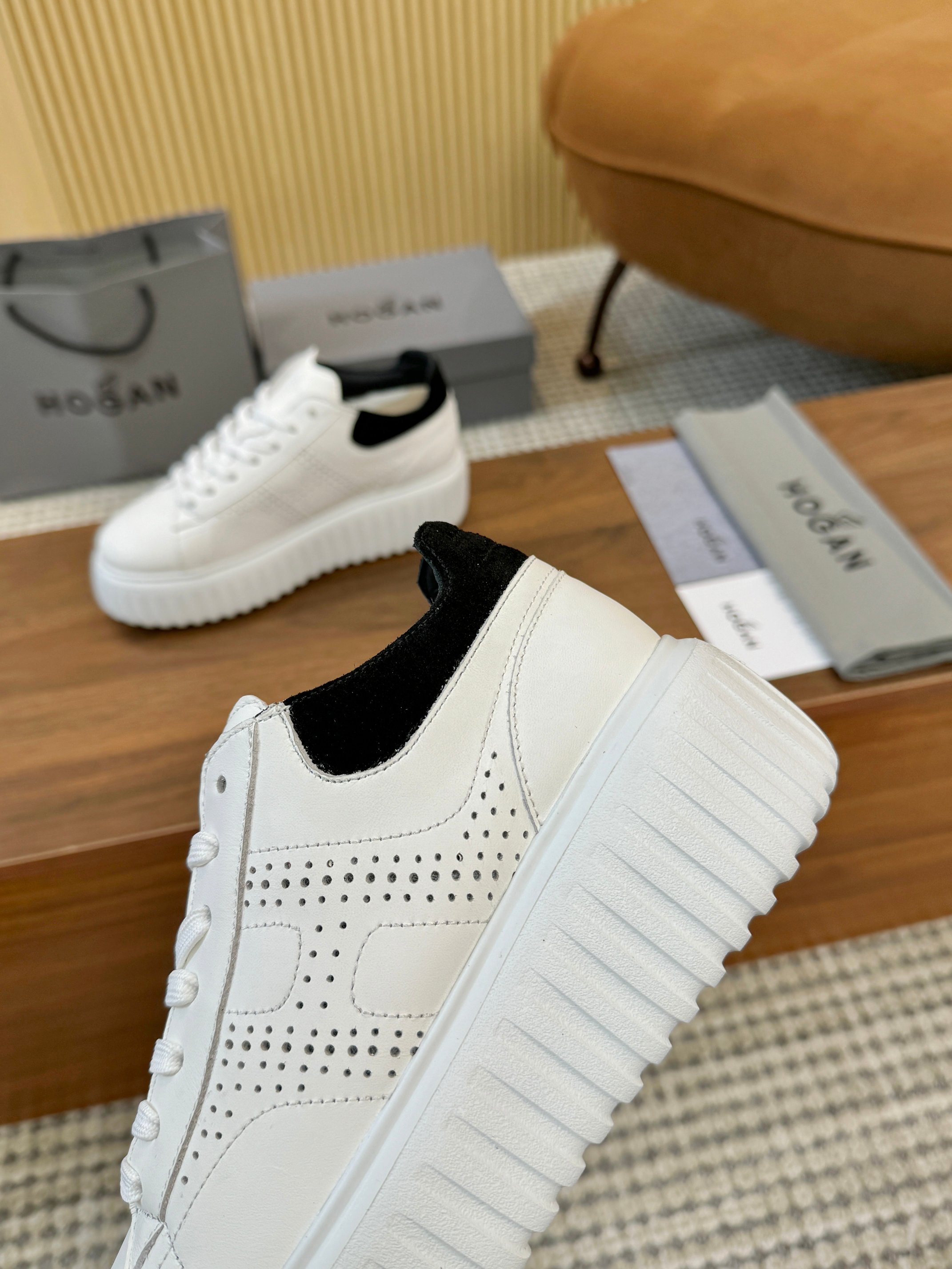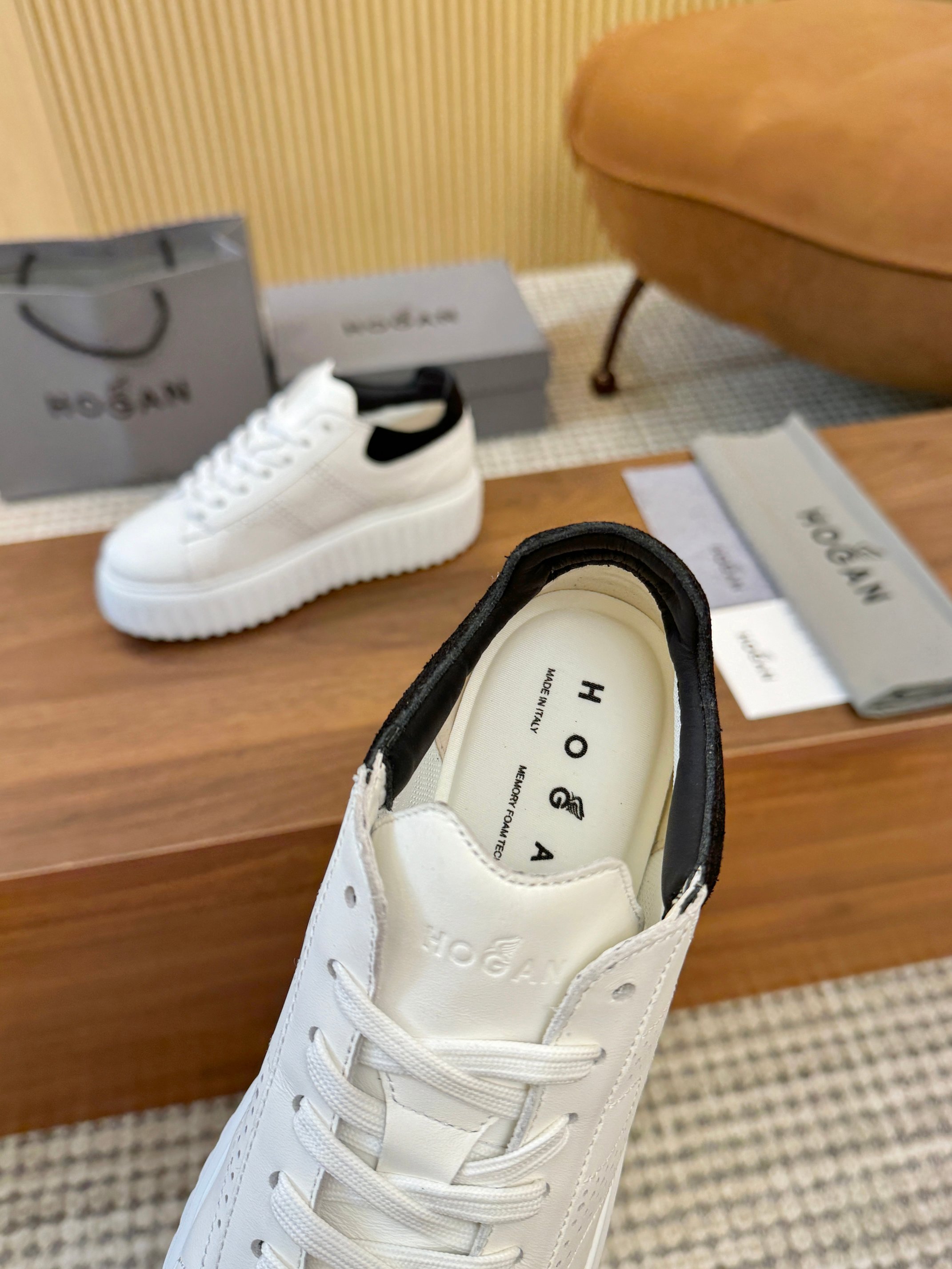 這款鞋子是AAAAA 1:1 質量(非常棒). 使用了和原版一模一樣的材料. 商標部分也保持了和Hogan一樣. 圖片拍攝是實物鞋子拍攝, 您所收到的實物保證和我們圖片一模一樣.