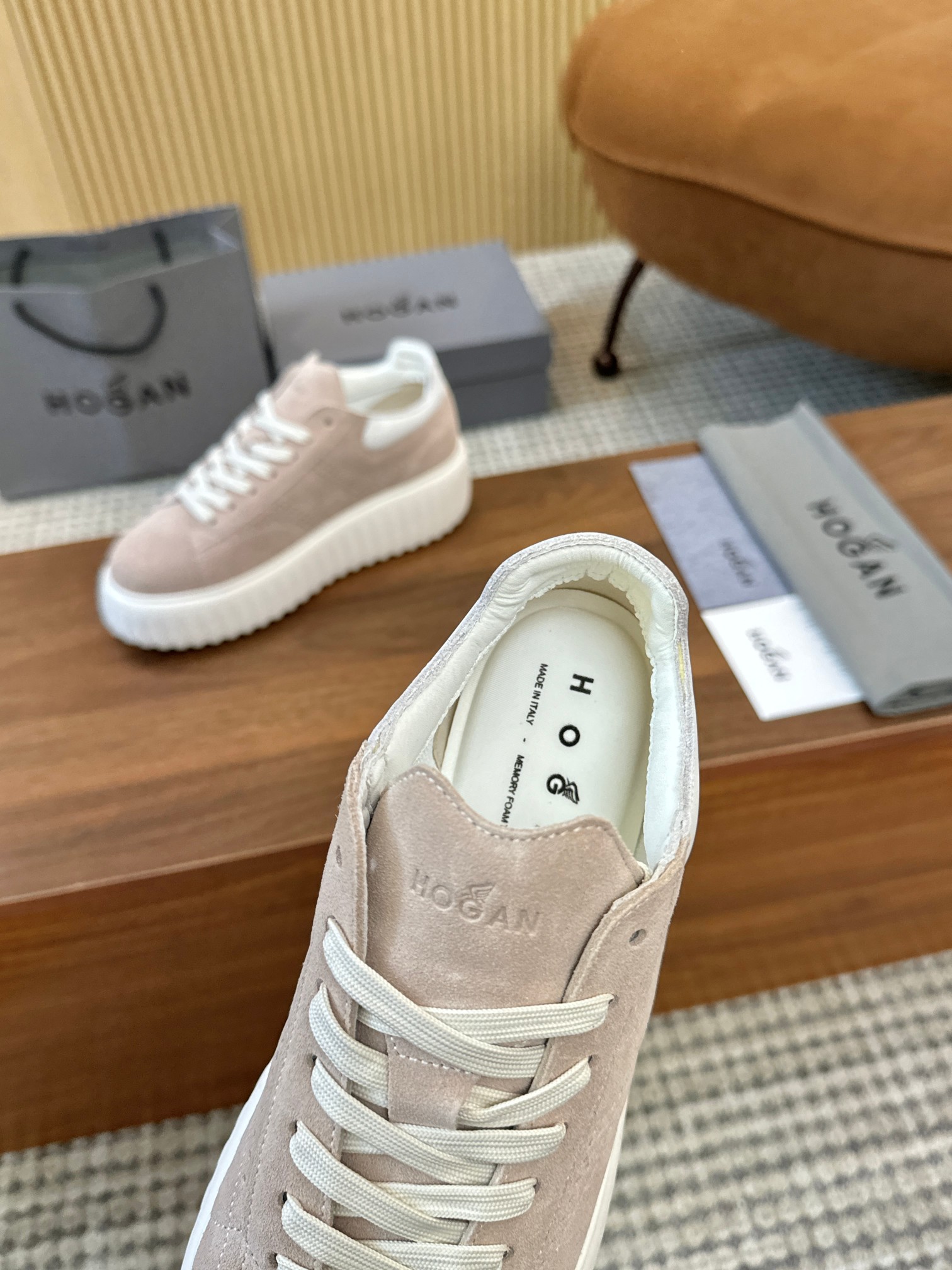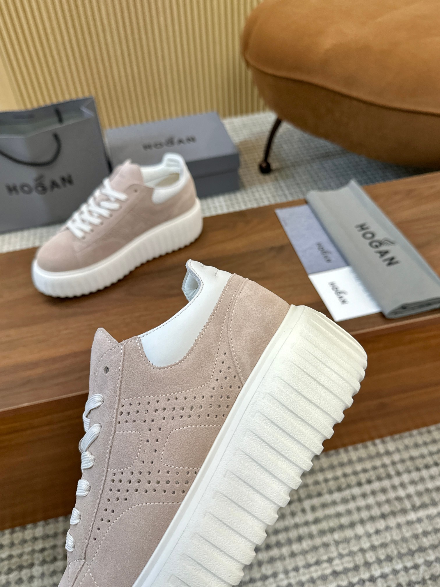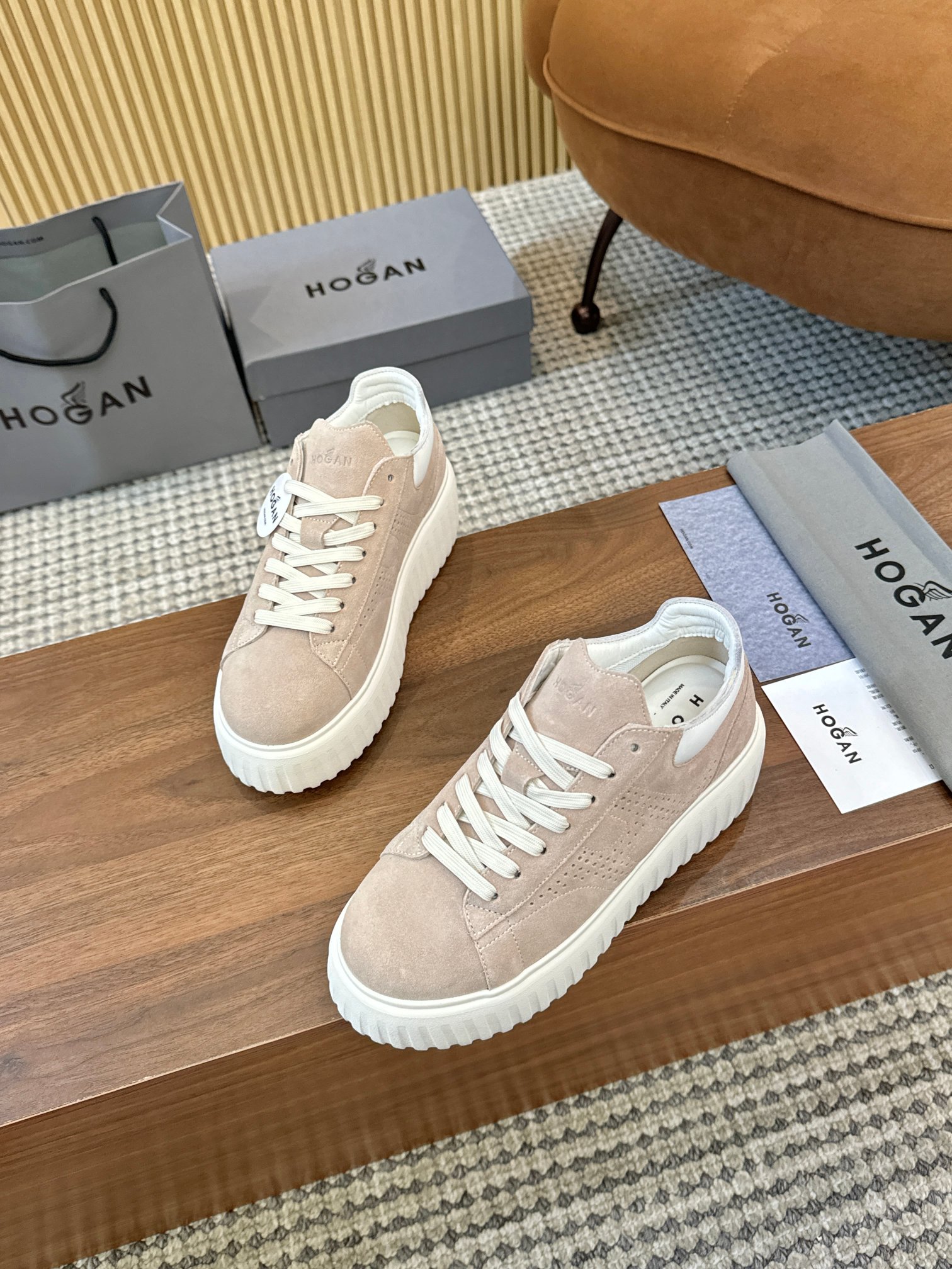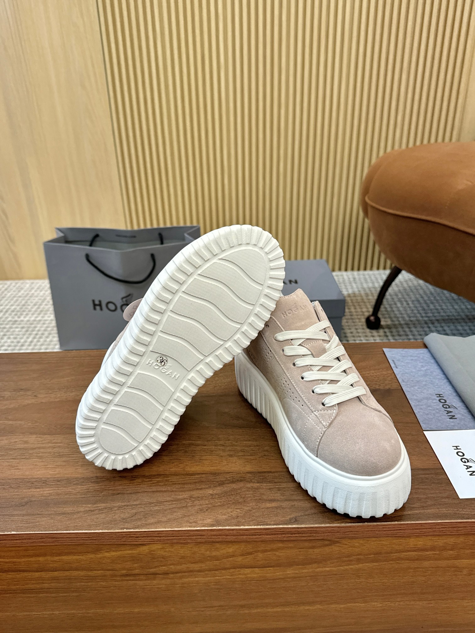 這款鞋子是AAAAA 1:1 質量(非常棒). 使用了和原版一模一樣的材料. 商標部分也保持了和Hogan一樣. 圖片拍攝是實物鞋子拍攝, 您所收到的實物保證和我們圖片一模一樣.