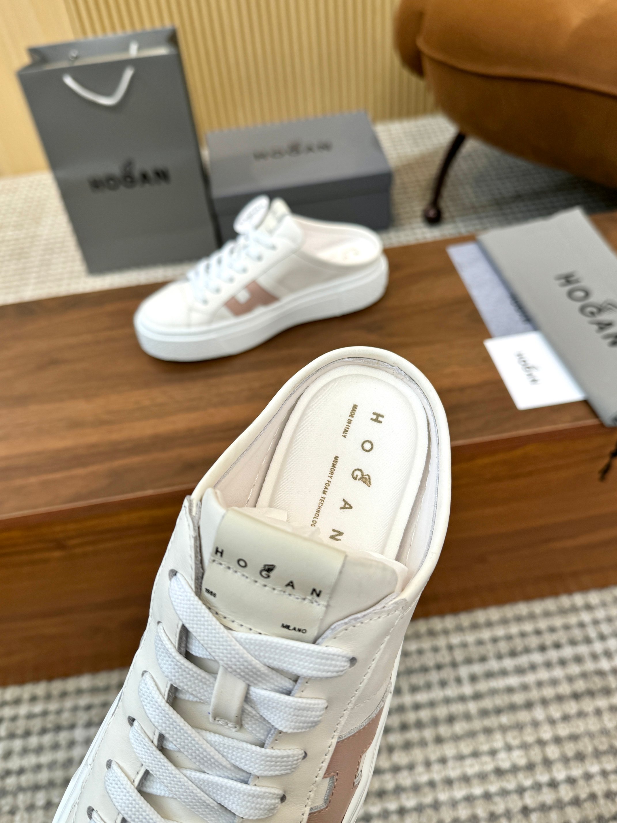 這款鞋子是AAAAA 1:1 質量(非常棒). 使用了和原版一模一樣的材料. 商標部分也保持了和Hogan一樣. 圖片拍攝是實物鞋子拍攝, 您所收到的實物保證和我們圖片一模一樣.