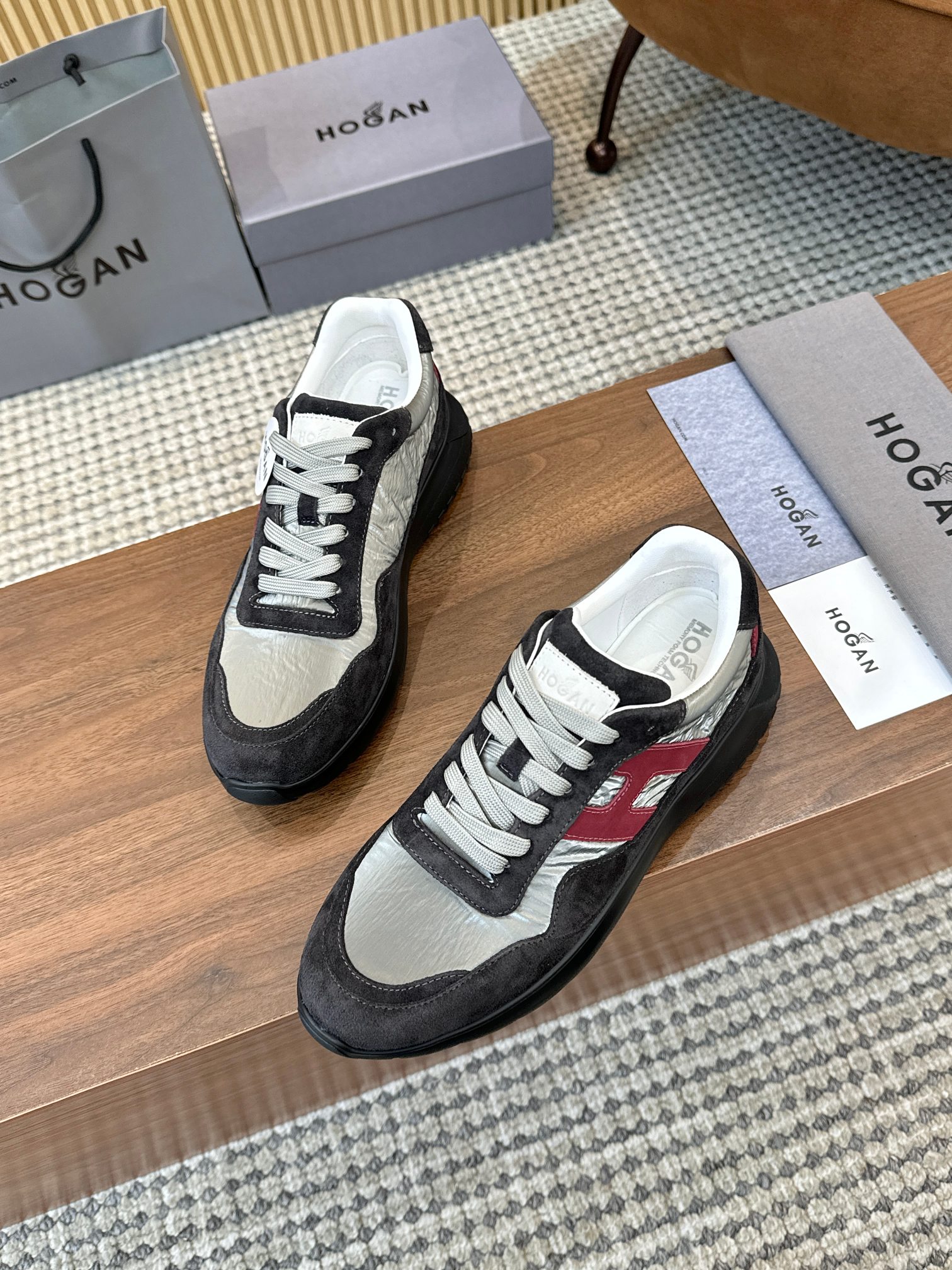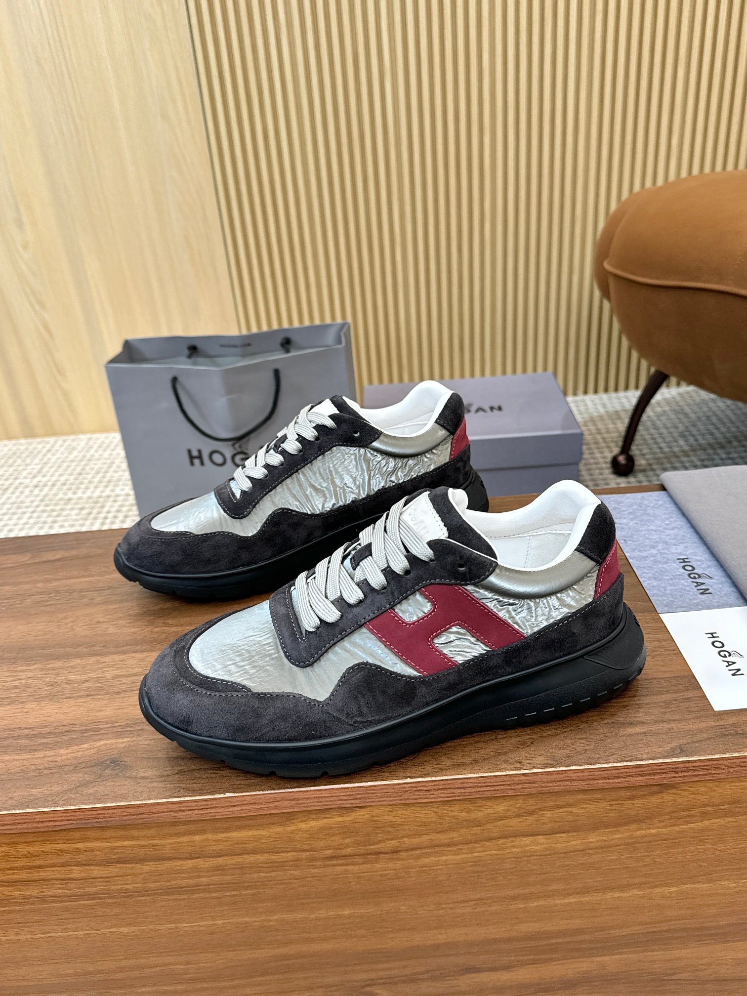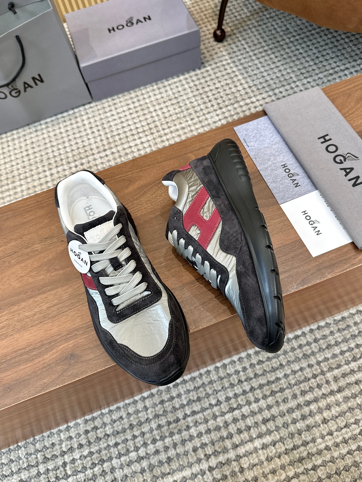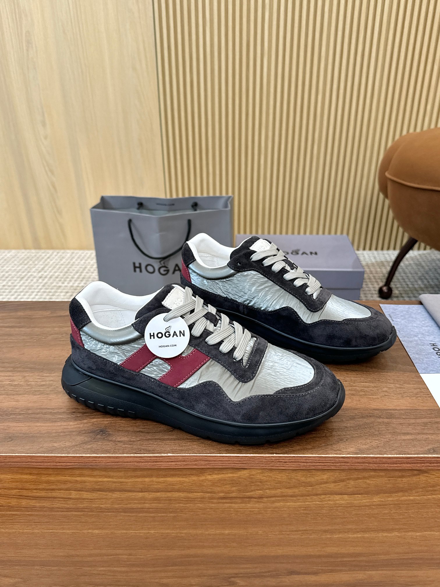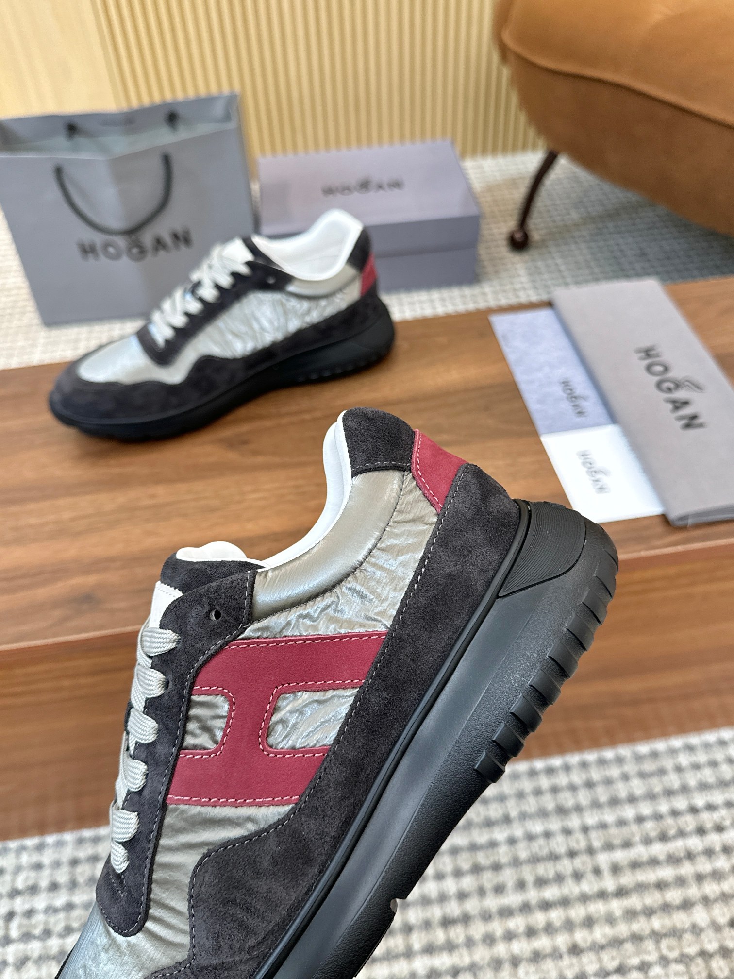 這款鞋子是AAAAA 1:1 質量(非常棒). 使用了和原版一模一樣的材料. 商標部分也保持了和Hogan一樣. 圖片拍攝是實物鞋子拍攝, 您所收到的實物保證和我們圖片一模一樣.