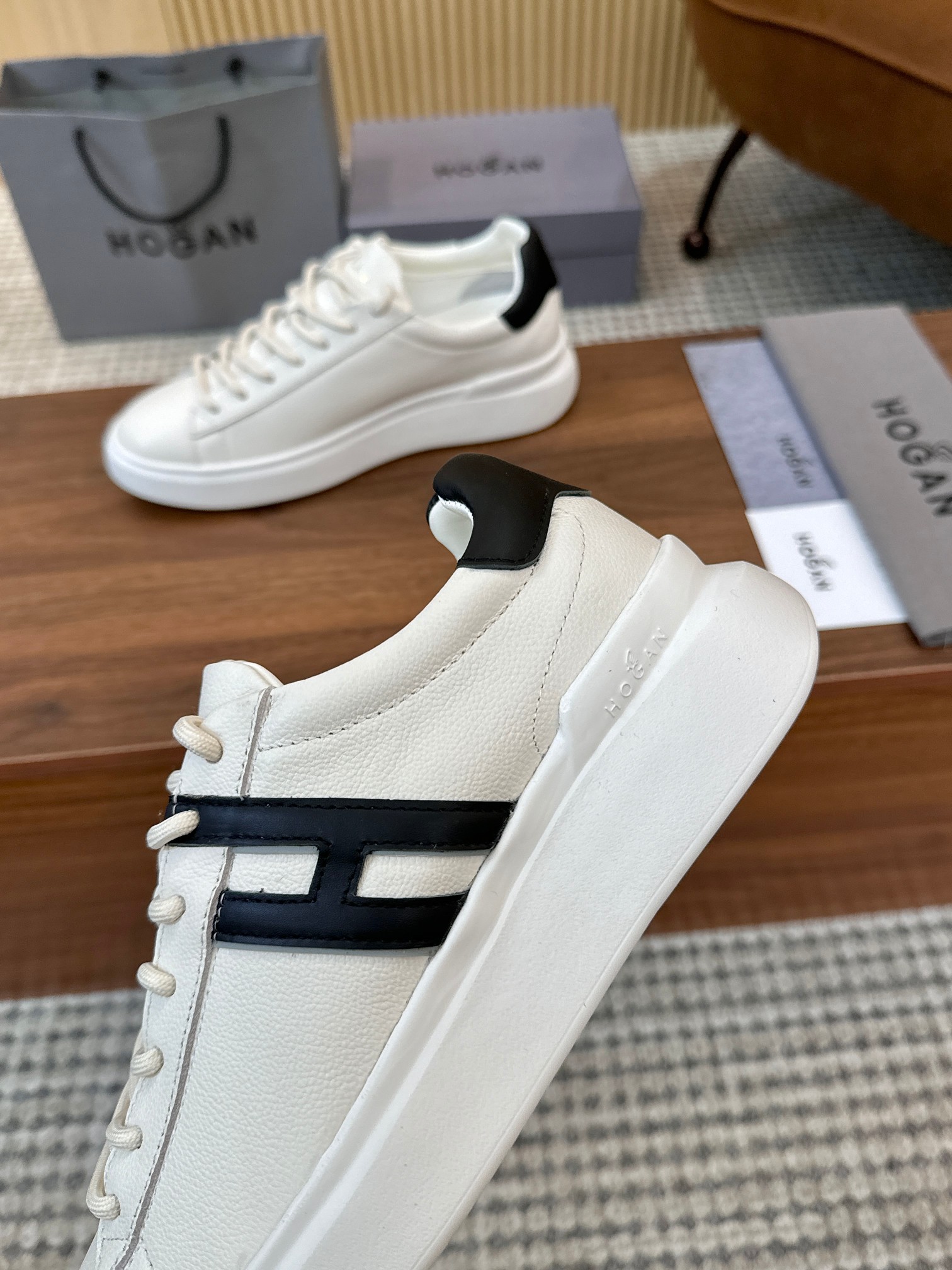 這款鞋子是AAAAA 1:1 質量(非常棒). 使用了和原版一模一樣的材料. 商標部分也保持了和Hogan一樣. 圖片拍攝是實物鞋子拍攝, 您所收到的實物保證和我們圖片一模一樣.