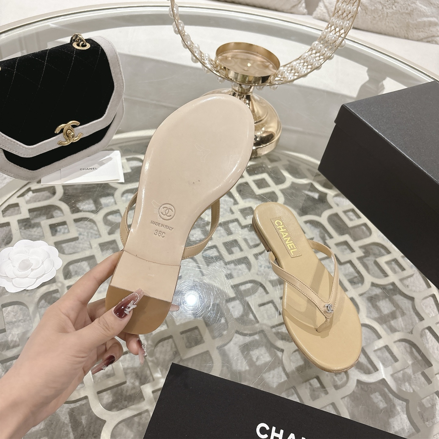 這款鞋子是AAAAA 1:1 質量(非常棒). 使用了和原版一模一樣的材料. 商標部分也保持了和香奈兒/Chanel一樣. 圖片拍攝是實物鞋子拍攝, 您所收到的實物保證和我們圖片一模一樣.