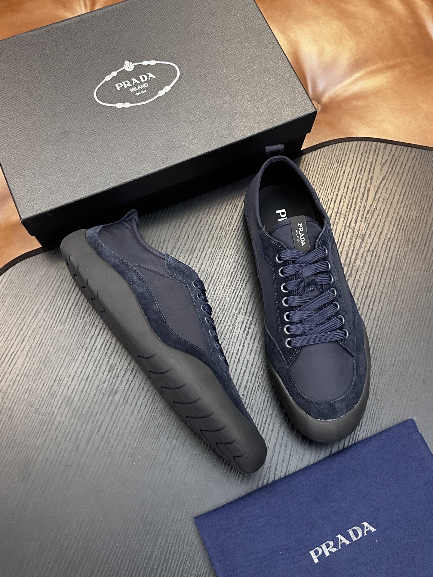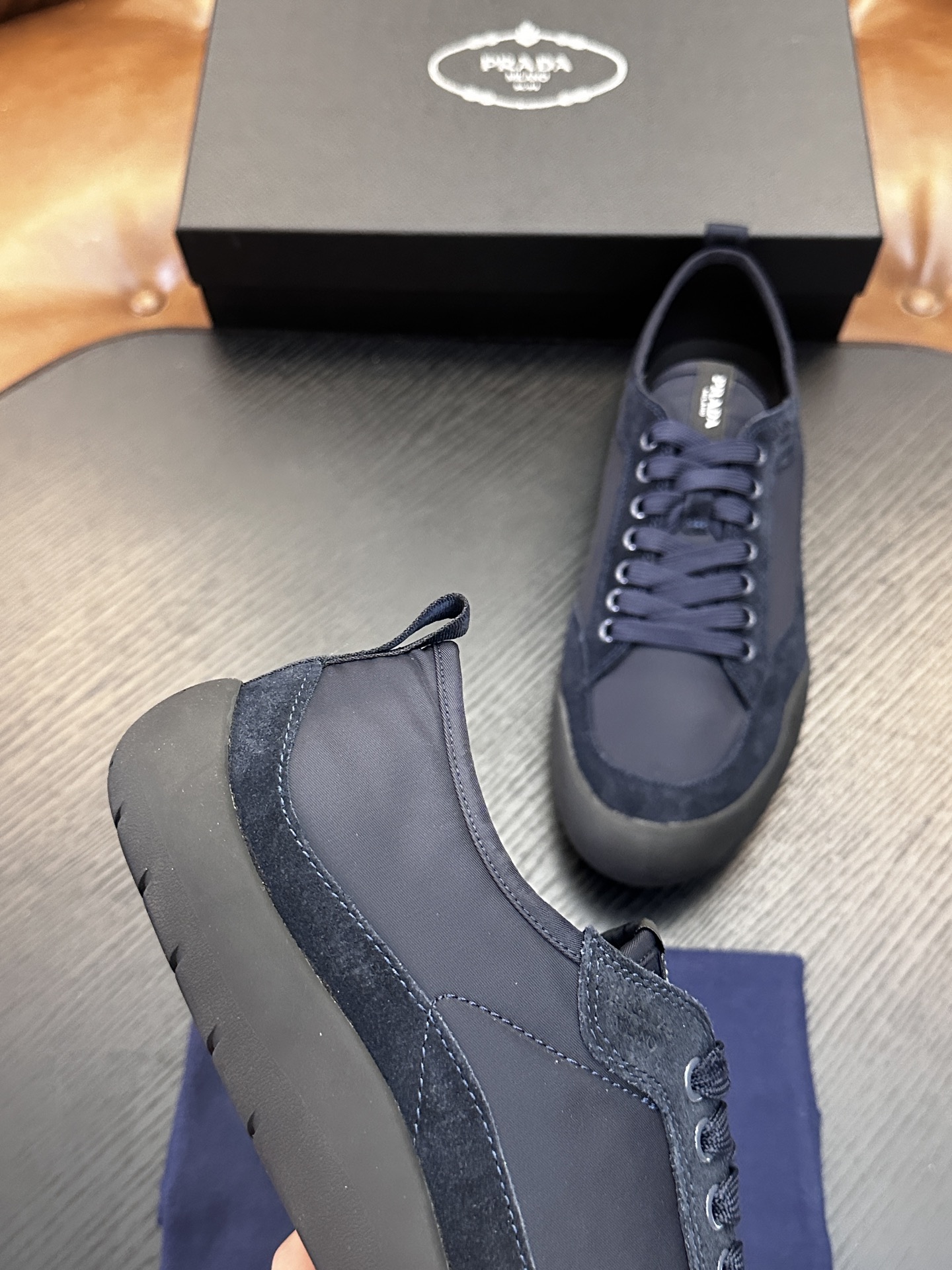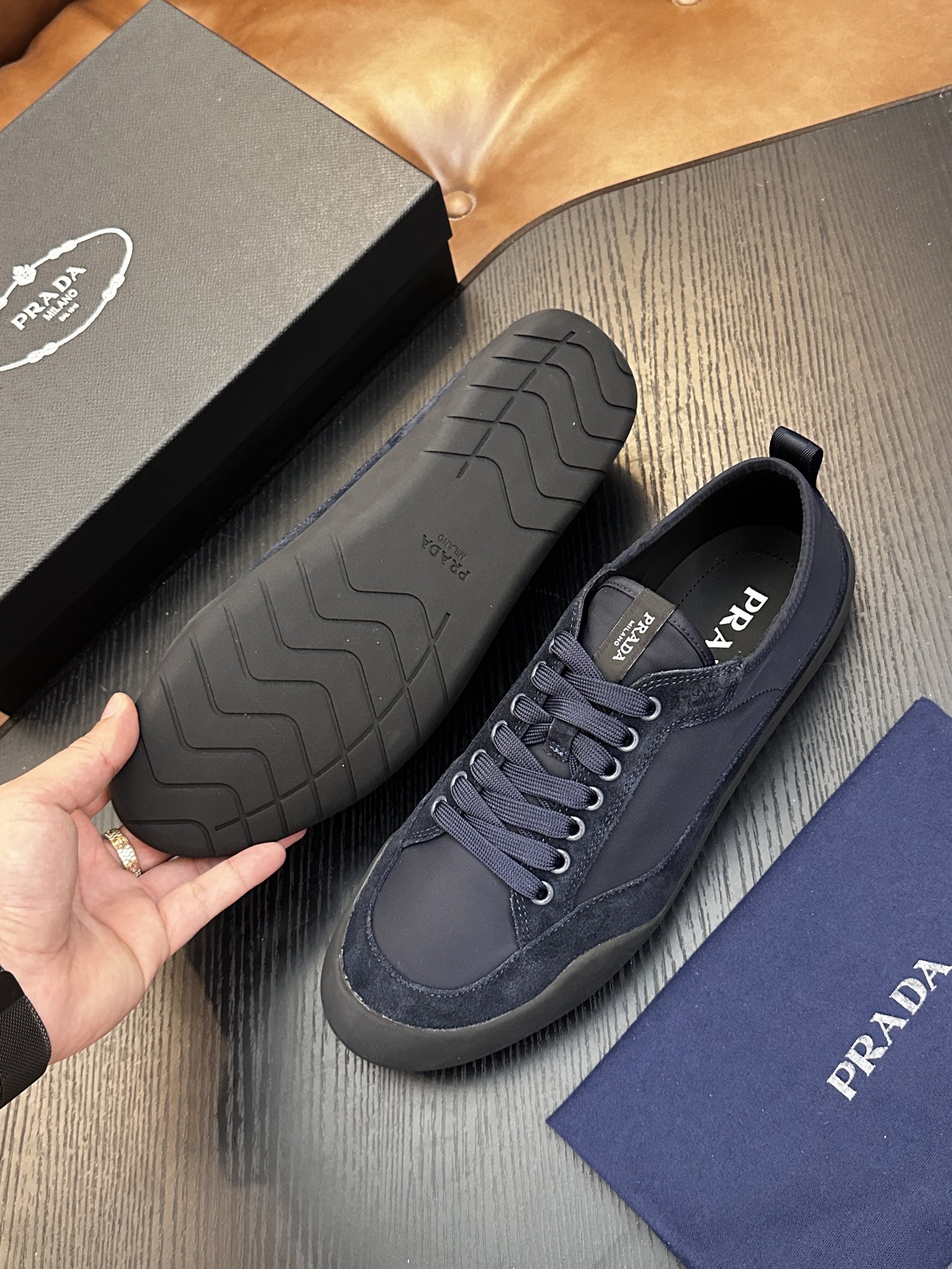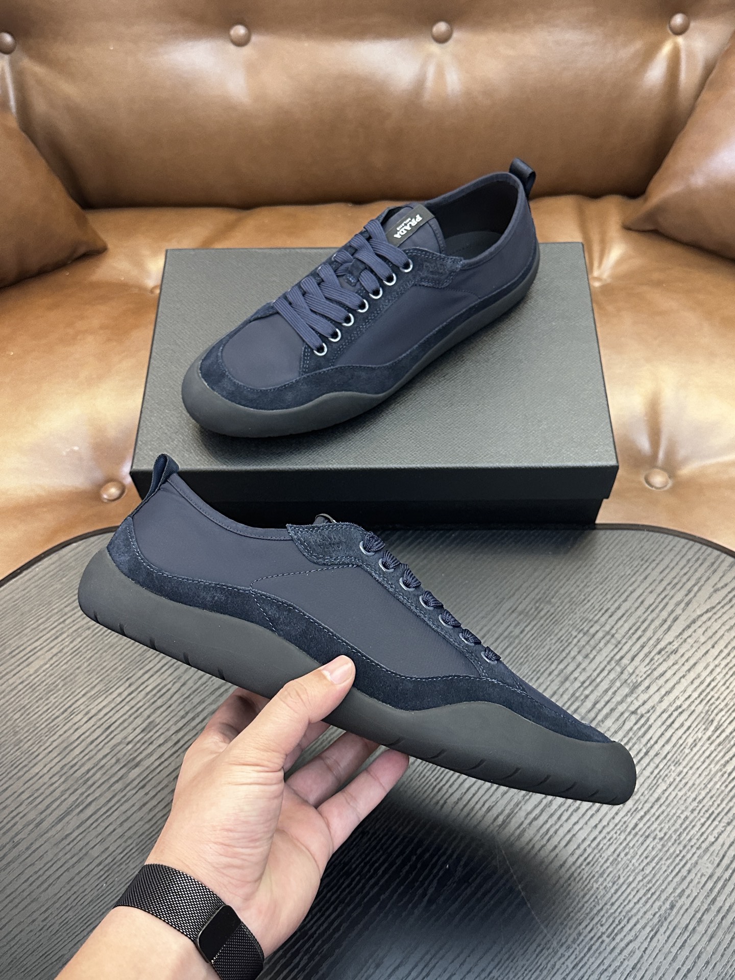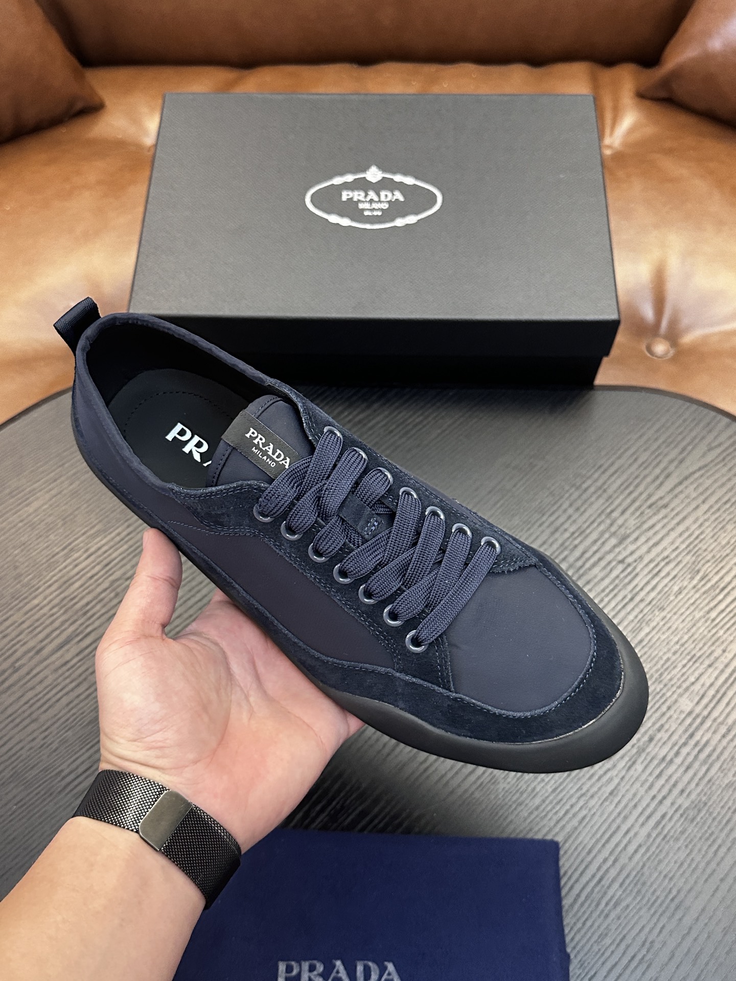 這款鞋子是AAAAA 1:1 質量(非常棒). 使用了和原版一模一樣的材料. 商標部分也保持了和普拉達/Prada一樣. 圖片拍攝是實物鞋子拍攝, 您所收到的實物保證和我們圖片一模一樣.