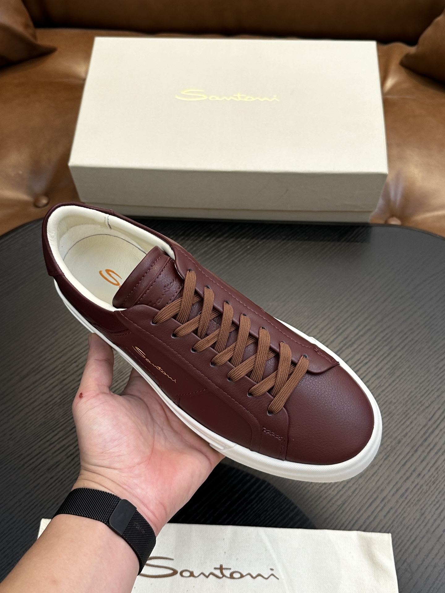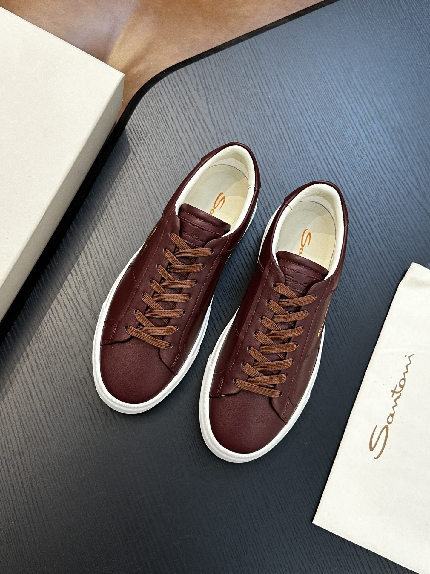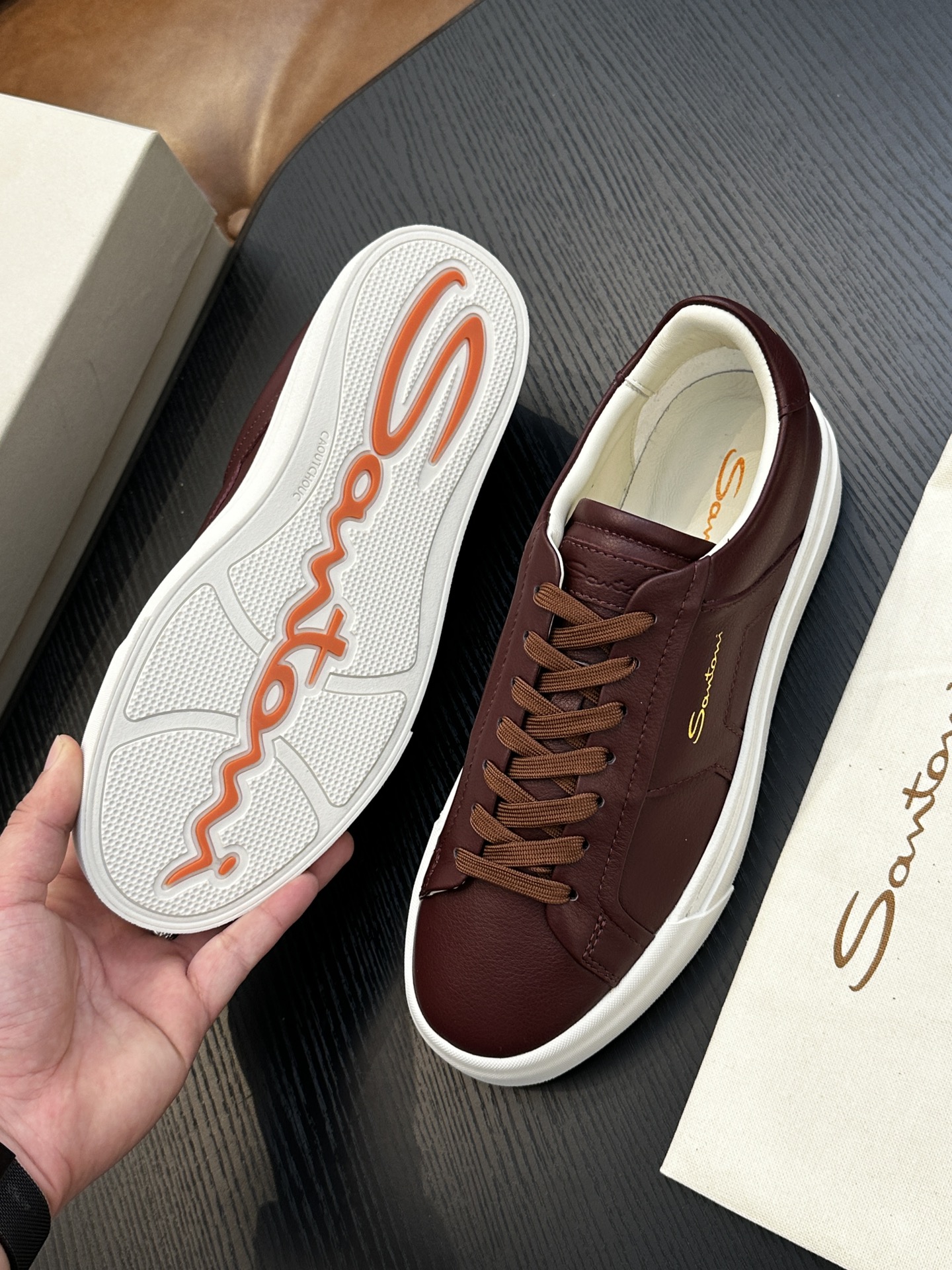 這款鞋子是AAAAA 1:1 質量(非常棒). 使用了和原版一模一樣的材料. 商標部分也保持了和Santoni一樣. 圖片拍攝是實物鞋子拍攝, 您所收到的實物保證和我們圖片一模一樣.