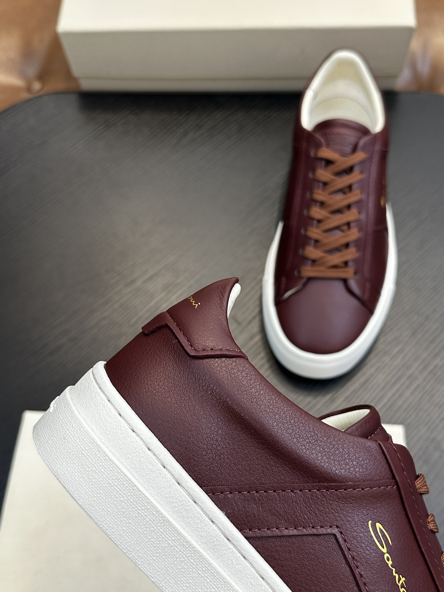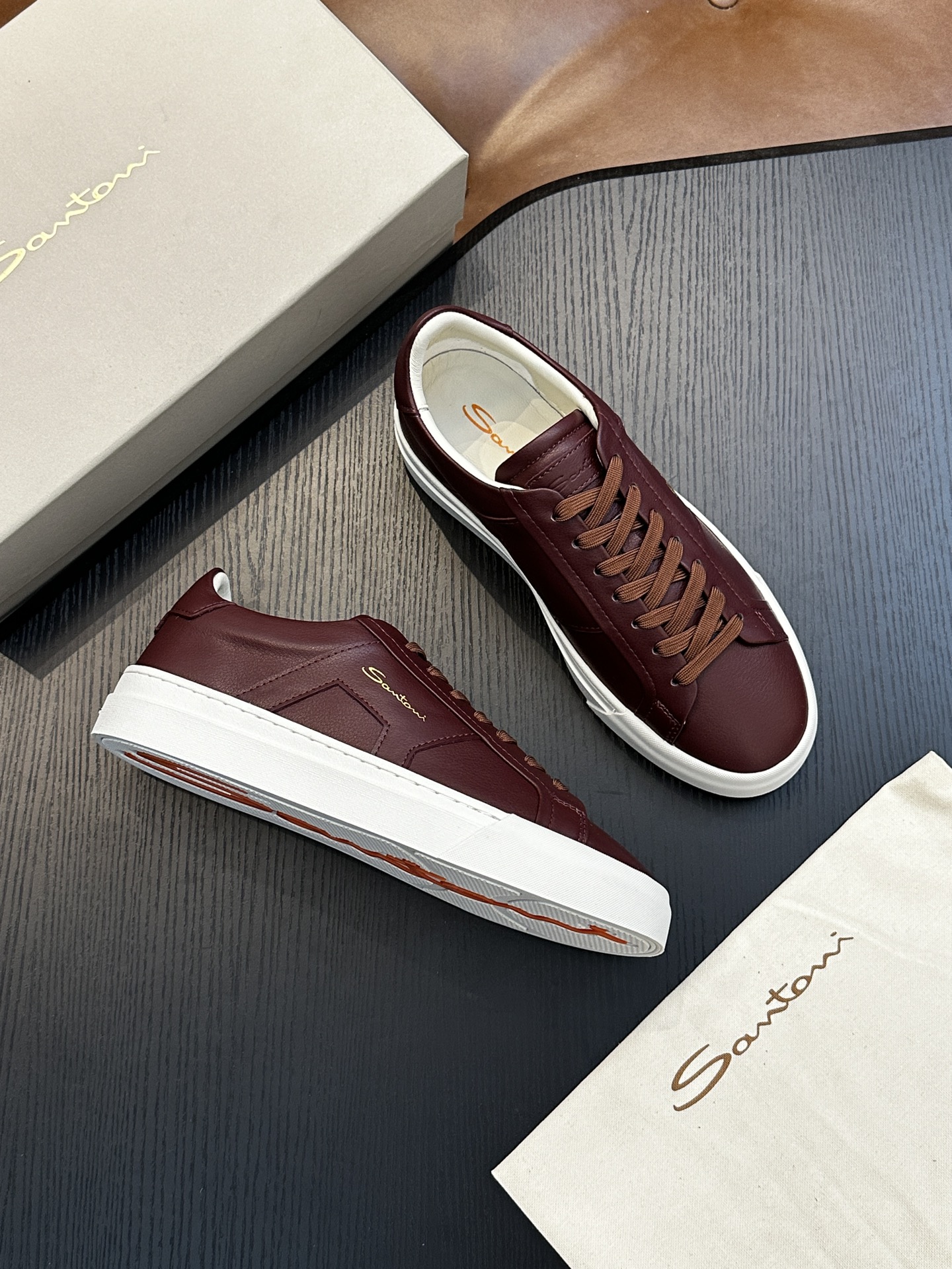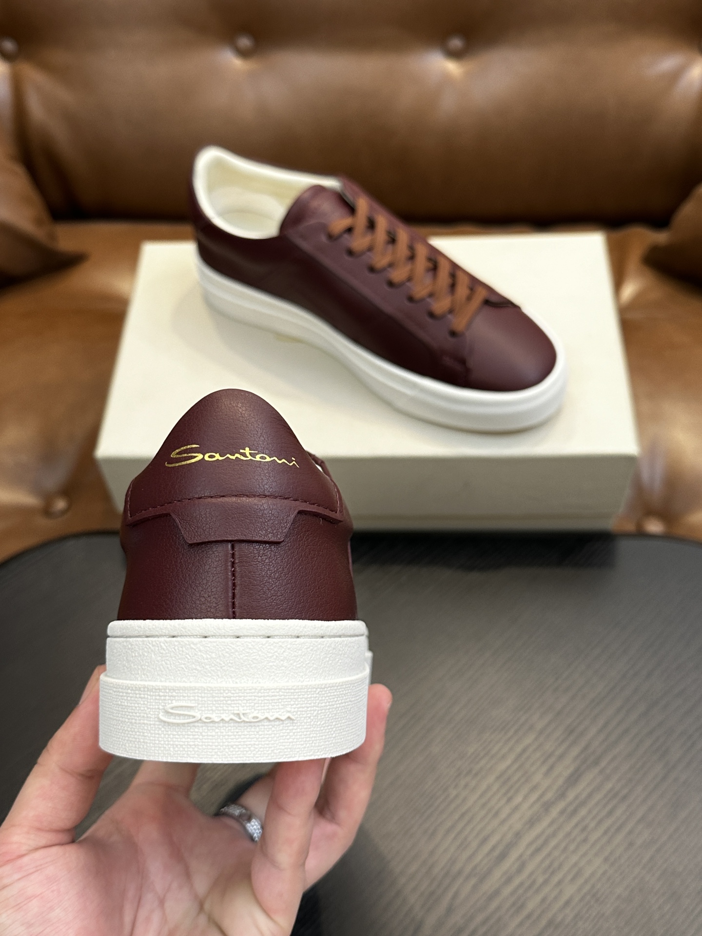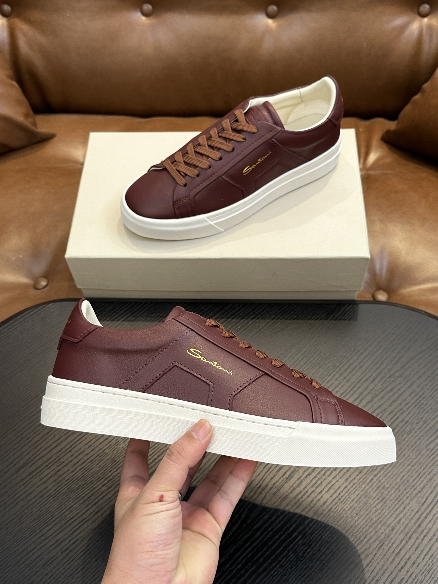 這款鞋子是AAAAA 1:1 質量(非常棒). 使用了和原版一模一樣的材料. 商標部分也保持了和Santoni一樣. 圖片拍攝是實物鞋子拍攝, 您所收到的實物保證和我們圖片一模一樣.