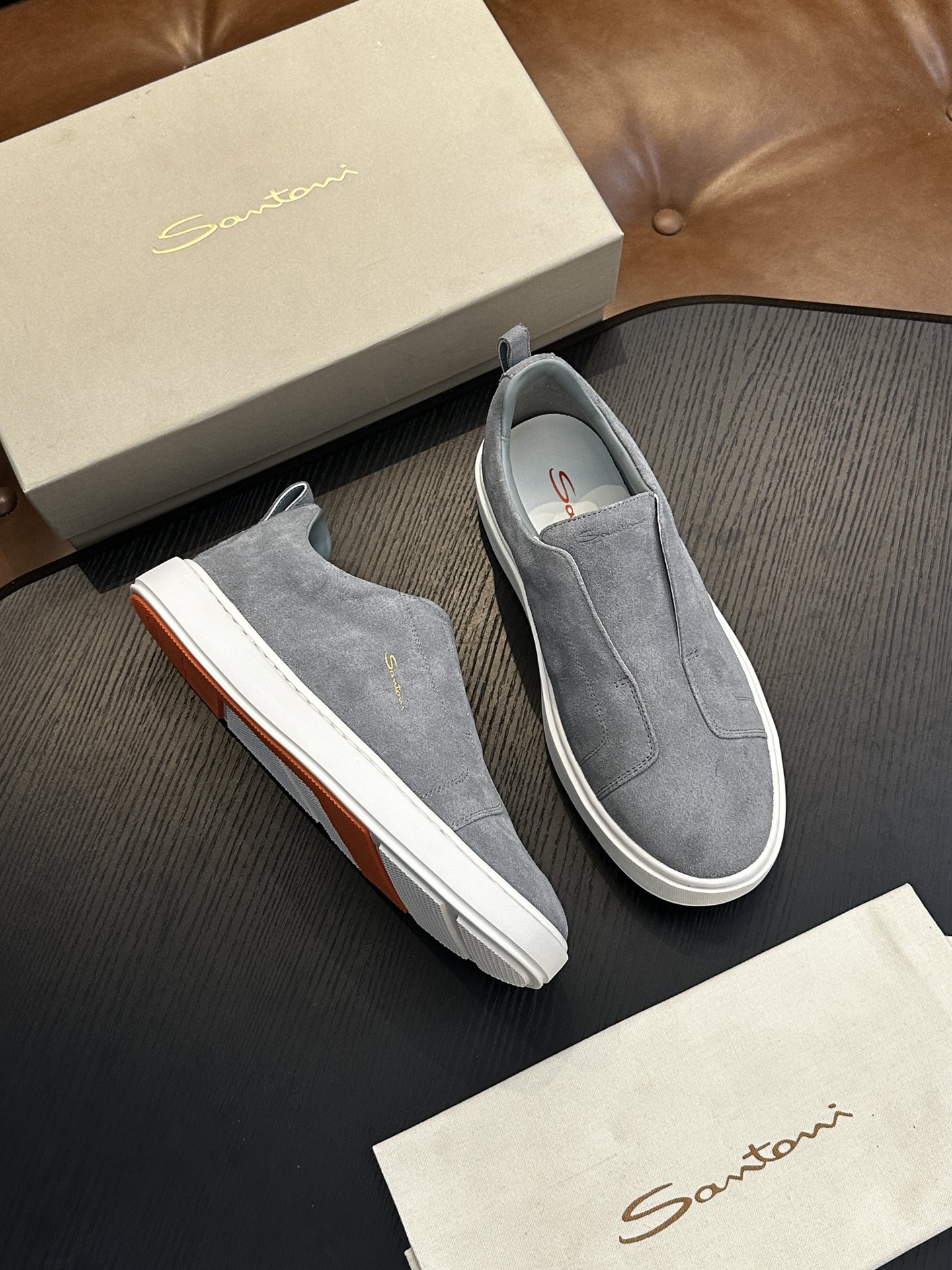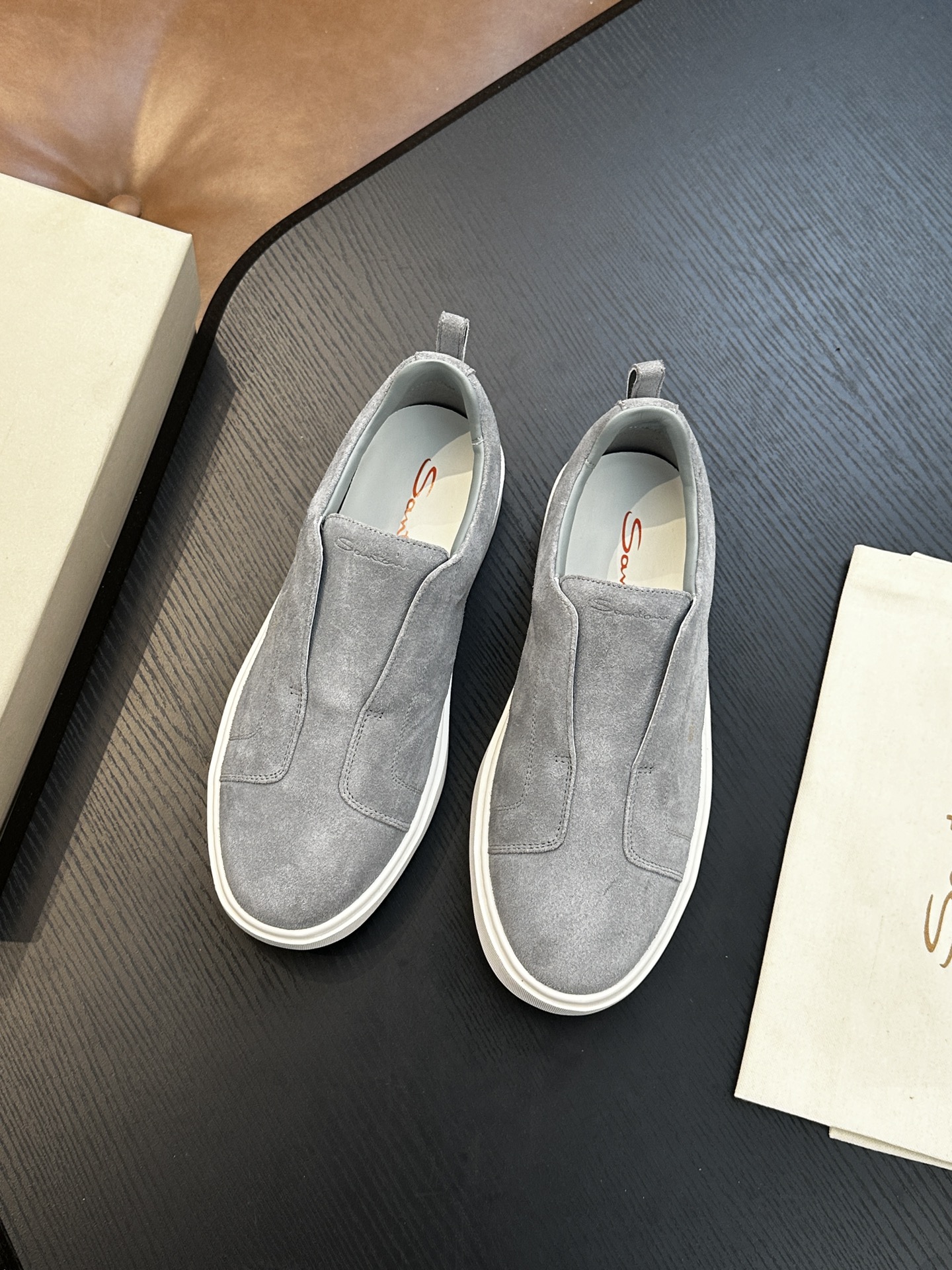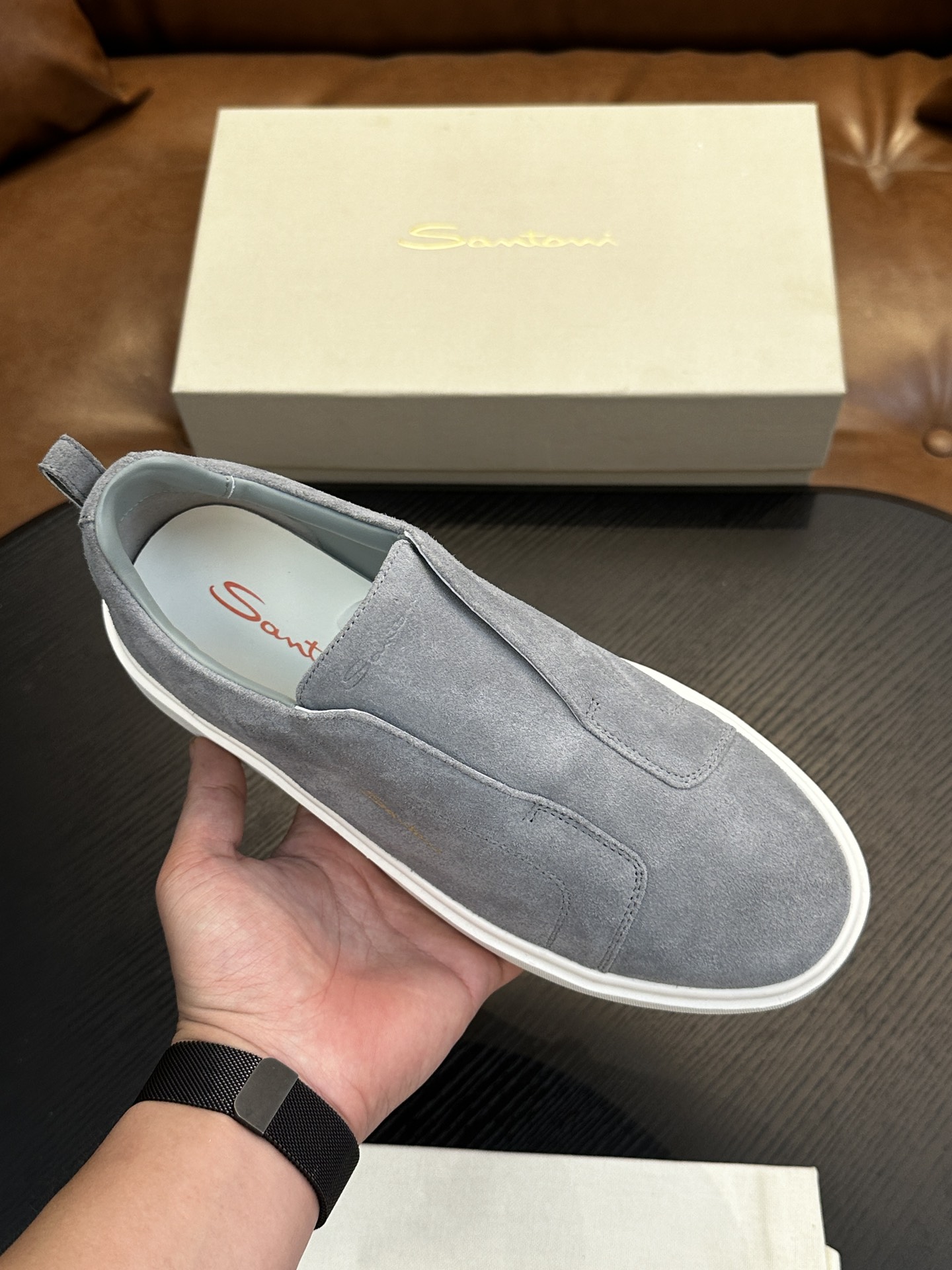 這款鞋子是AAAAA 1:1 質量(非常棒). 使用了和原版一模一樣的材料. 商標部分也保持了和Santoni一樣. 圖片拍攝是實物鞋子拍攝, 您所收到的實物保證和我們圖片一模一樣.