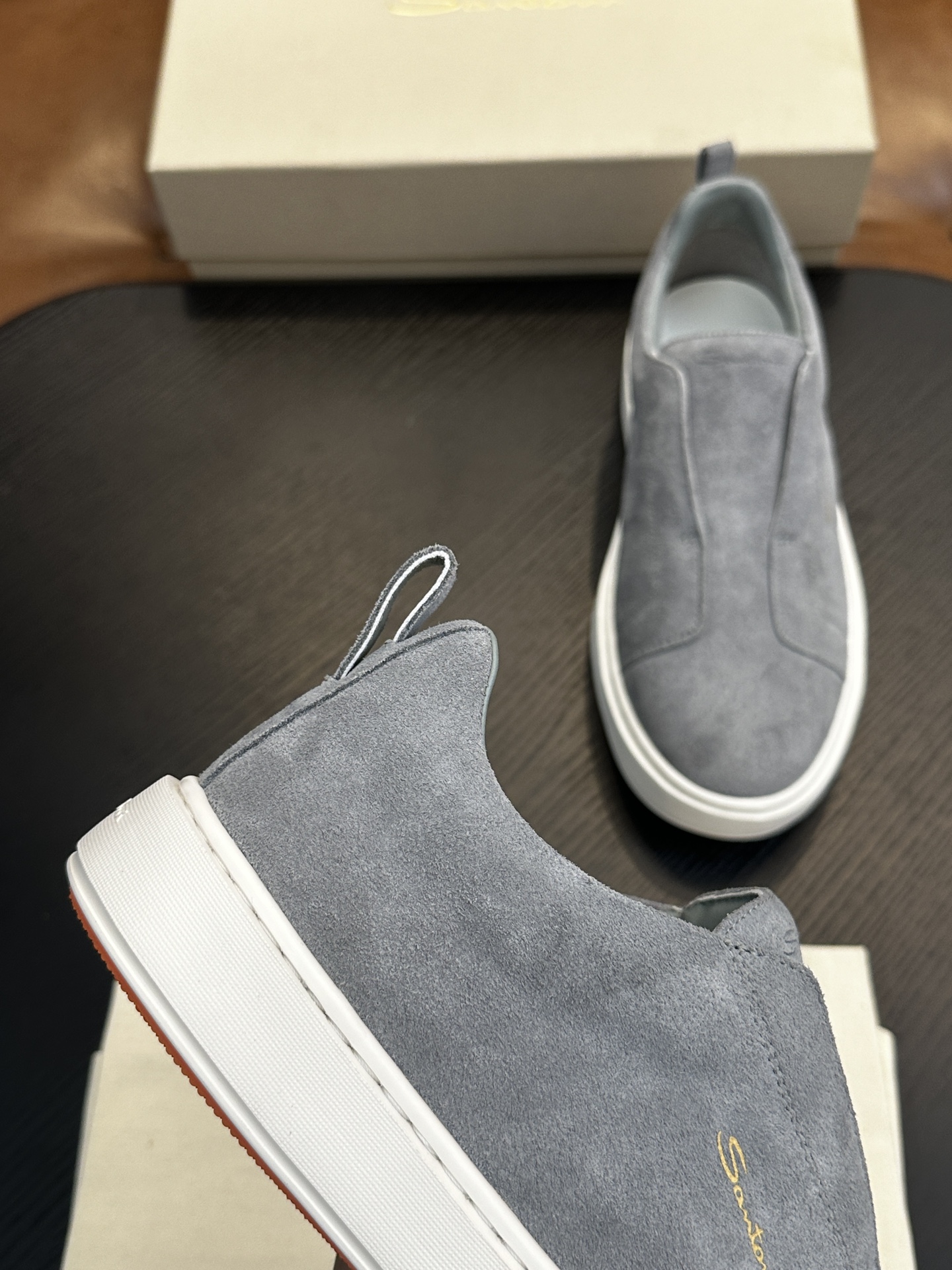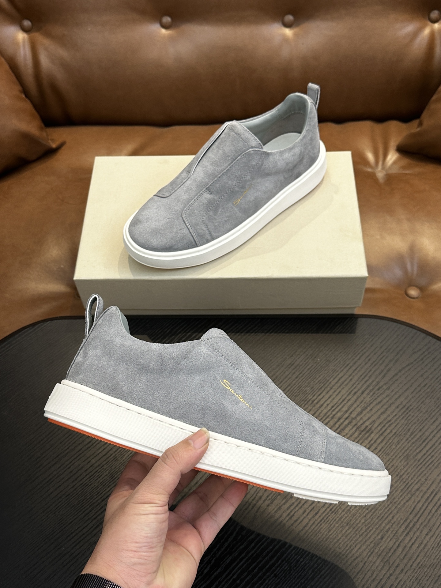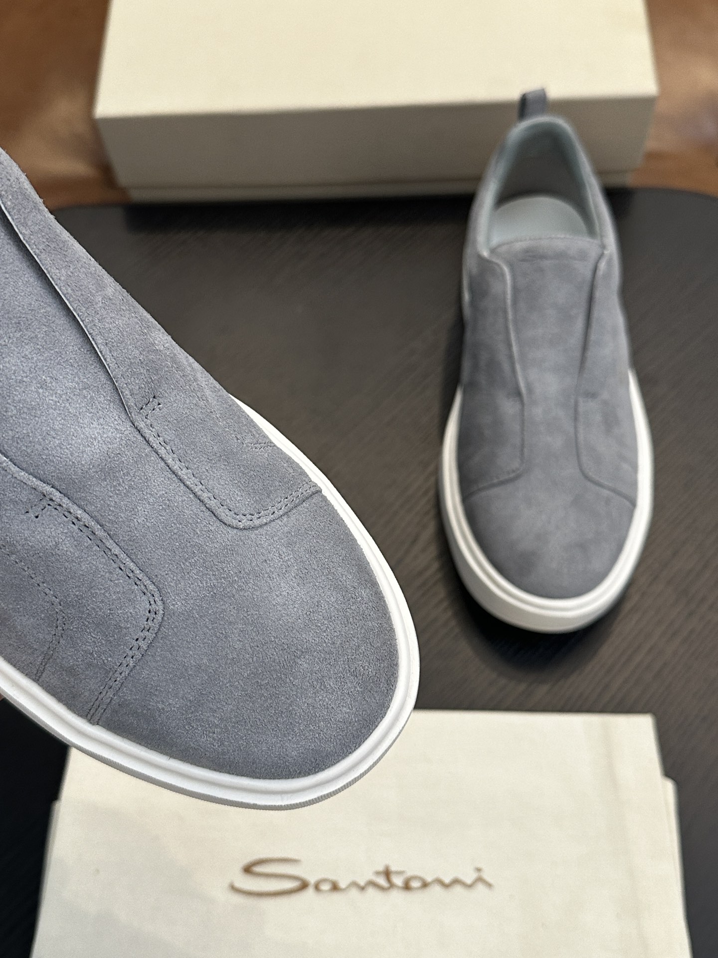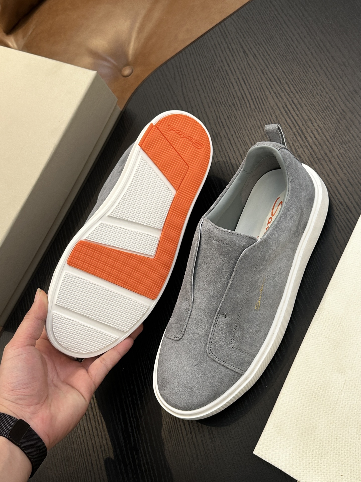這款鞋子是AAAAA 1:1 質量(非常棒). 使用了和原版一模一樣的材料. 商標部分也保持了和Santoni一樣. 圖片拍攝是實物鞋子拍攝, 您所收到的實物保證和我們圖片一模一樣.
