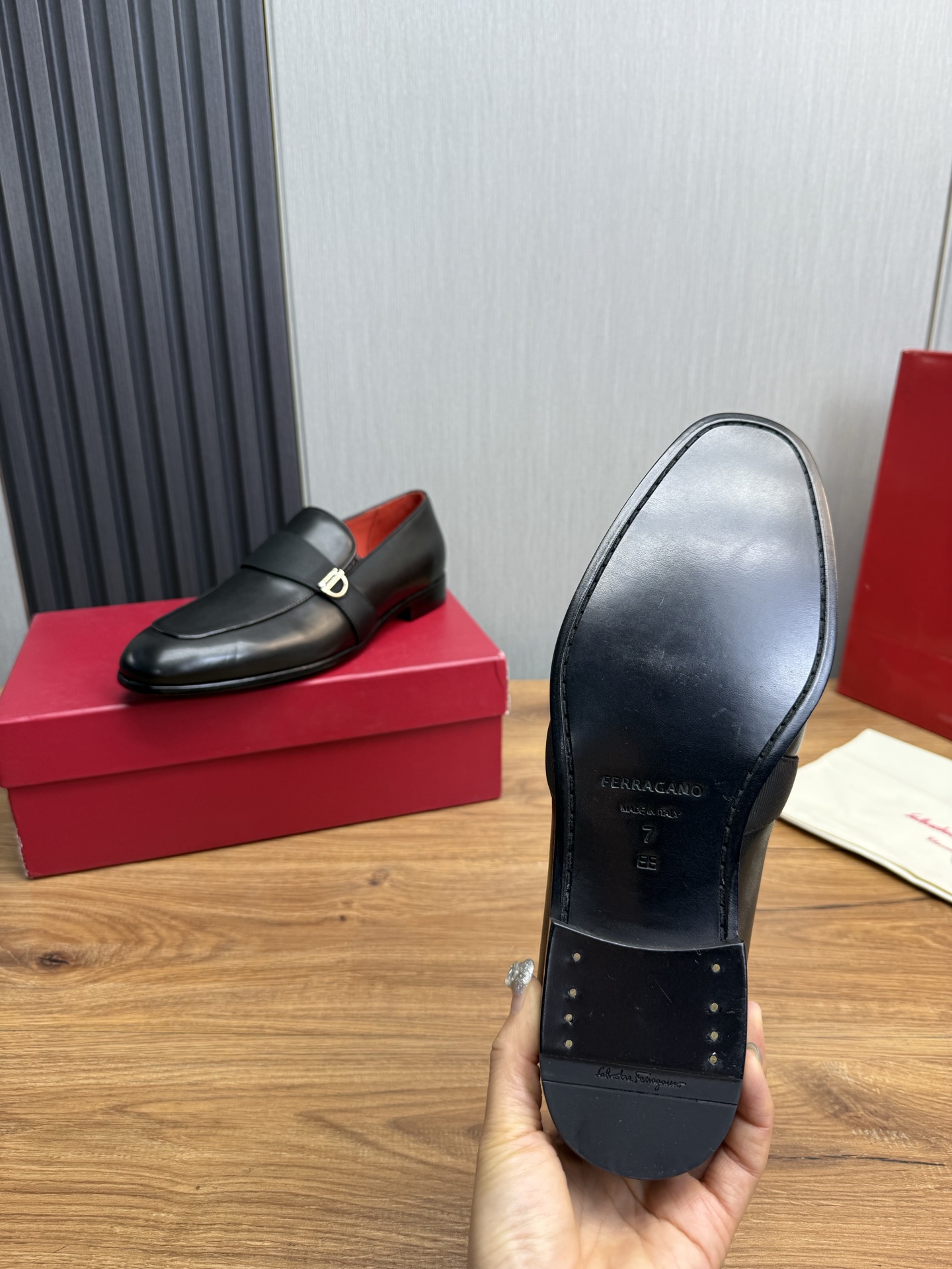 這款鞋子是AAAAA 1:1 質量(非常棒). 使用了和原版一模一樣的材料. 商標部分也保持了和菲拉格慕/Salvatore Ferragamo一樣. 圖片拍攝是實物鞋子拍攝, 您所收到的實物保證和我們圖片一模一樣.