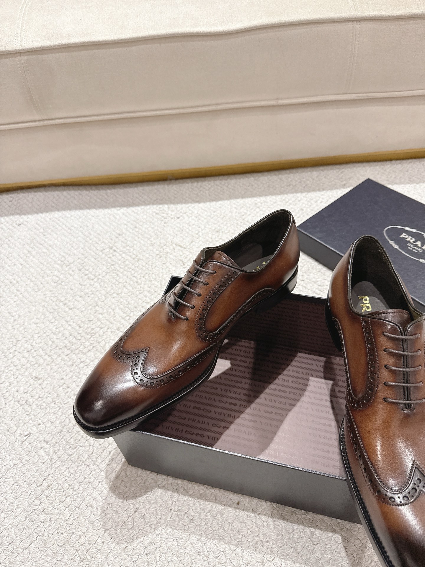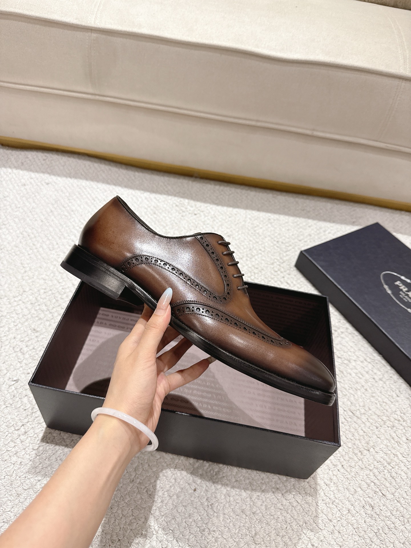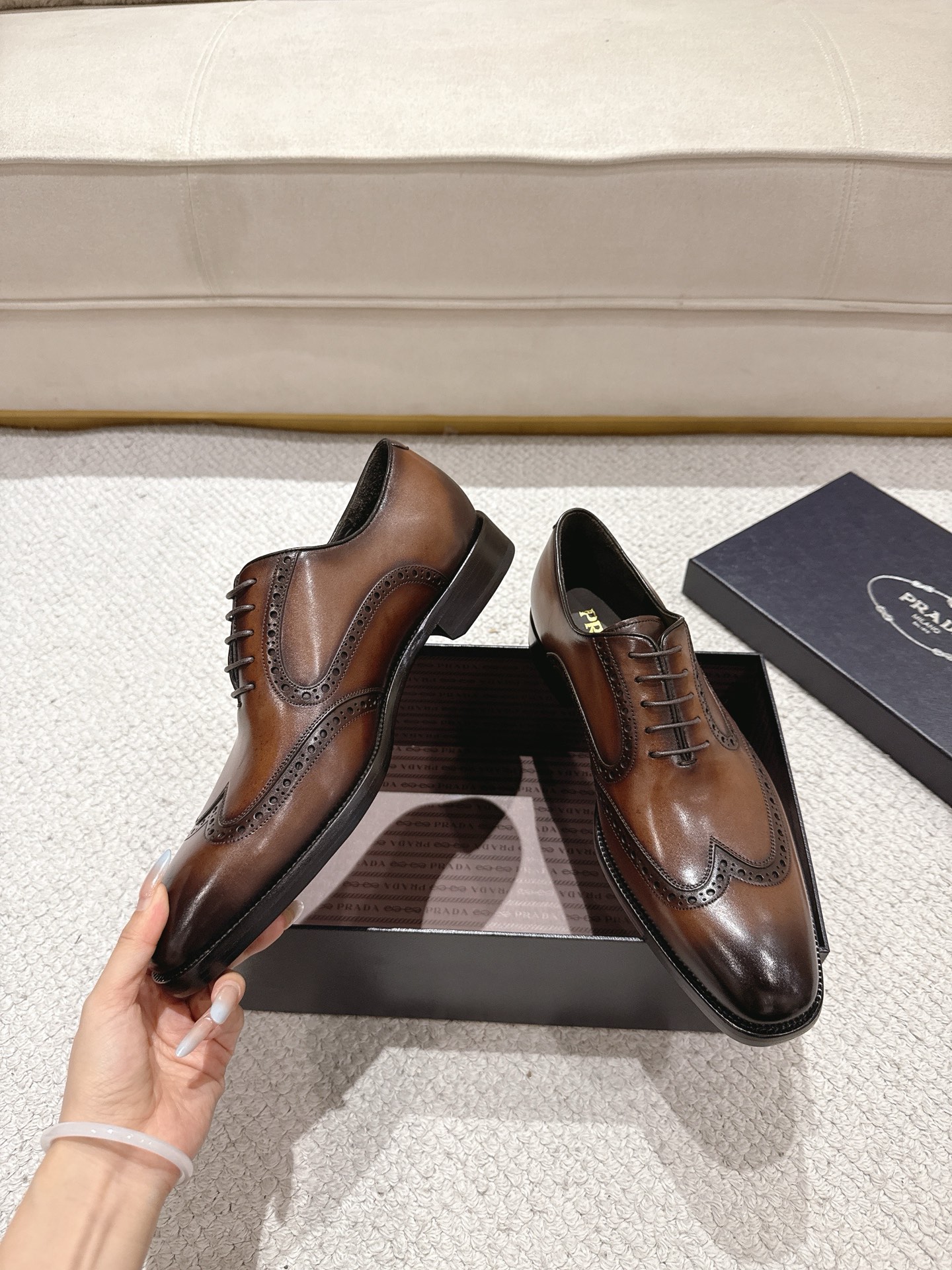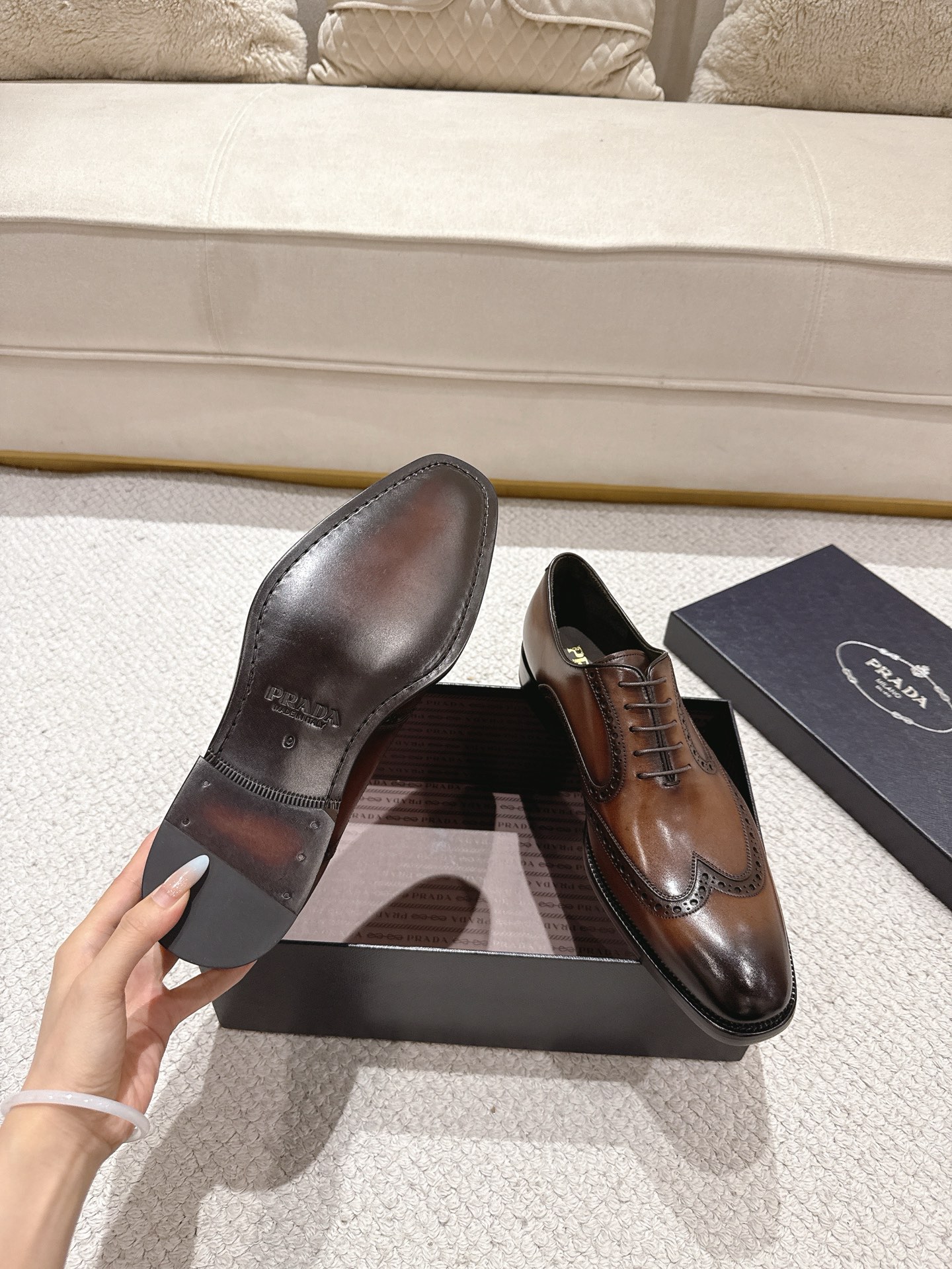 這款鞋子是AAAAA 1:1 質量(非常棒). 使用了和原版一模一樣的材料. 商標部分也保持了和普拉達/Prada一樣. 圖片拍攝是實物鞋子拍攝, 您所收到的實物保證和我們圖片一模一樣.