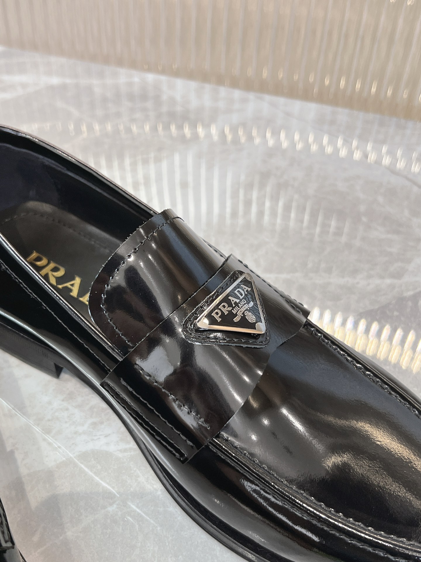 這款鞋子是AAAAA 1:1 質量(非常棒). 使用了和原版一模一樣的材料. 商標部分也保持了和普拉達/Prada一樣. 圖片拍攝是實物鞋子拍攝, 您所收到的實物保證和我們圖片一模一樣.