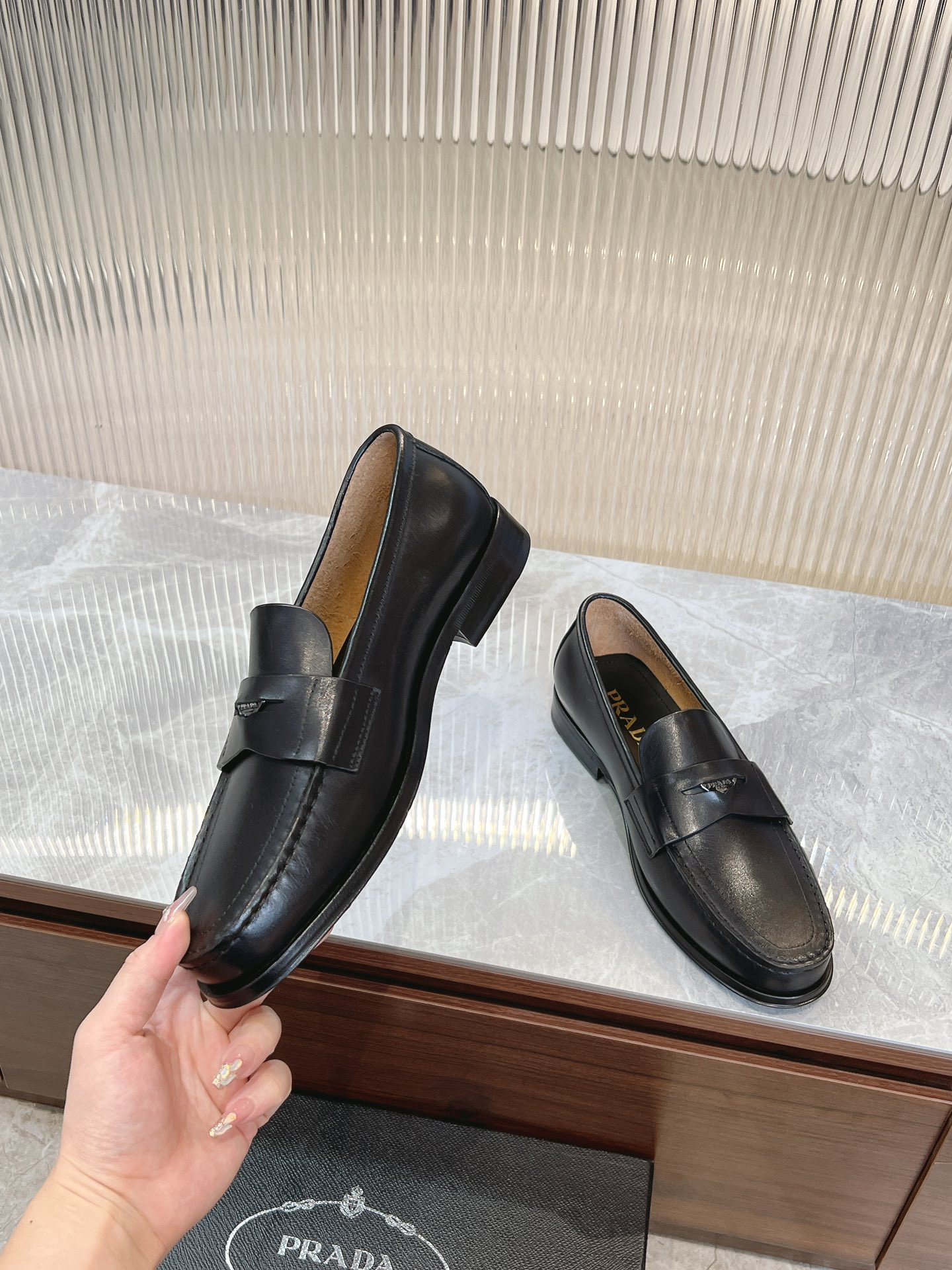 這款鞋子是AAAAA 1:1 質量(非常棒). 使用了和原版一模一樣的材料. 商標部分也保持了和普拉達/Prada一樣. 圖片拍攝是實物鞋子拍攝, 您所收到的實物保證和我們圖片一模一樣.
