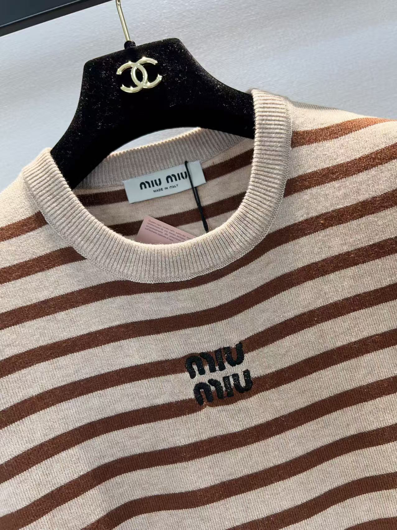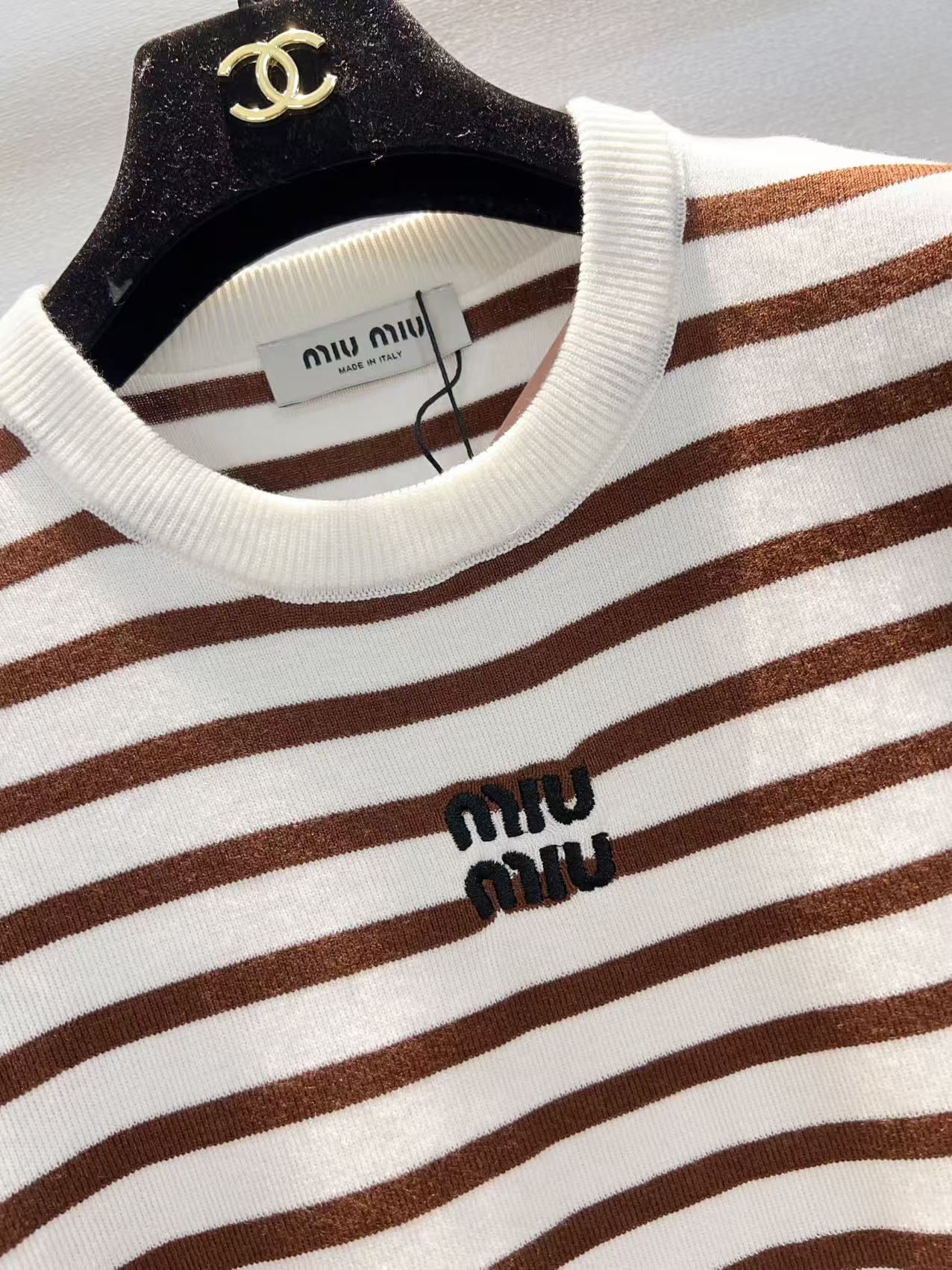 這款衣服是AAAAA 1:1 質量(非常棒). 使用了和原版一模一樣的材料. 商標部分也保持了和繆繆/Miu Miu一樣. 圖片拍攝是實物衣服拍攝, 您所收到的實物保證和我們圖片一模一樣.