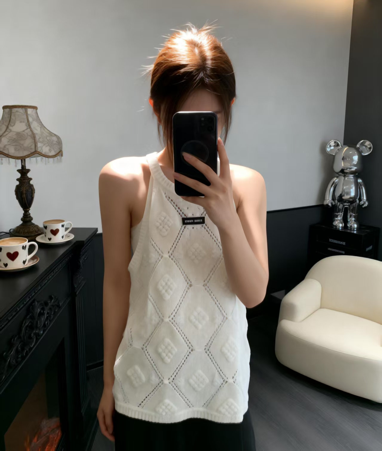 這款衣服是AAAAA 1:1 質量(非常棒). 使用了和原版一模一樣的材料. 商標部分也保持了和繆繆/Miu Miu一樣. 圖片拍攝是實物衣服拍攝, 您所收到的實物保證和我們圖片一模一樣.