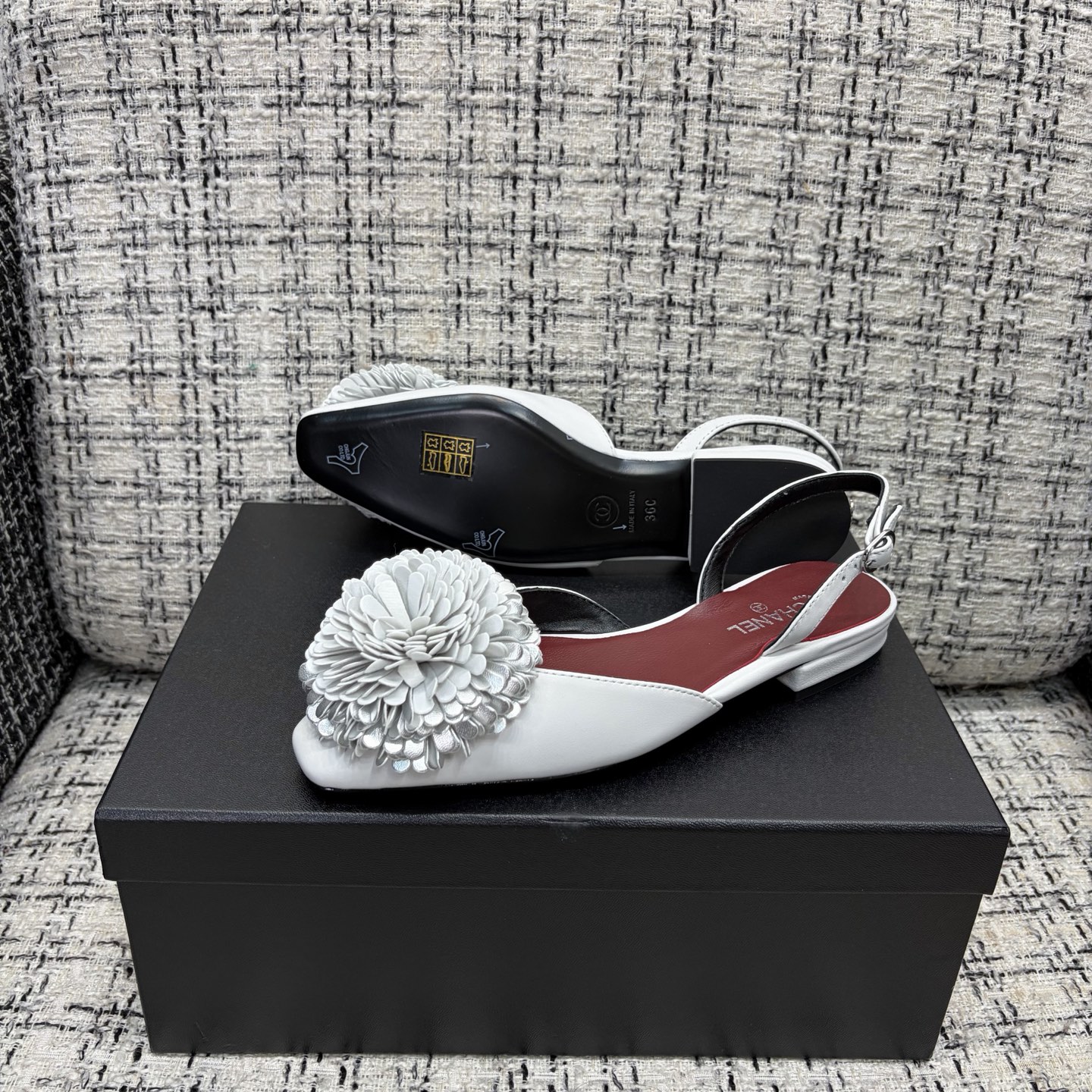 這款鞋子是AAAAA 1:1 質量(非常棒). 使用了和原版一模一樣的材料. 商標部分也保持了和香奈兒/Chanel一樣. 圖片拍攝是實物鞋子拍攝, 您所收到的實物保證和我們圖片一模一樣.