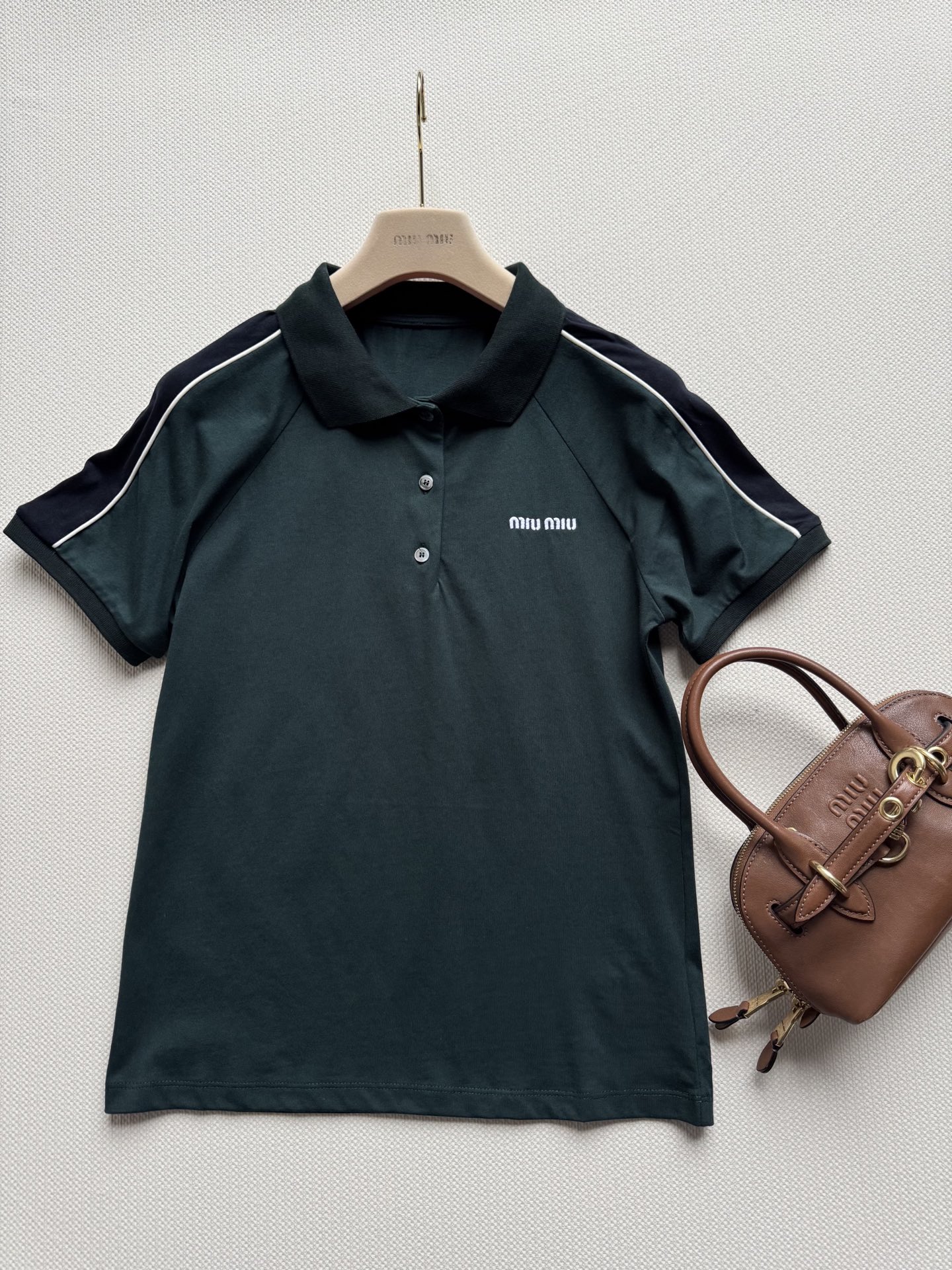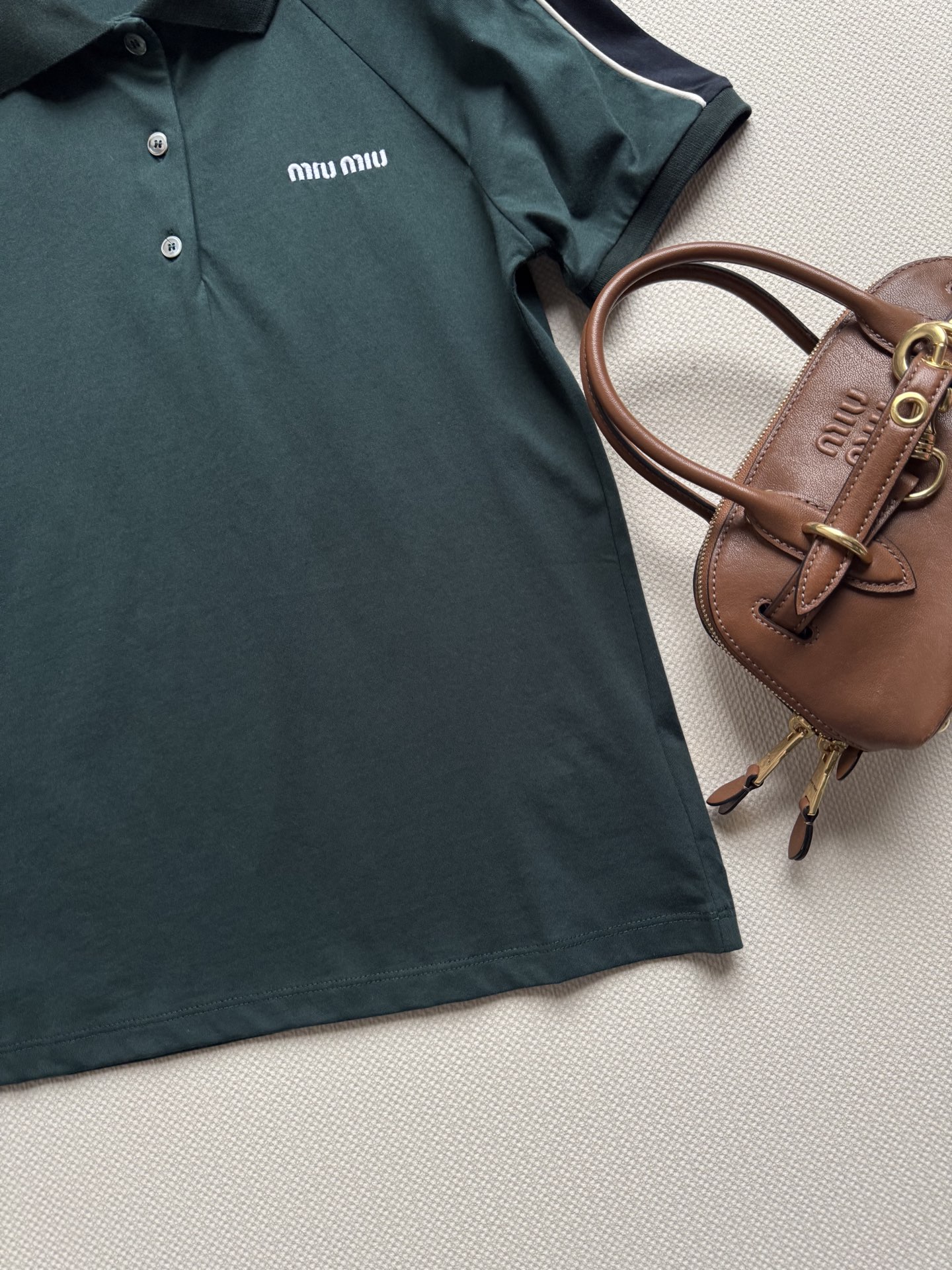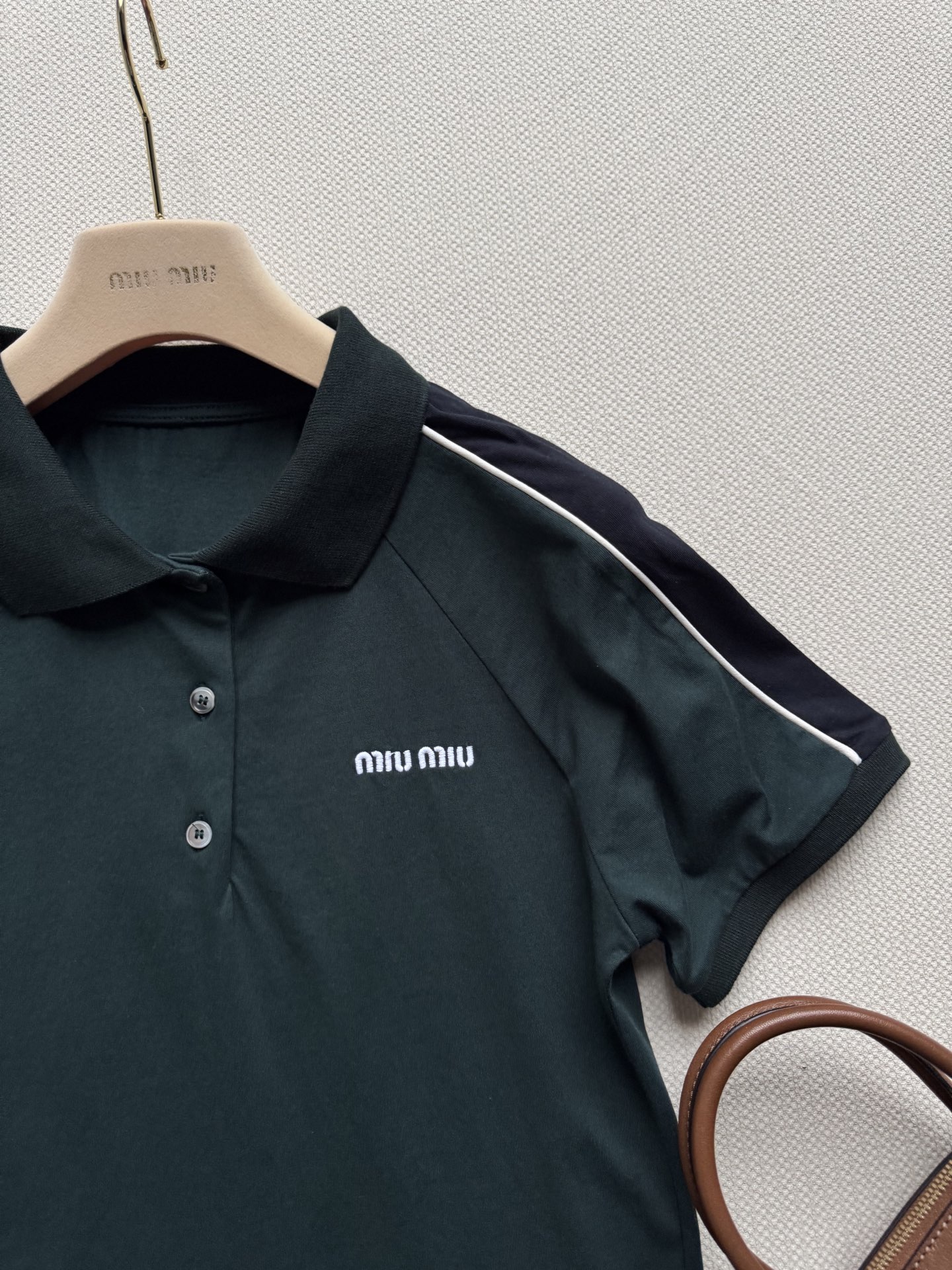 這款衣服是AAAAA 1:1 質量(非常棒). 使用了和原版一模一樣的材料. 商標部分也保持了和繆繆/Miu Miu一樣. 圖片拍攝是實物衣服拍攝, 您所收到的實物保證和我們圖片一模一樣.