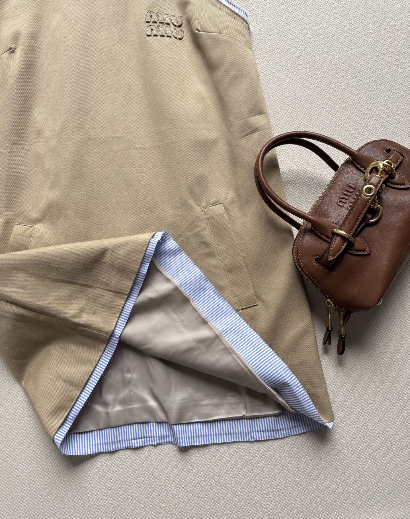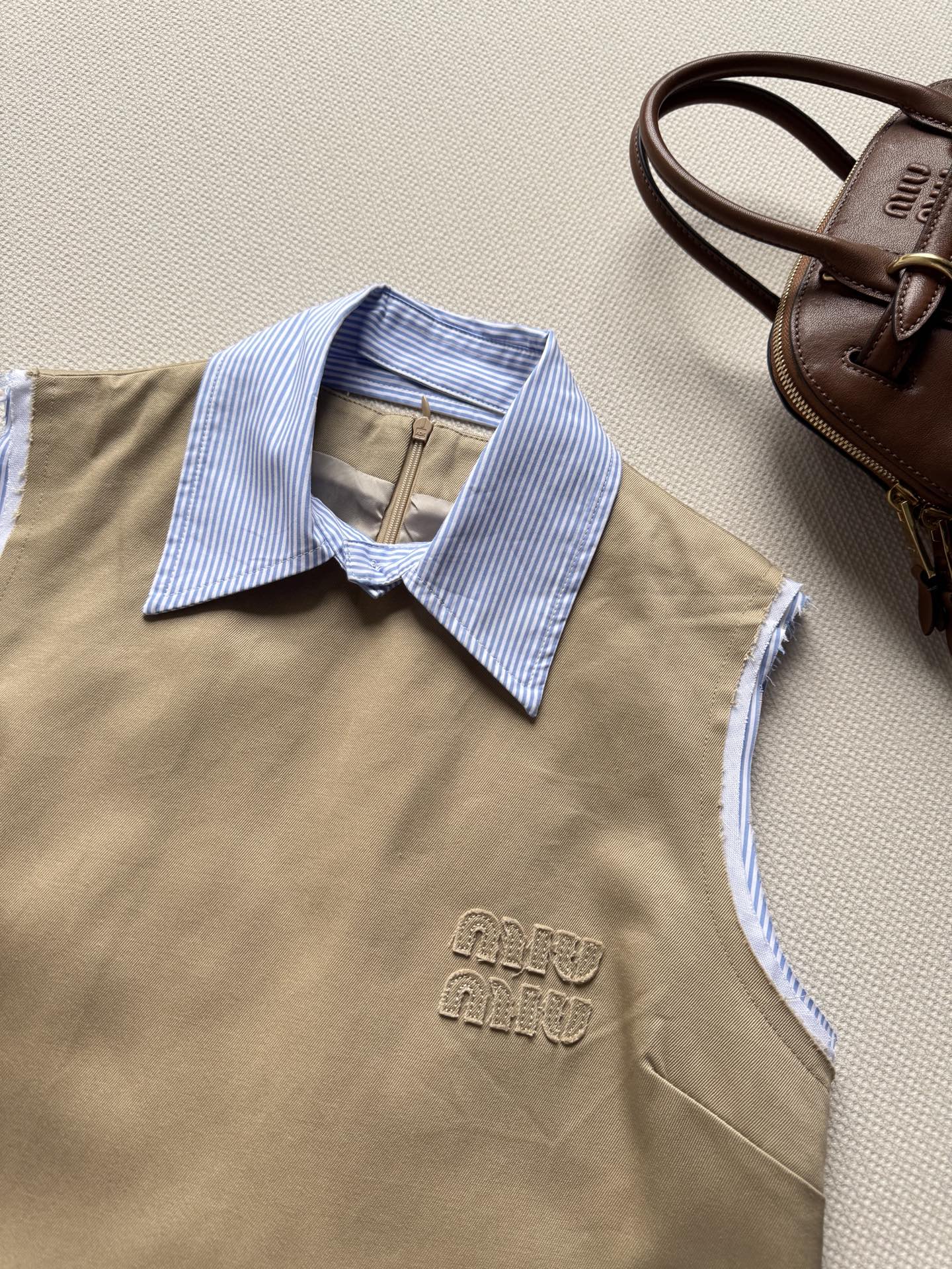 這款衣服是AAAAA 1:1 質量(非常棒). 使用了和原版一模一樣的材料. 商標部分也保持了和繆繆/Miu Miu一樣. 圖片拍攝是實物衣服拍攝, 您所收到的實物保證和我們圖片一模一樣.