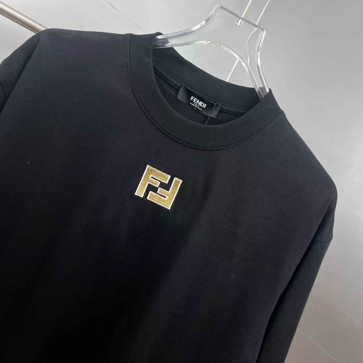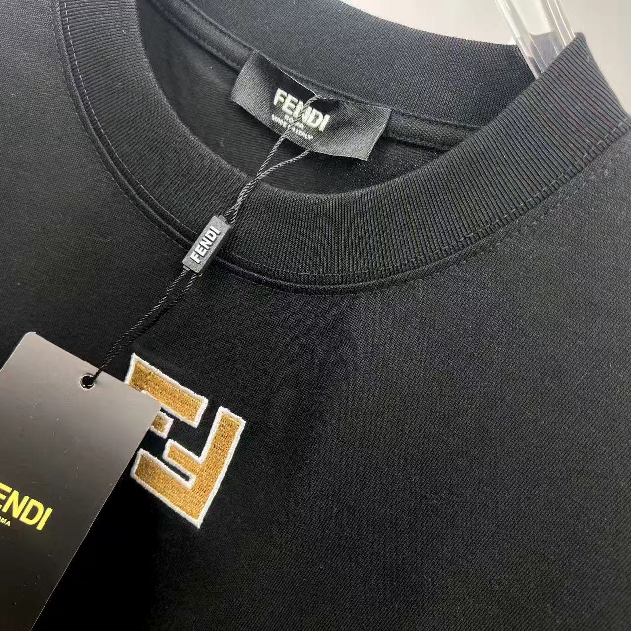 這款衣服是AAAAA 1:1 質量(非常棒). 使用了和原版一模一樣的材料. 商標部分也保持了和芬迪/Fendi一樣. 圖片拍攝是實物衣服拍攝, 您所收到的實物保證和我們圖片一模一樣.