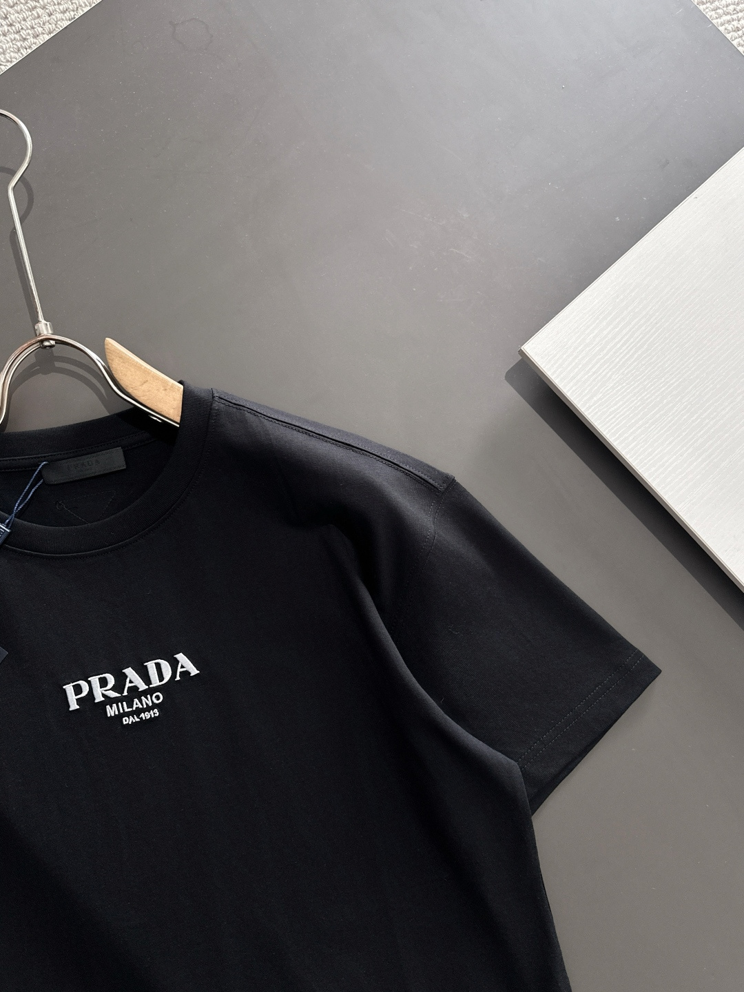 這款衣服是AAAAA 1:1 質量(非常棒). 使用了和原版一模一樣的材料. 商標部分也保持了和普拉達/Prada一樣. 圖片拍攝是實物衣服拍攝, 您所收到的實物保證和我們圖片一模一樣.