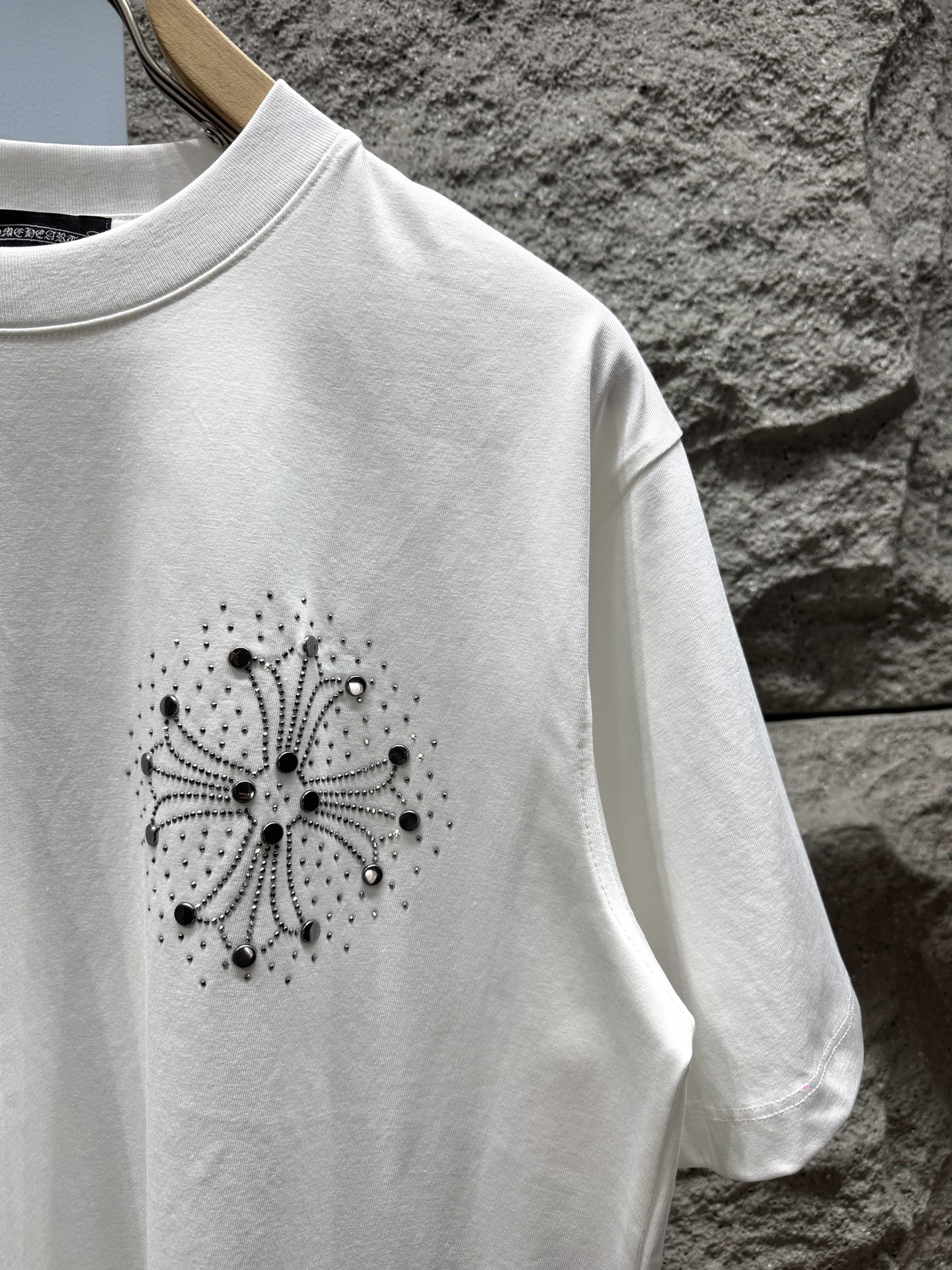 這款衣服是AAAAA 1:1 質量(非常棒). 使用了和原版一模一樣的材料. 商標部分也保持了和鉻心/Chrome Hearts一樣. 圖片拍攝是實物衣服拍攝, 您所收到的實物保證和我們圖片一模一樣.
