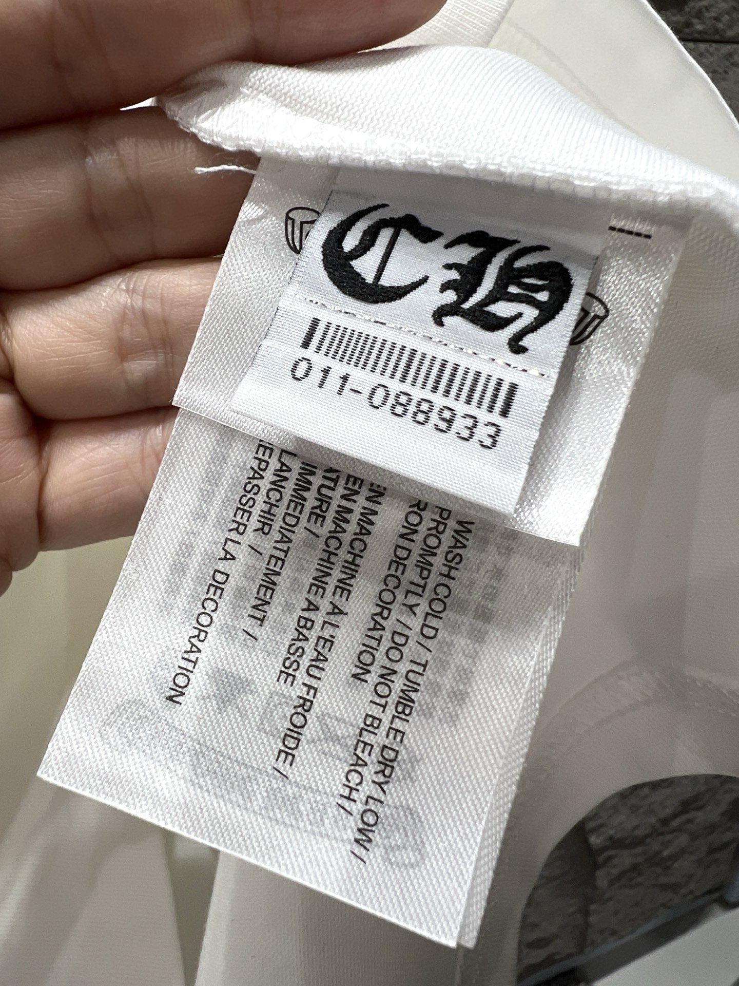 這款衣服是AAAAA 1:1 質量(非常棒). 使用了和原版一模一樣的材料. 商標部分也保持了和鉻心/Chrome Hearts一樣. 圖片拍攝是實物衣服拍攝, 您所收到的實物保證和我們圖片一模一樣.