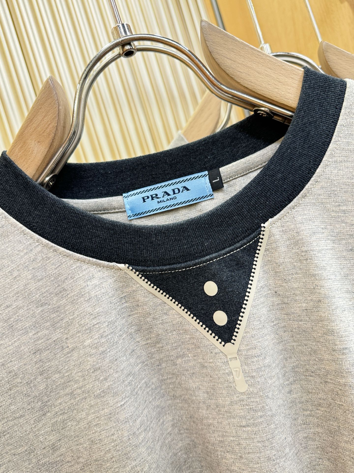 這款衣服是AAAAA 1:1 質量(非常棒). 使用了和原版一模一樣的材料. 商標部分也保持了和普拉達/Prada一樣. 圖片拍攝是實物衣服拍攝, 您所收到的實物保證和我們圖片一模一樣.