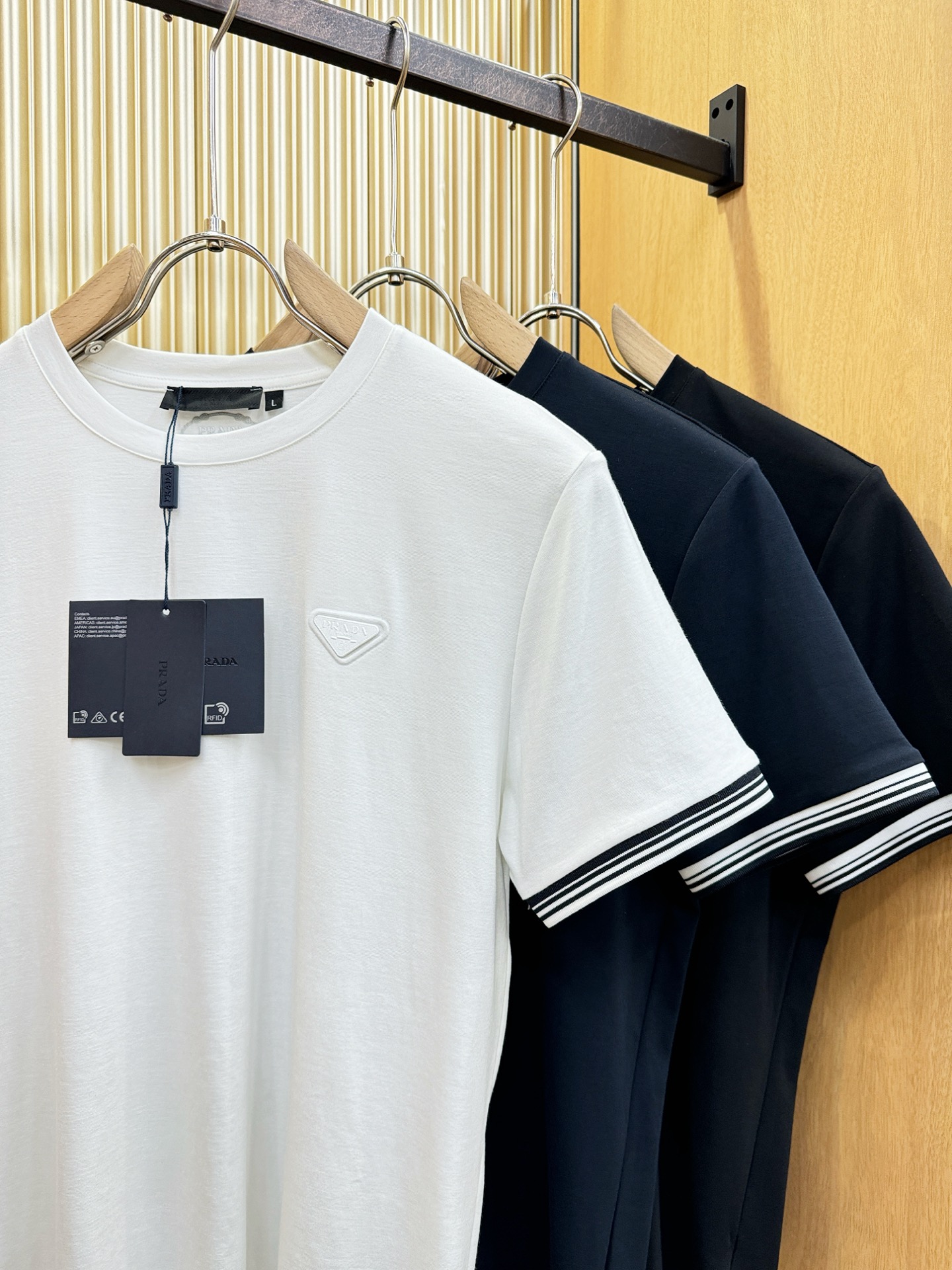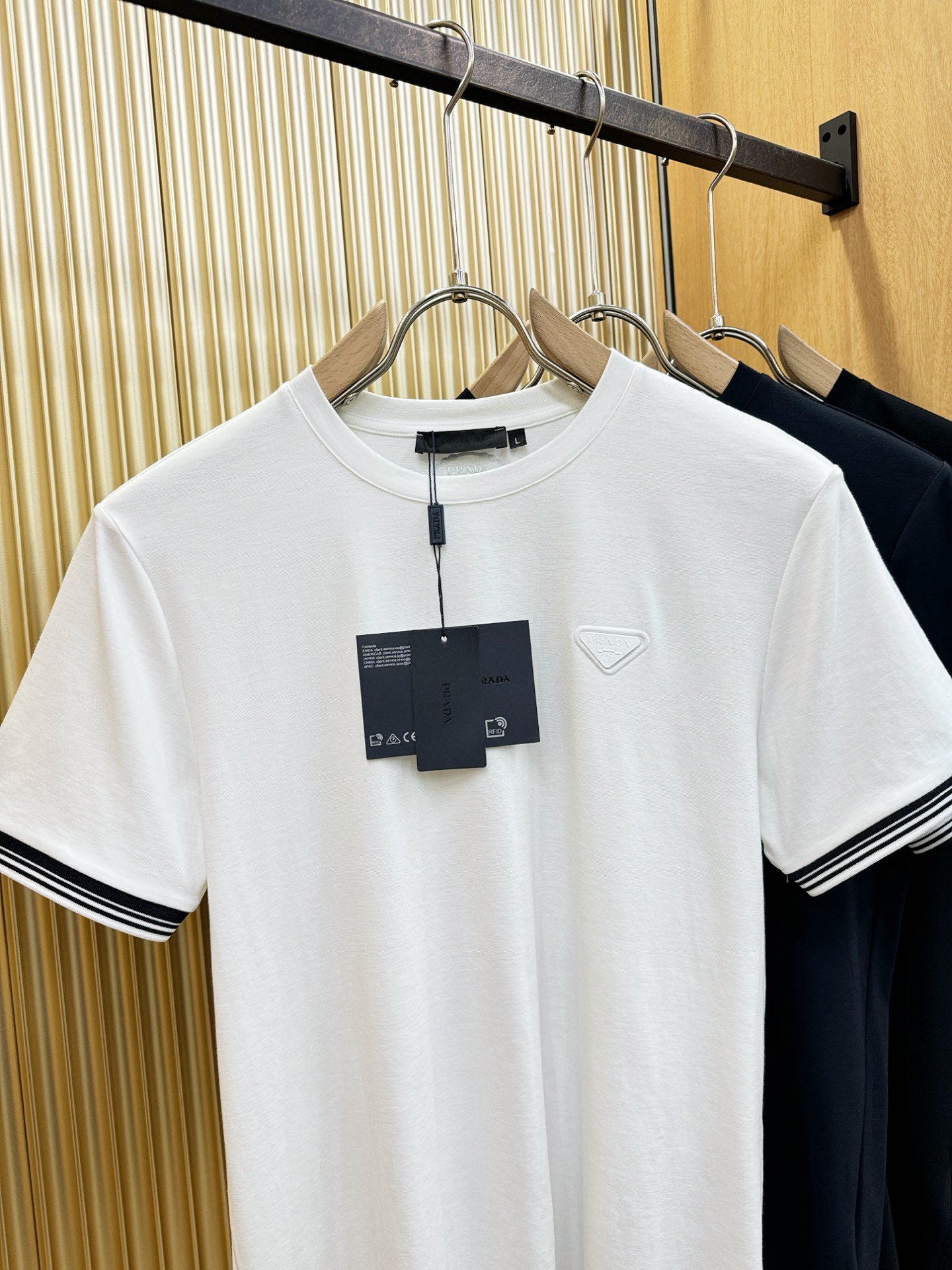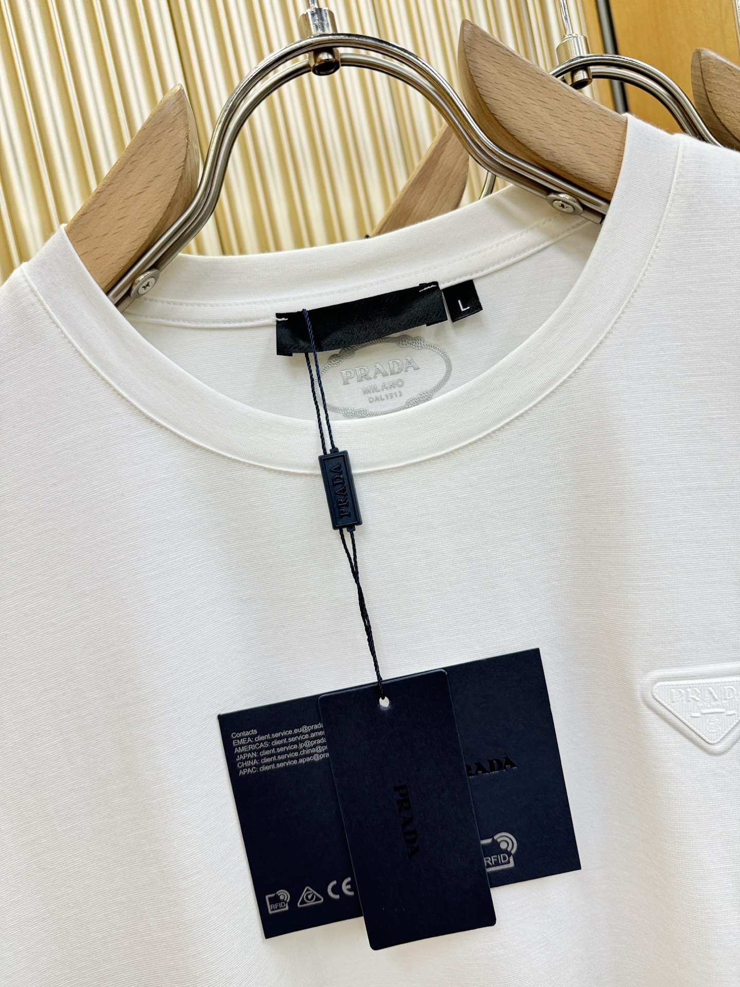 這款衣服是AAAAA 1:1 質量(非常棒). 使用了和原版一模一樣的材料. 商標部分也保持了和普拉達/Prada一樣. 圖片拍攝是實物衣服拍攝, 您所收到的實物保證和我們圖片一模一樣.