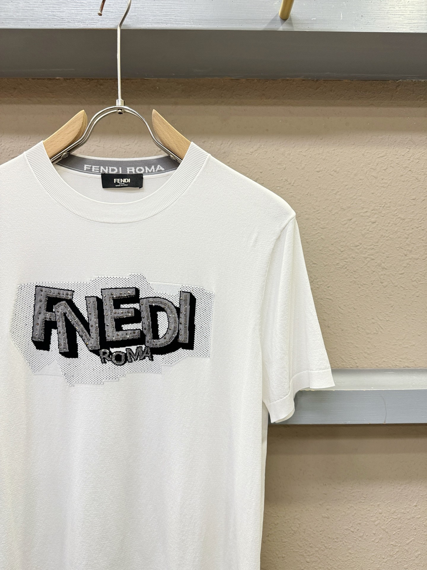 這款衣服是AAAAA 1:1 質量(非常棒). 使用了和原版一模一樣的材料. 商標部分也保持了和芬迪/Fendi一樣. 圖片拍攝是實物衣服拍攝, 您所收到的實物保證和我們圖片一模一樣.