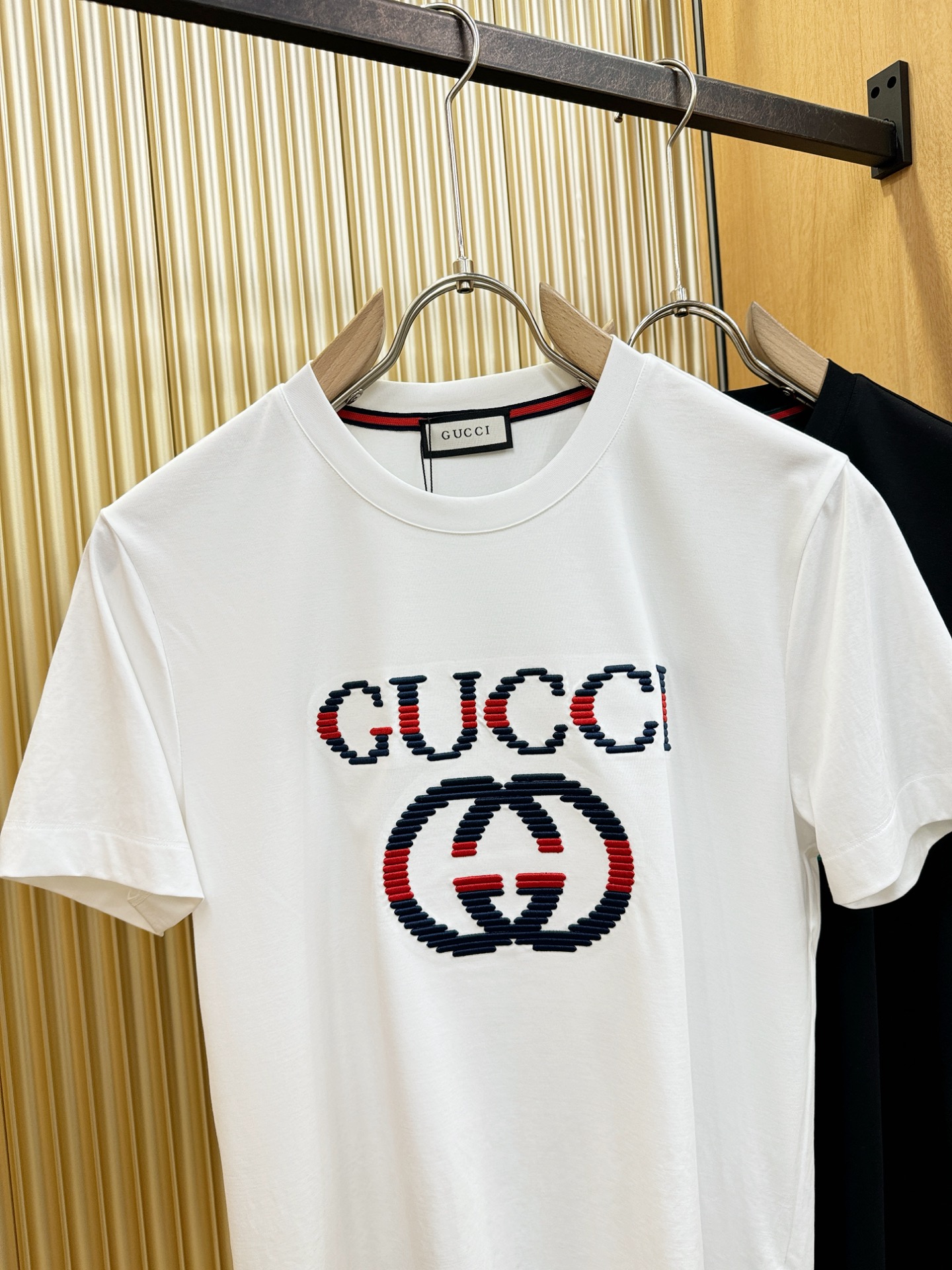 這款衣服是AAAAA 1:1 質量(非常棒). 使用了和原版一模一樣的材料. 商標部分也保持了和古奇/Gucci一樣. 圖片拍攝是實物衣服拍攝, 您所收到的實物保證和我們圖片一模一樣.