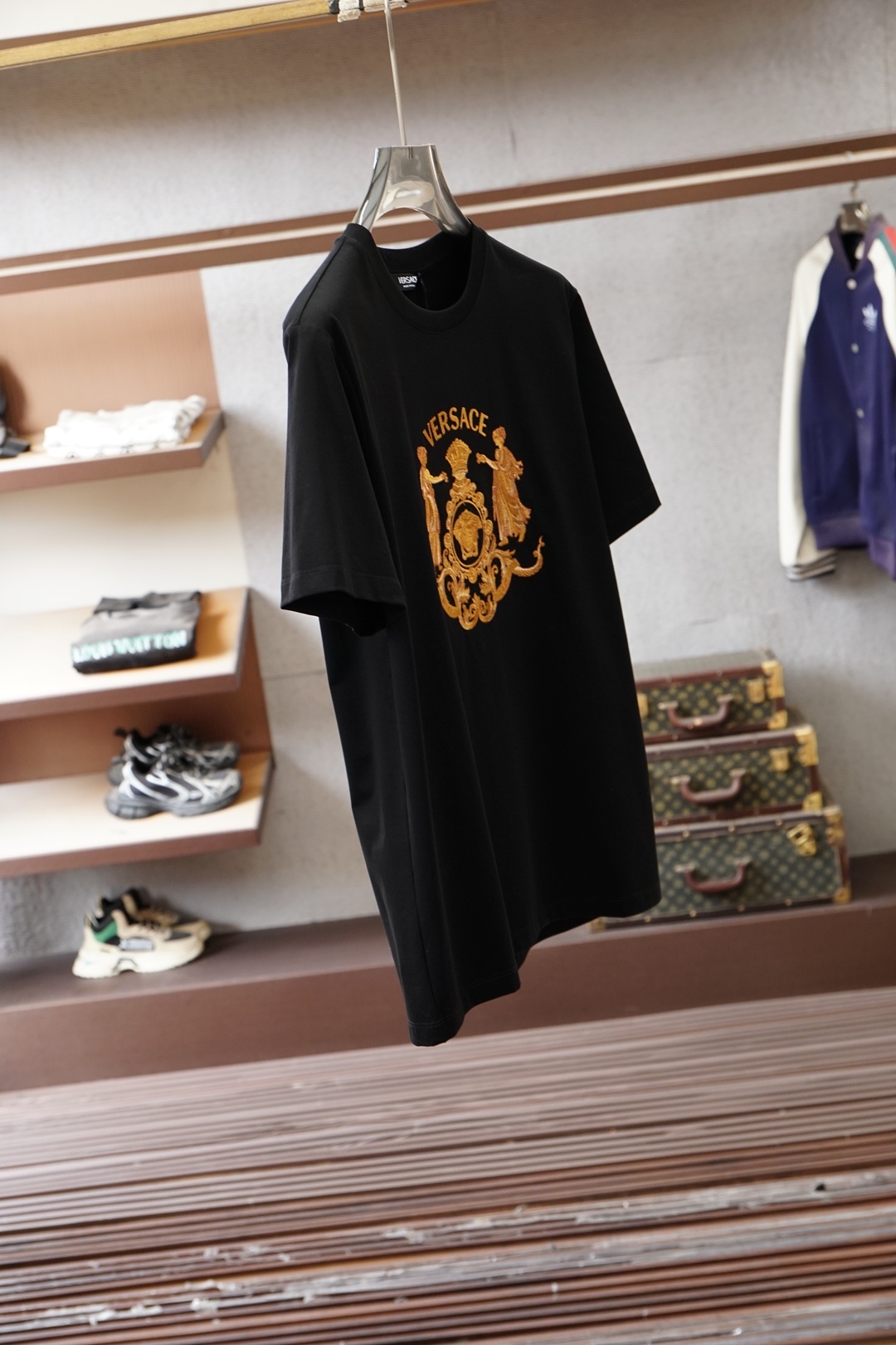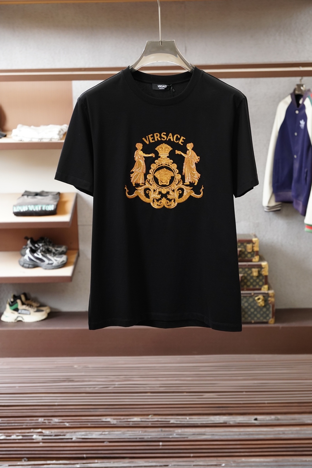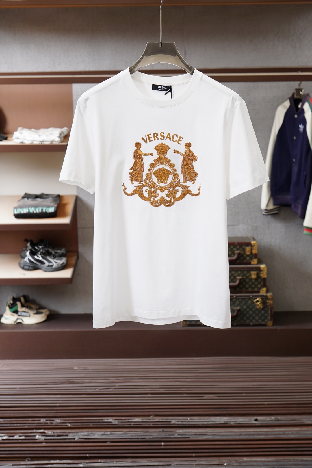 這款衣服是AAAAA 1:1 質量(非常棒). 使用了和原版一模一樣的材料. 商標部分也保持了和范思哲/Versace一樣. 圖片拍攝是實物衣服拍攝, 您所收到的實物保證和我們圖片一模一樣.