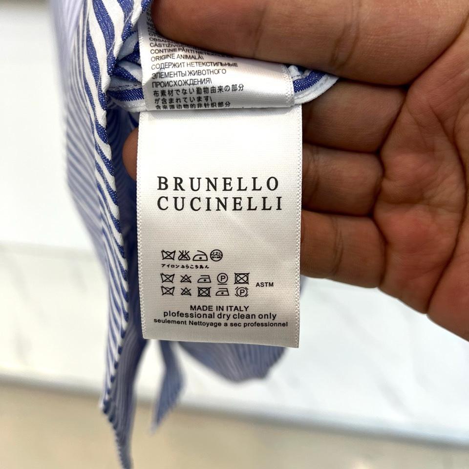 這款衣服是AAAAA 1:1 質量(非常棒). 使用了和原版一模一樣的材料. 商標部分也保持了和Brunello Cucinelli一樣. 圖片拍攝是實物衣服拍攝, 您所收到的實物保證和我們圖片一模一樣.