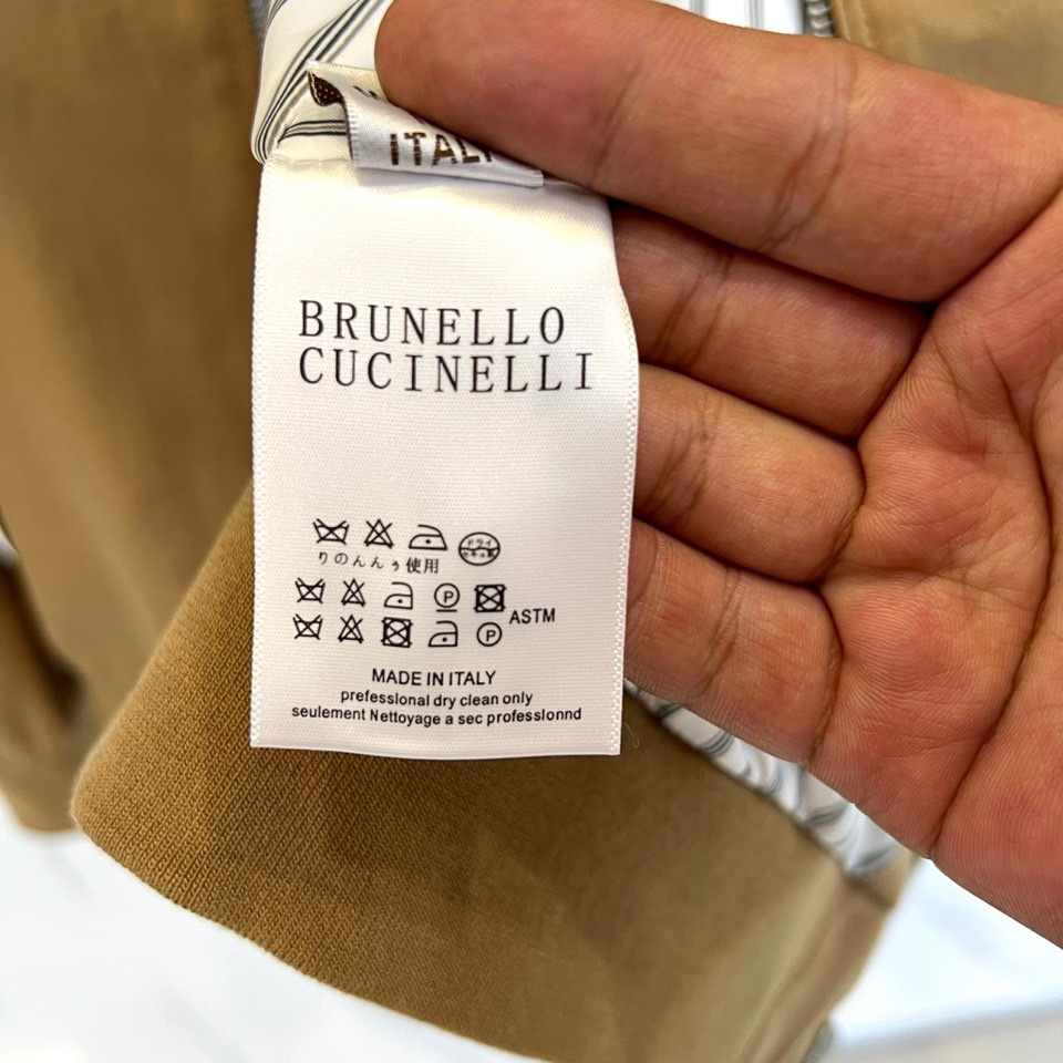 這款衣服是AAAAA 1:1 質量(非常棒). 使用了和原版一模一樣的材料. 商標部分也保持了和Brunello Cucinelli一樣. 圖片拍攝是實物衣服拍攝, 您所收到的實物保證和我們圖片一模一樣.