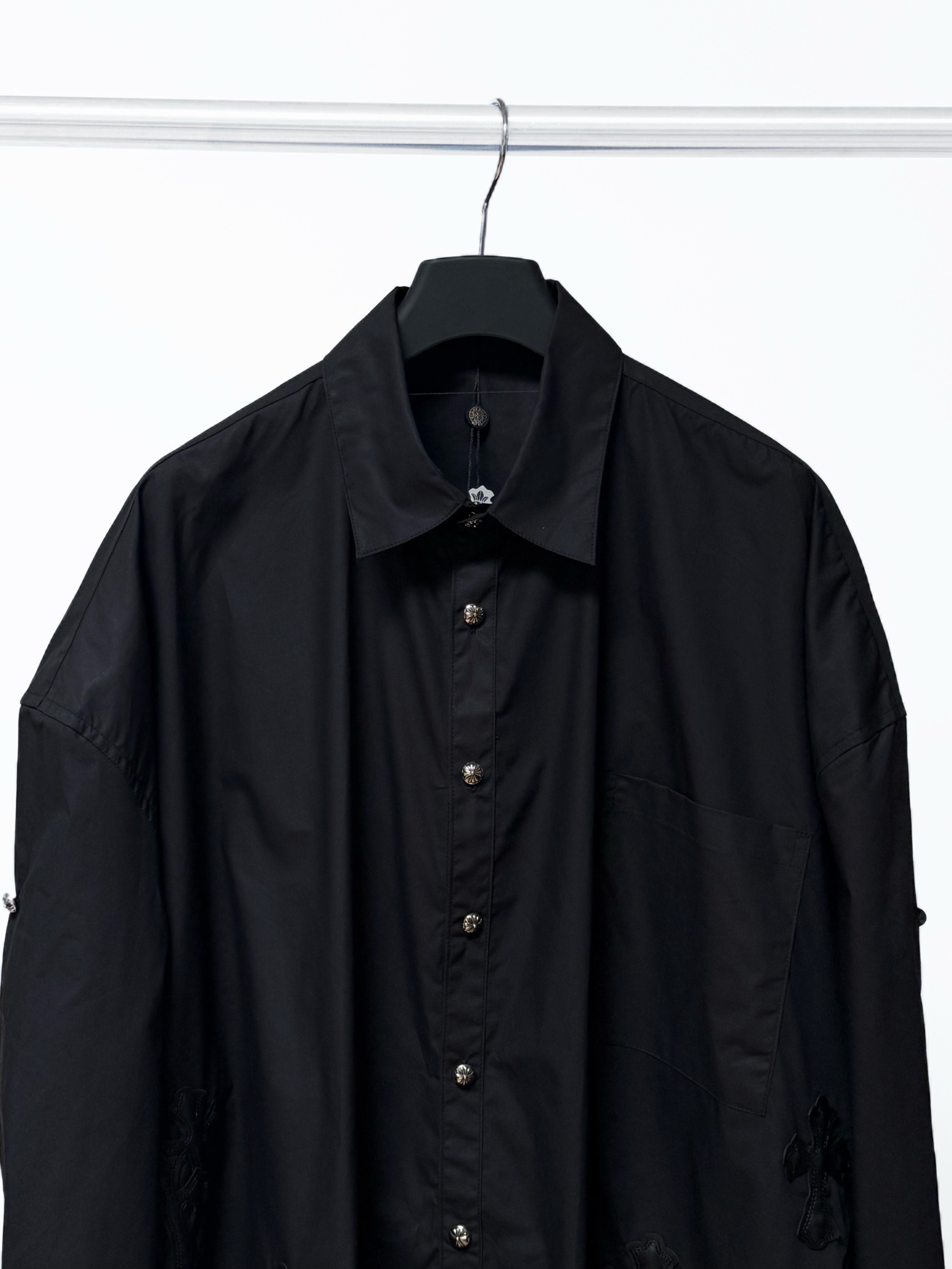 這款衣服是AAAAA 1:1 質量(非常棒). 使用了和原版一模一樣的材料. 商標部分也保持了和鉻心/Chrome Hearts一樣. 圖片拍攝是實物衣服拍攝, 您所收到的實物保證和我們圖片一模一樣.