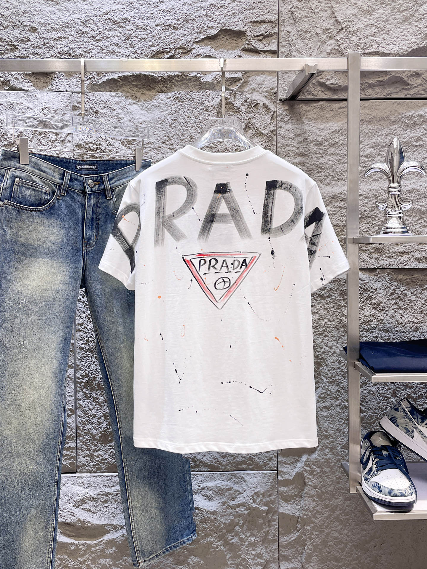 這款衣服是AAAAA 1:1 質量(非常棒). 使用了和原版一模一樣的材料. 商標部分也保持了和普拉達/Prada一樣. 圖片拍攝是實物衣服拍攝, 您所收到的實物保證和我們圖片一模一樣.