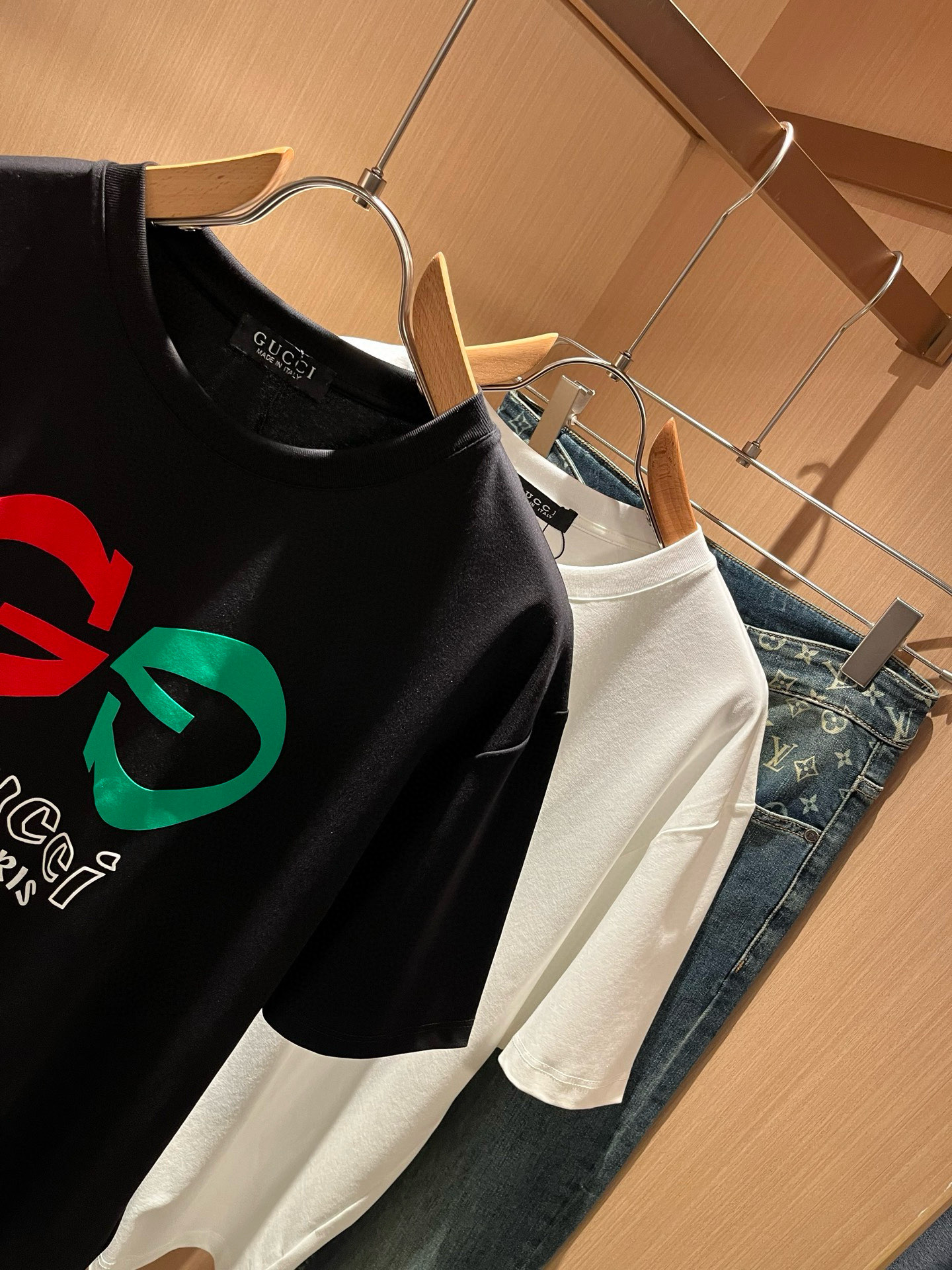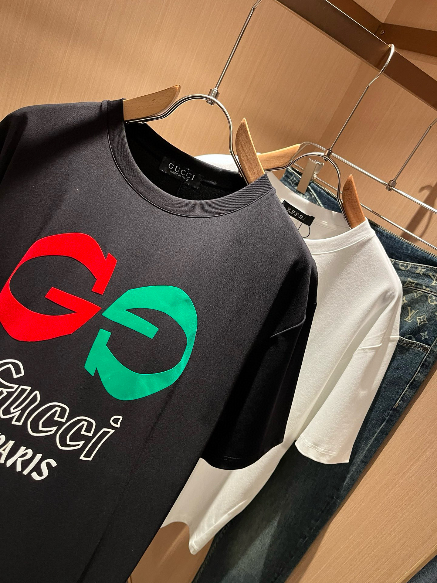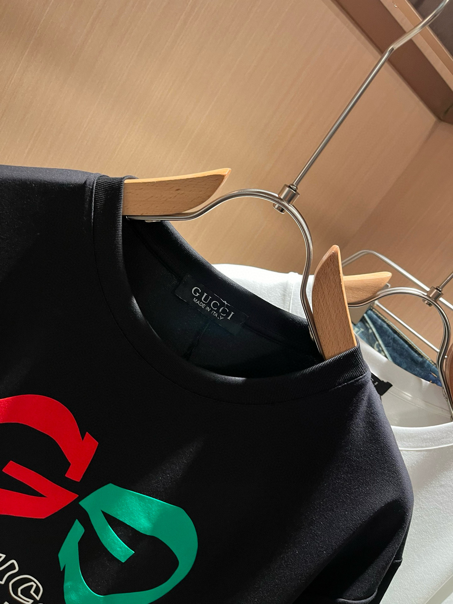 這款衣服是AAAAA 1:1 質量(非常棒). 使用了和原版一模一樣的材料. 商標部分也保持了和古奇/Gucci一樣. 圖片拍攝是實物衣服拍攝, 您所收到的實物保證和我們圖片一模一樣.