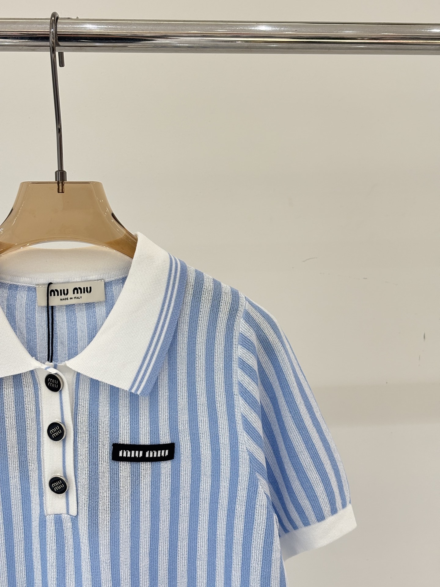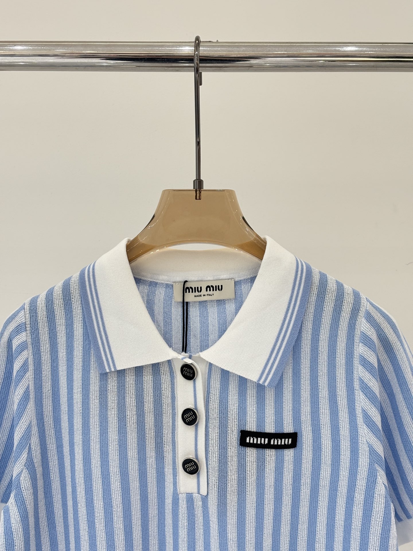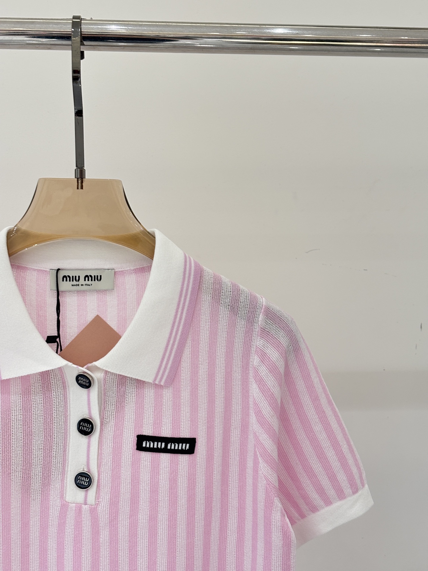 這款衣服是AAAAA 1:1 質量(非常棒). 使用了和原版一模一樣的材料. 商標部分也保持了和繆繆/Miu Miu一樣. 圖片拍攝是實物衣服拍攝, 您所收到的實物保證和我們圖片一模一樣.