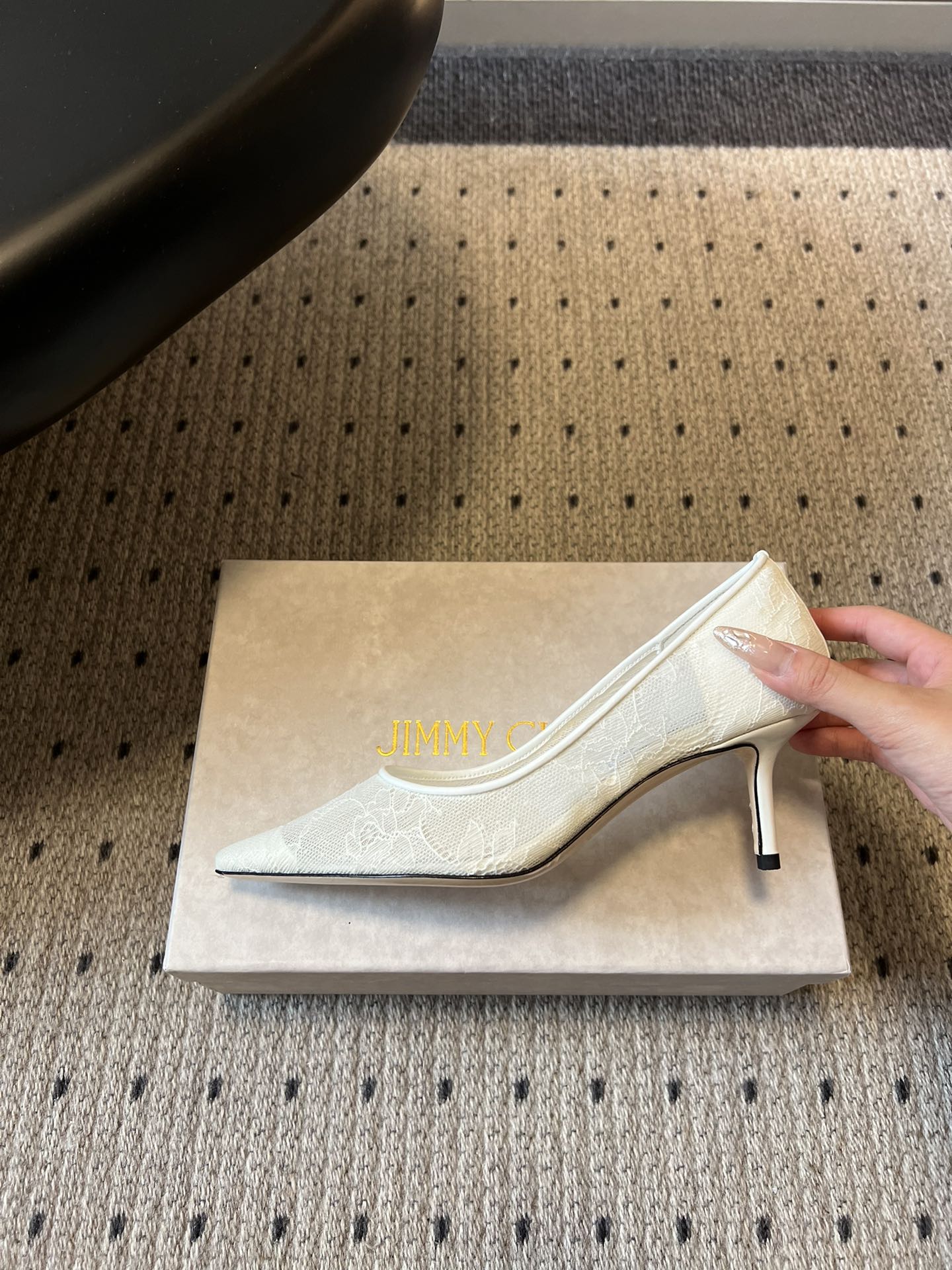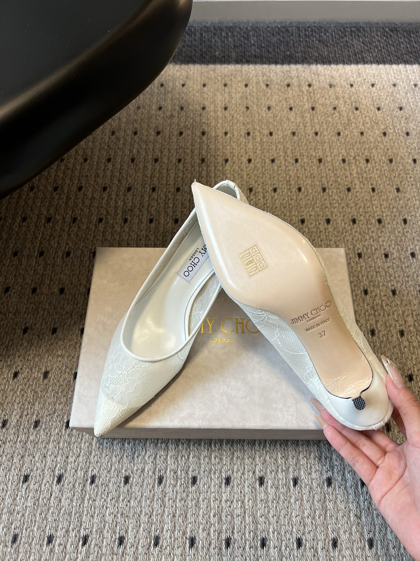 這款鞋子是AAAAA 1:1 質量(非常棒). 使用了和原版一模一樣的材料. 商標部分也保持了和吉米喬/JIMMY CHOO一樣. 圖片拍攝是實物鞋子拍攝, 您所收到的實物保證和我們圖片一模一樣.