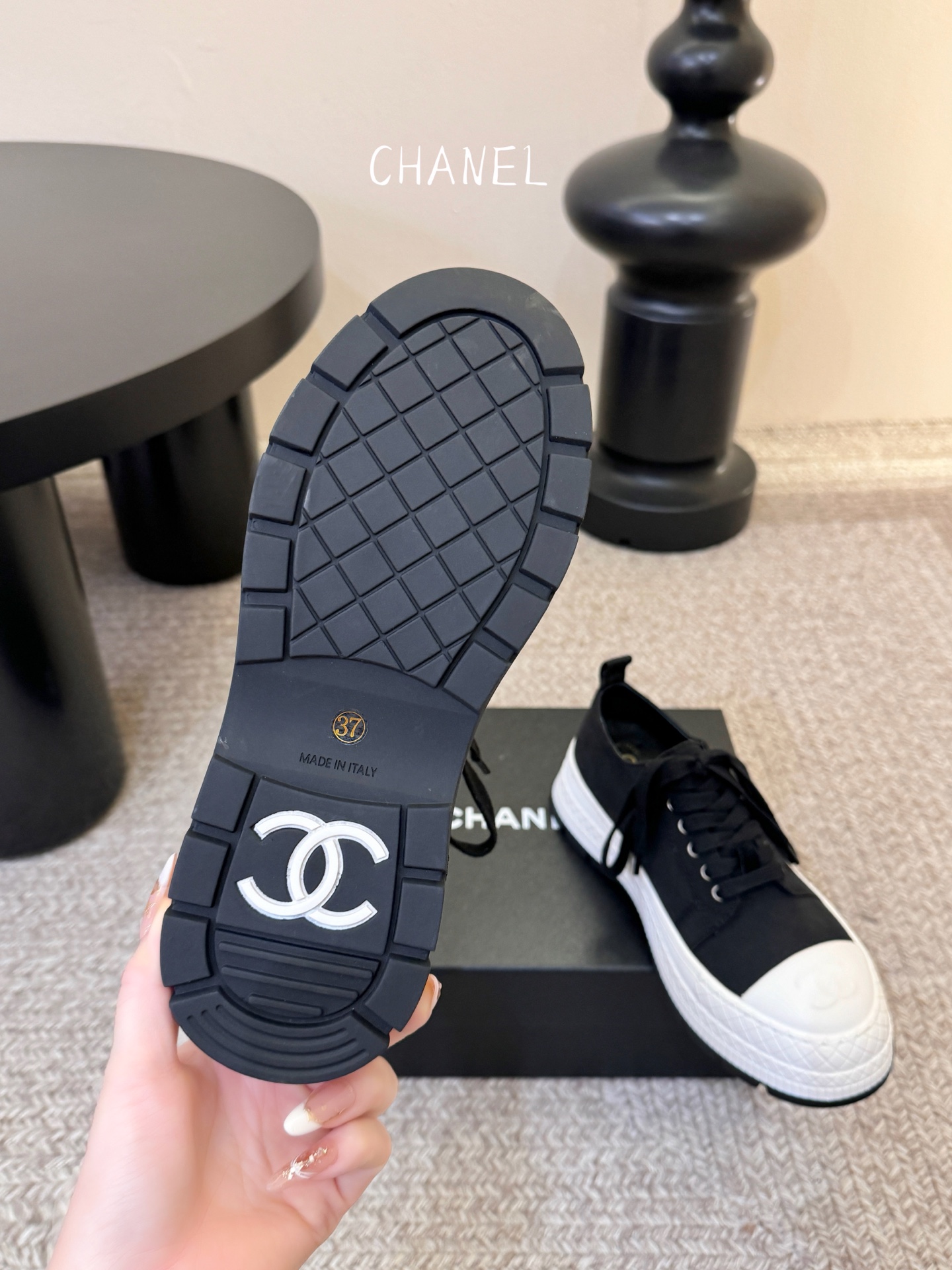 這款鞋子是AAAAA 1:1 質量(非常棒). 使用了和原版一模一樣的材料. 商標部分也保持了和香奈兒/Chanel一樣. 圖片拍攝是實物鞋子拍攝, 您所收到的實物保證和我們圖片一模一樣.