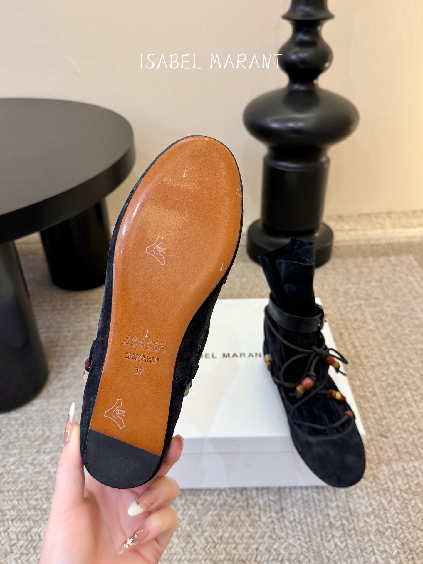 這款鞋子是AAAAA 1:1 質量(非常棒). 使用了和原版一模一樣的材料. 商標部分也保持了和Isabel Marant一樣. 圖片拍攝是實物鞋子拍攝, 您所收到的實物保證和我們圖片一模一樣.
