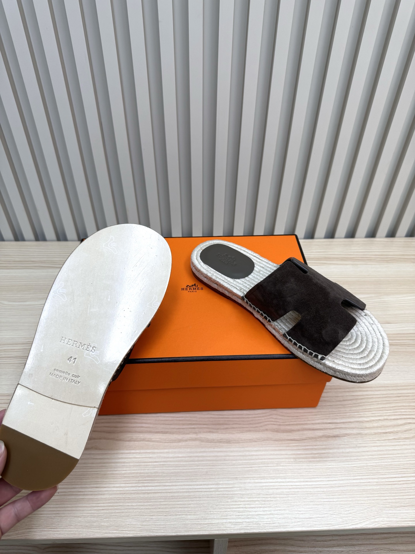 這款鞋子是AAAAA 1:1 質量(非常棒). 使用了和原版一模一樣的材料. 商標部分也保持了和愛馬仕/Hermes一樣. 圖片拍攝是實物鞋子拍攝, 您所收到的實物保證和我們圖片一模一樣.