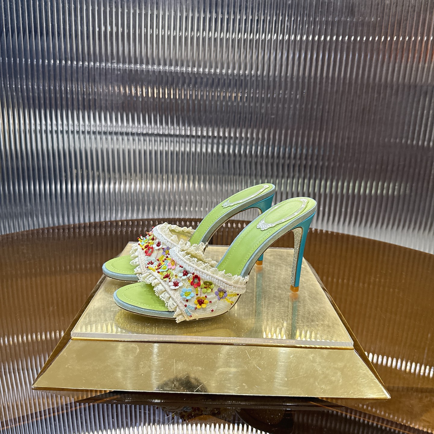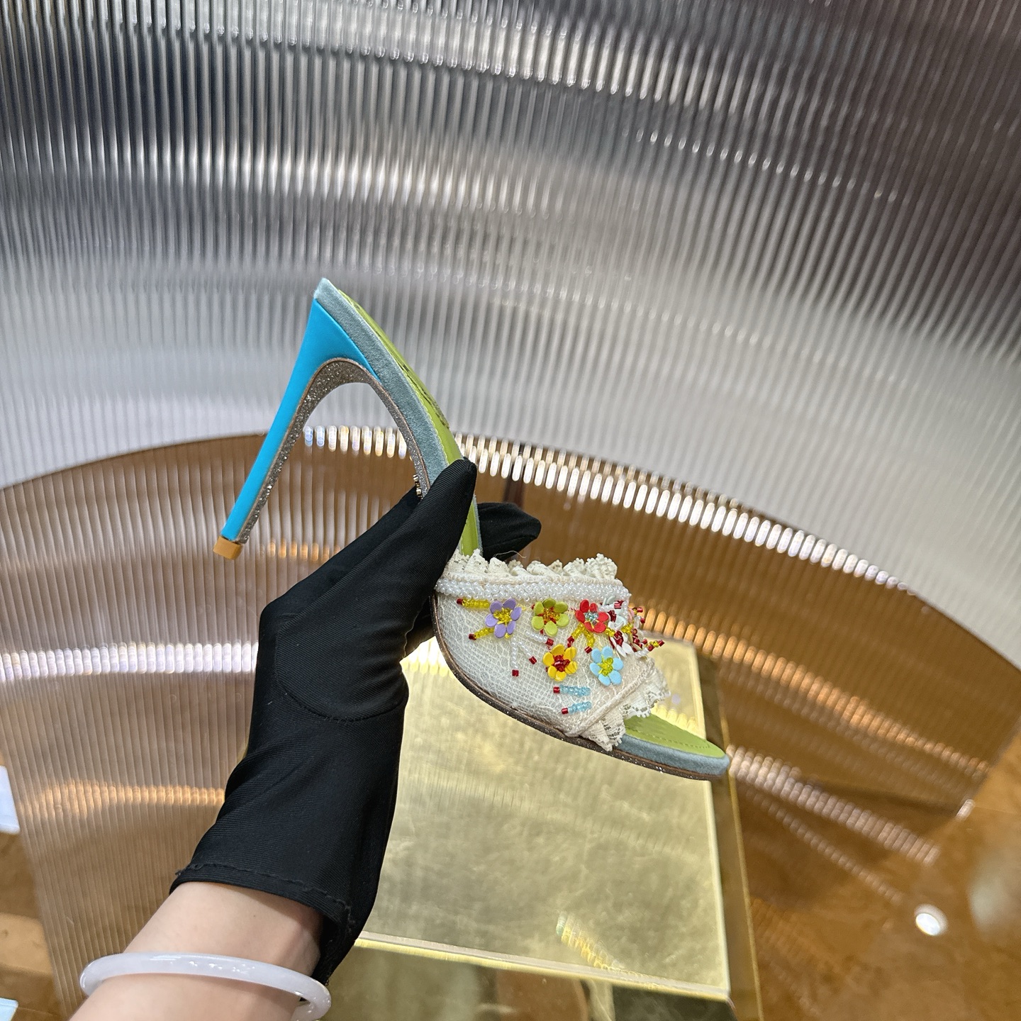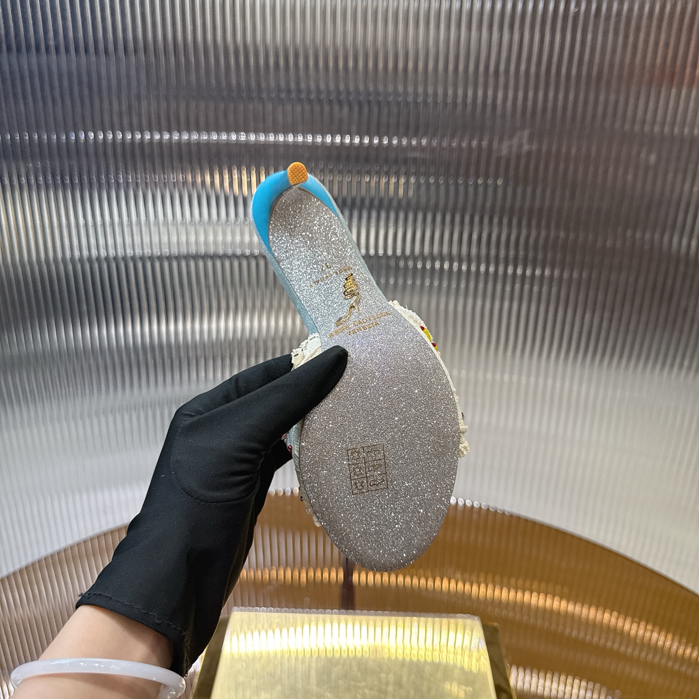 這款鞋子是AAAAA 1:1 質量(非常棒). 使用了和原版一模一樣的材料. 商標部分也保持了和Rene Caovilla一樣. 圖片拍攝是實物鞋子拍攝, 您所收到的實物保證和我們圖片一模一樣.