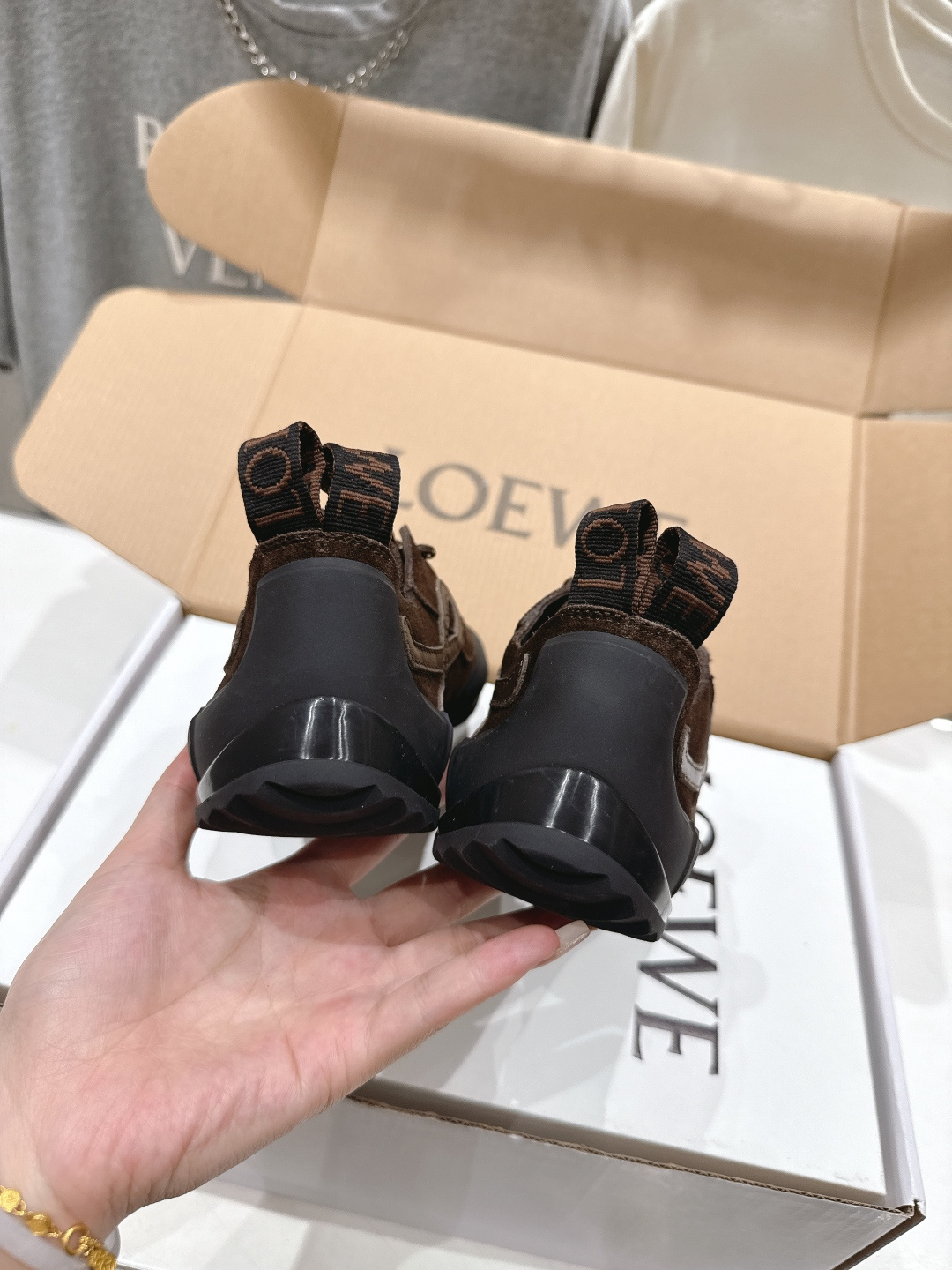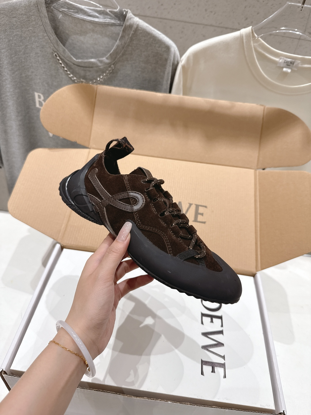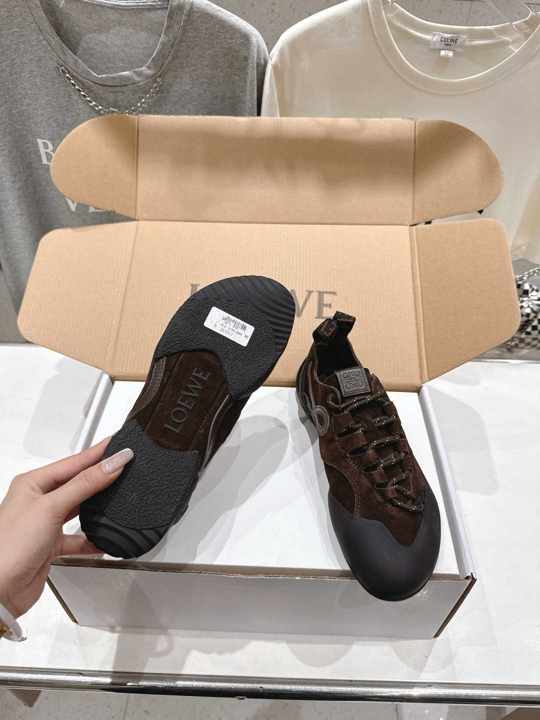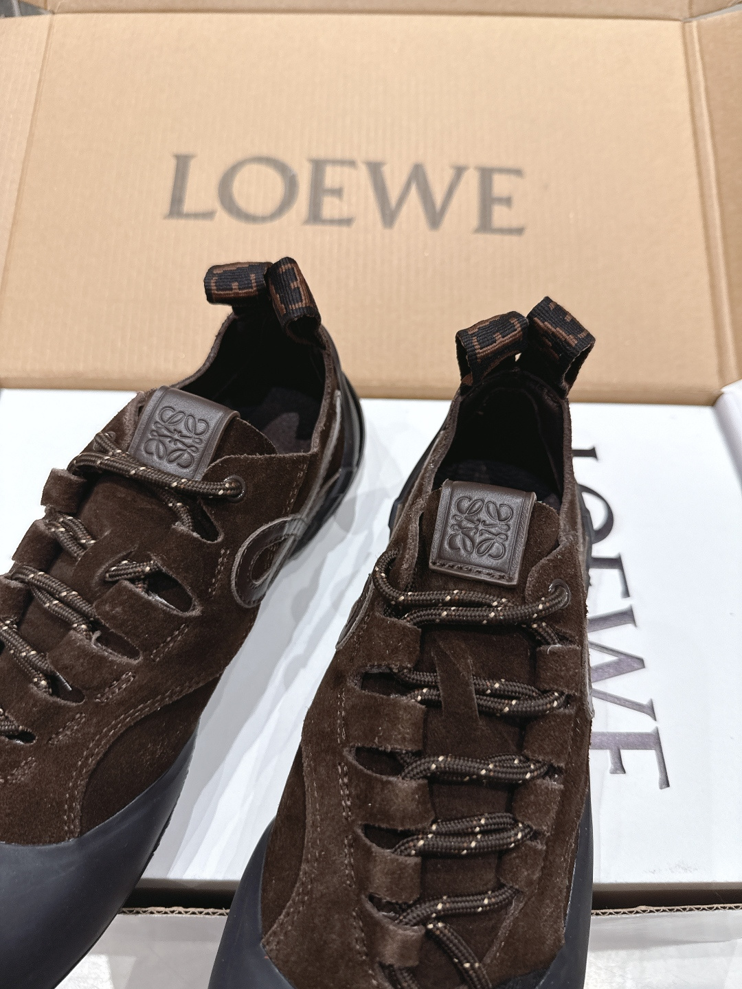 這款鞋子是AAAAA 1:1 質量(非常棒). 使用了和原版一模一樣的材料. 商標部分也保持了和Loewe一樣. 圖片拍攝是實物鞋子拍攝, 您所收到的實物保證和我們圖片一模一樣.