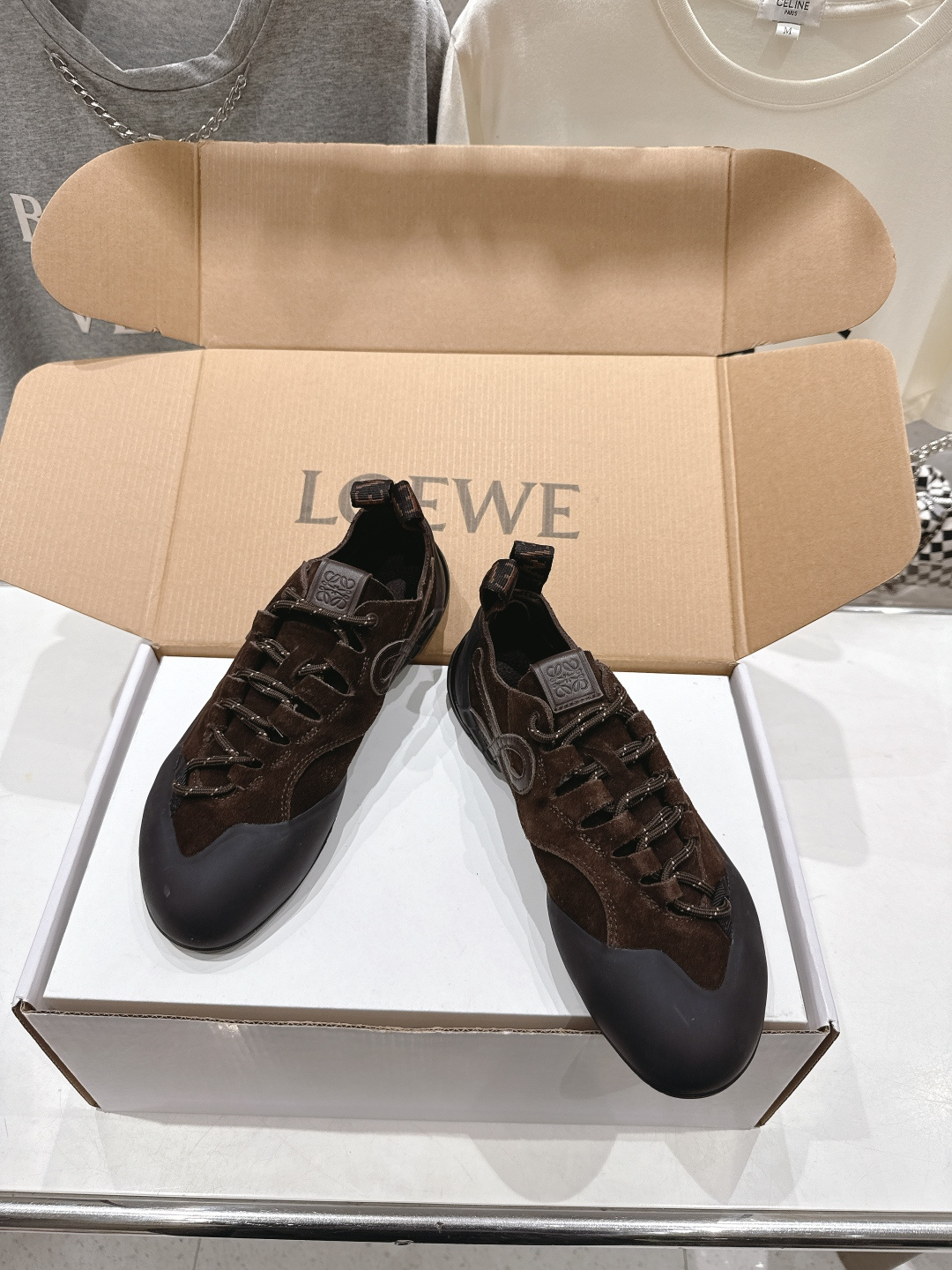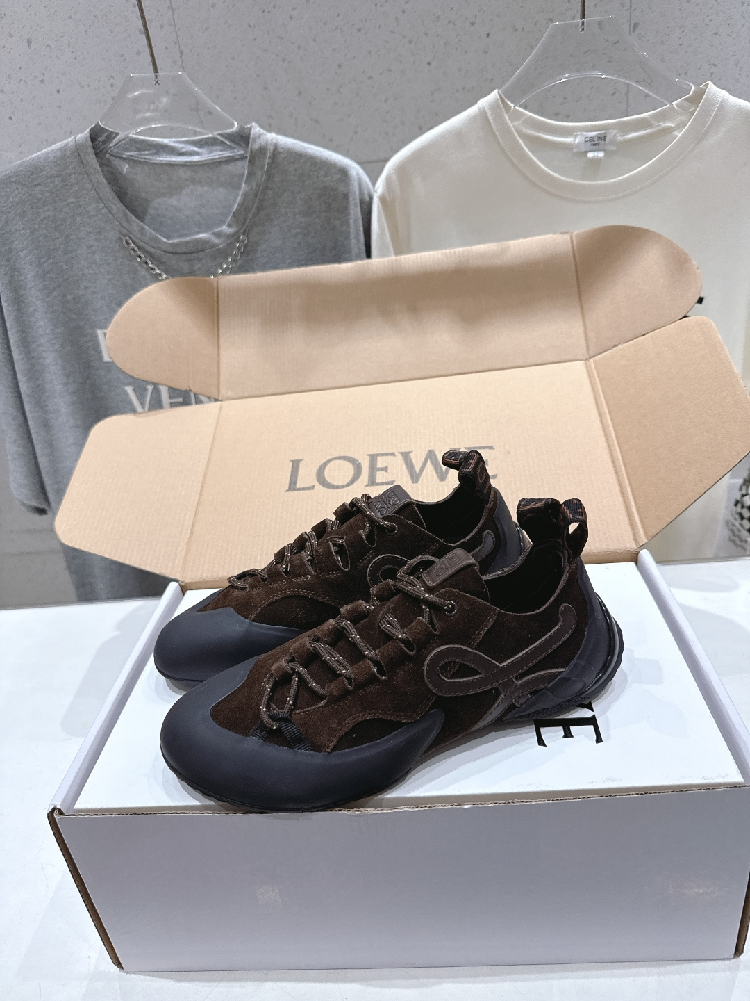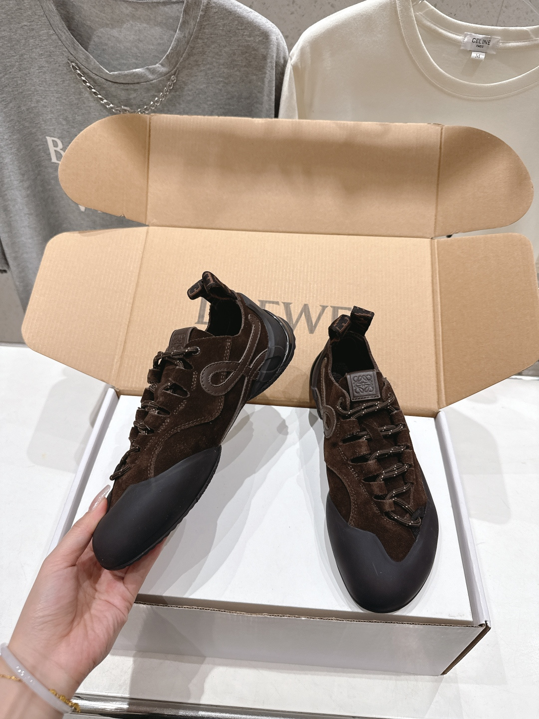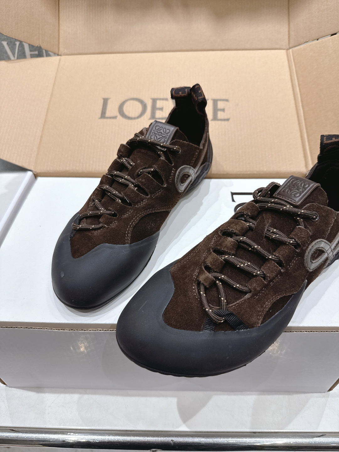 這款鞋子是AAAAA 1:1 質量(非常棒). 使用了和原版一模一樣的材料. 商標部分也保持了和Loewe一樣. 圖片拍攝是實物鞋子拍攝, 您所收到的實物保證和我們圖片一模一樣.